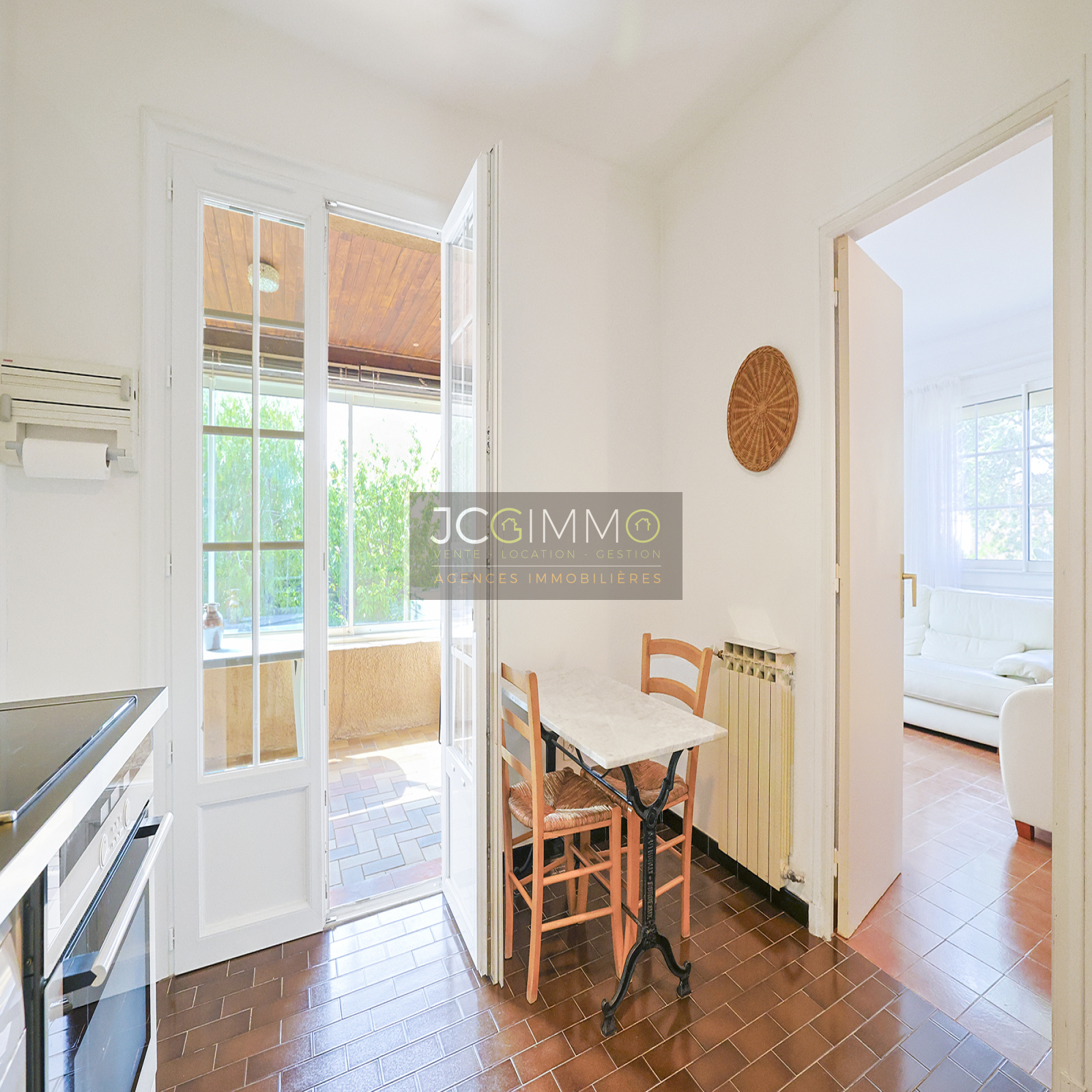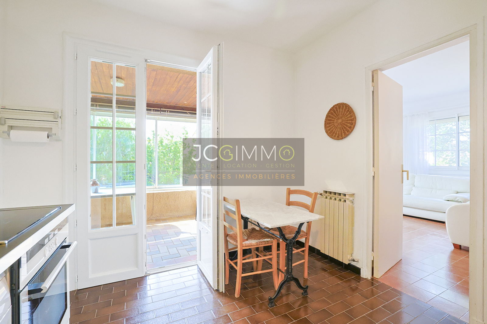 À l'intérieur : une entrée avec placard desservant un séjour lumineux avec cuisine indépendante et arrière-cuisine, l'ensemble donnant sur une véranda communicante avec le jardin.