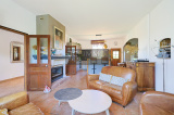 La villa se compose d'une entrée, d'un séjour/cuisine US équipée avec cheminée insert, de 3 chambres dont une suite parentale avec douche et WC, d'une salle de bains avec WC, d'un autre salon un peu plus cosy avec poêle à bois, d'un dressing et d'une véranda aménagée en espace bureau et buanderie.