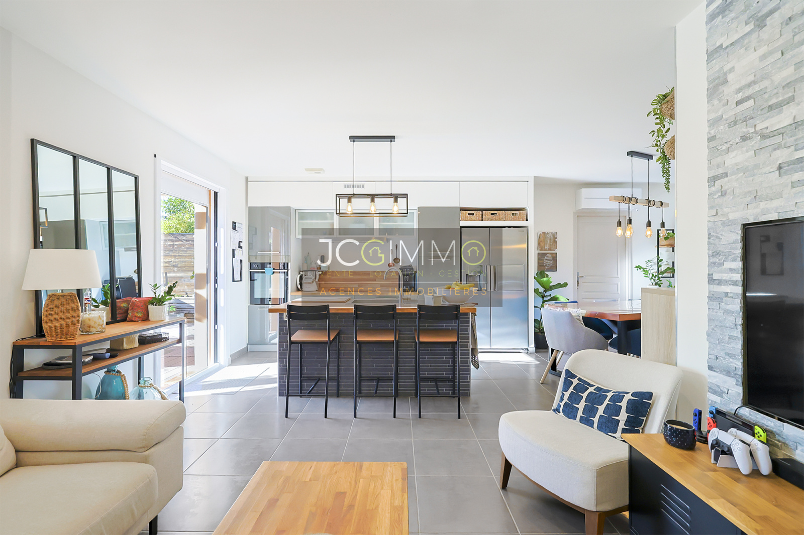 Construite en 2011, cette villa T4 en RDC + 1 étage, d'une surface de 118m² répartis entre le garage/annexe de 36m² et la maison de 82m² hab sur une parcelle de 312 m².