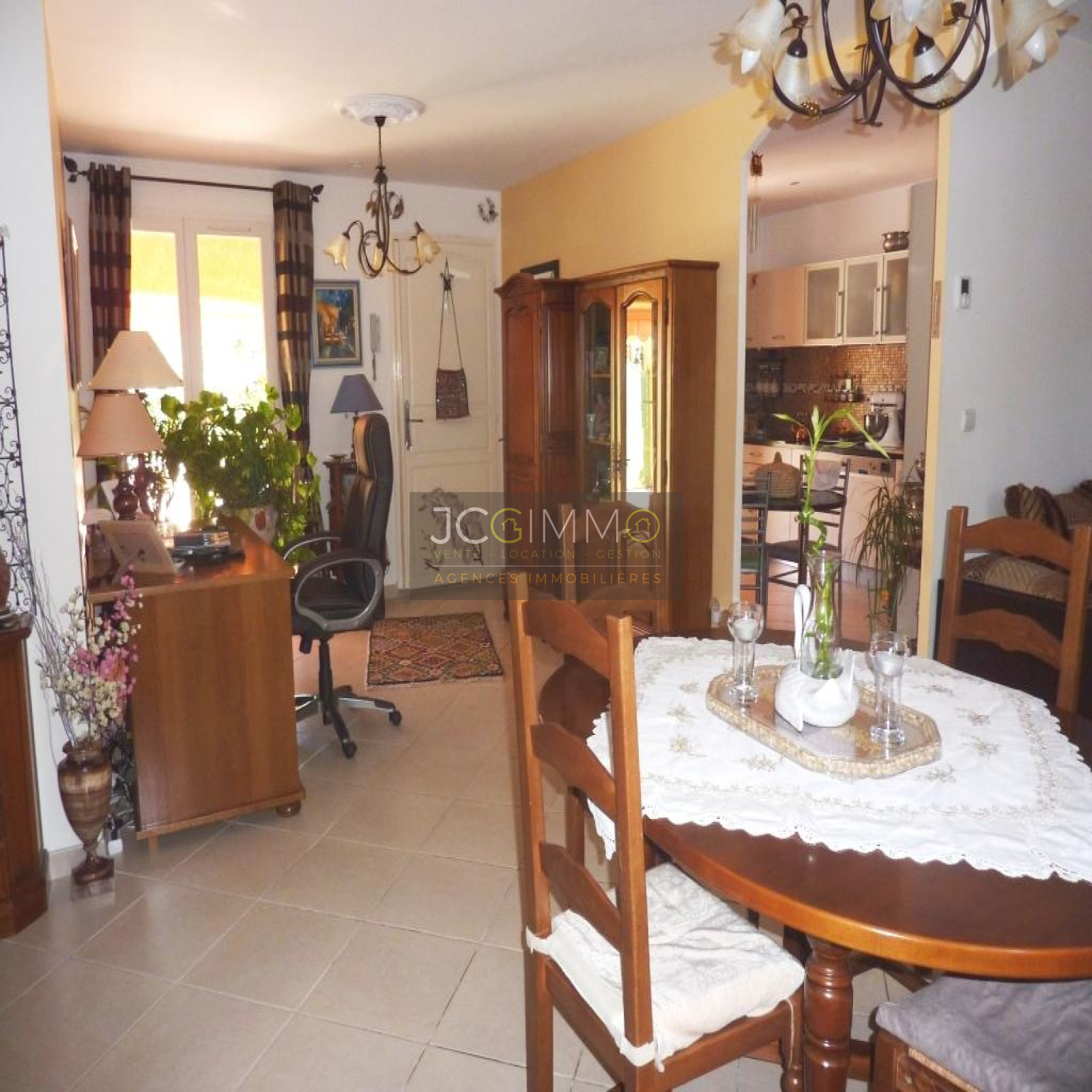 Absolument au calme, charmante villa récente de plain pied de 88m² sur un terrain clos de 533m². Elle se compose d'un hall d'entrée, séjour, salon, cuisine aménagée indépendante avec accès au garage de 20m², un dégagement, un bureau de 6m², 2 chambres dont une suite parentale, wc, salle de bain. Clim réversible (3 groupes), menuiseries PVC double vitrage, moustiquaires... Terrasse de plus de 70m². Belles prestations. Coup de coeur assuré!!
