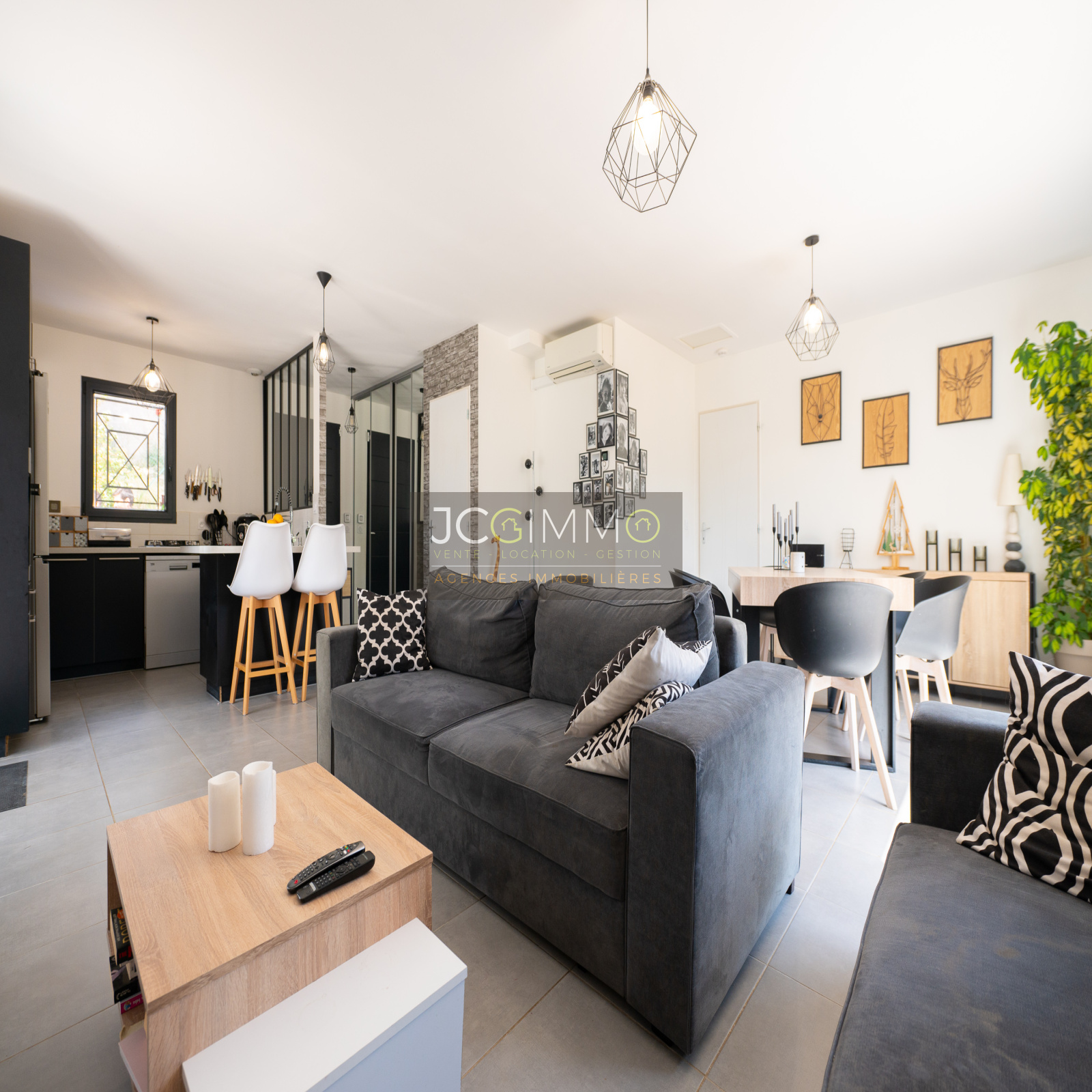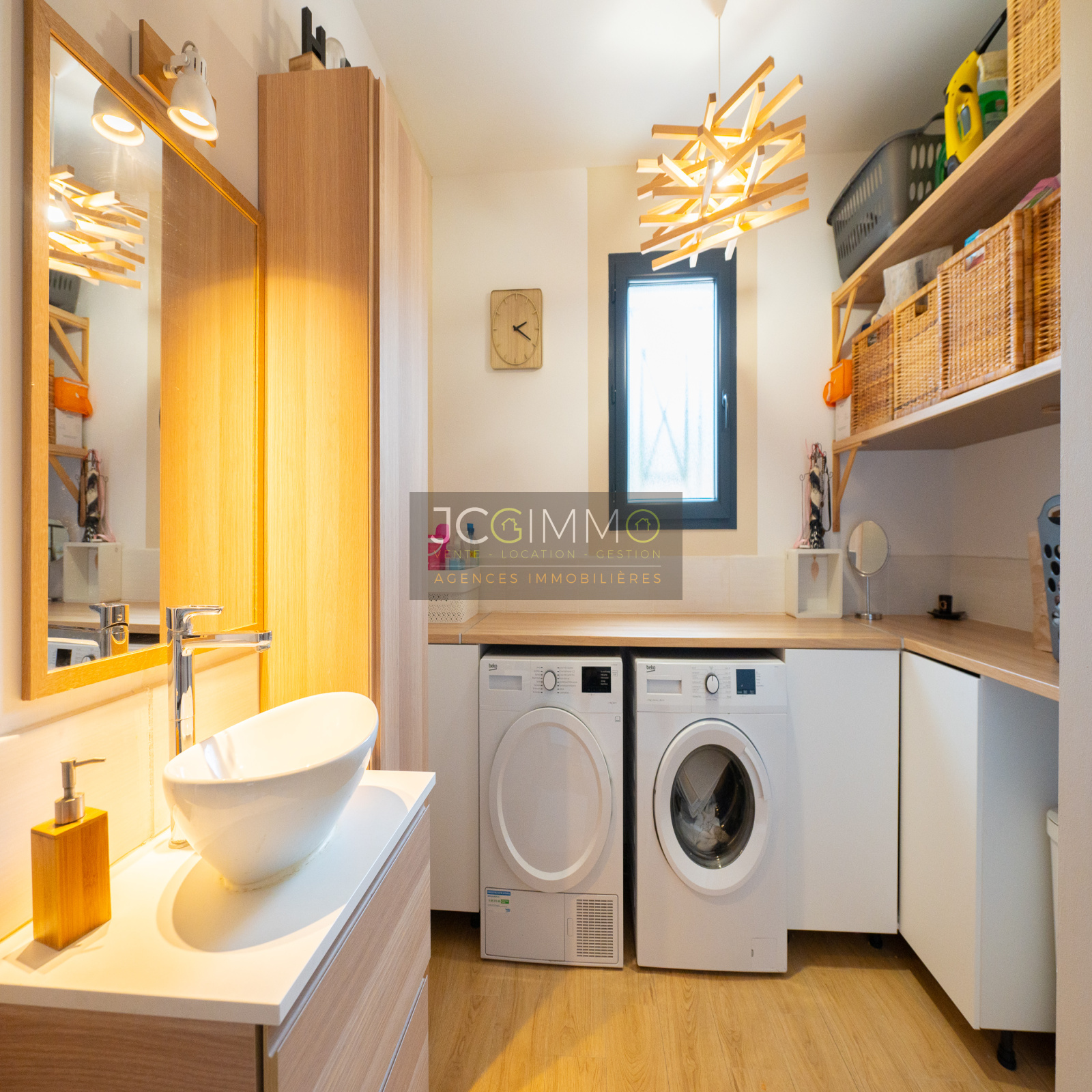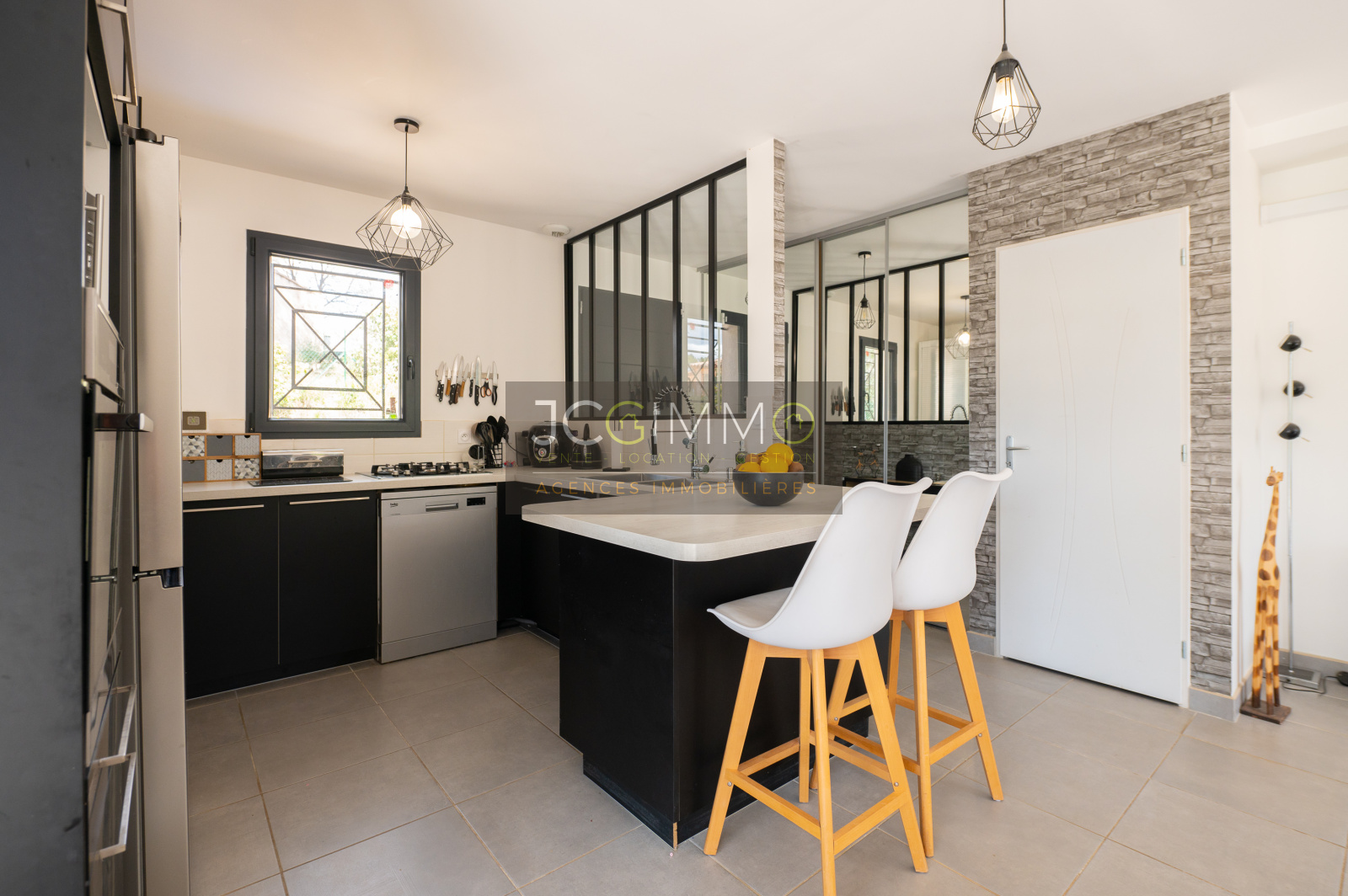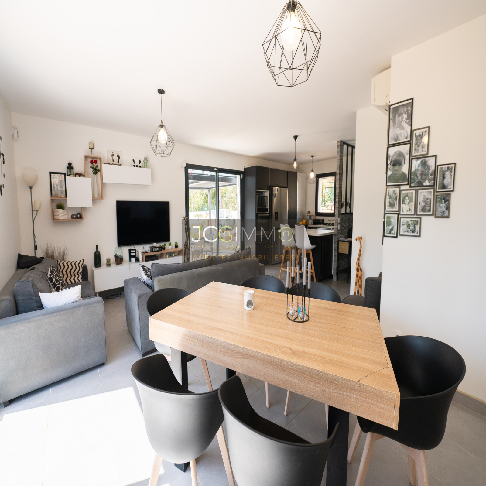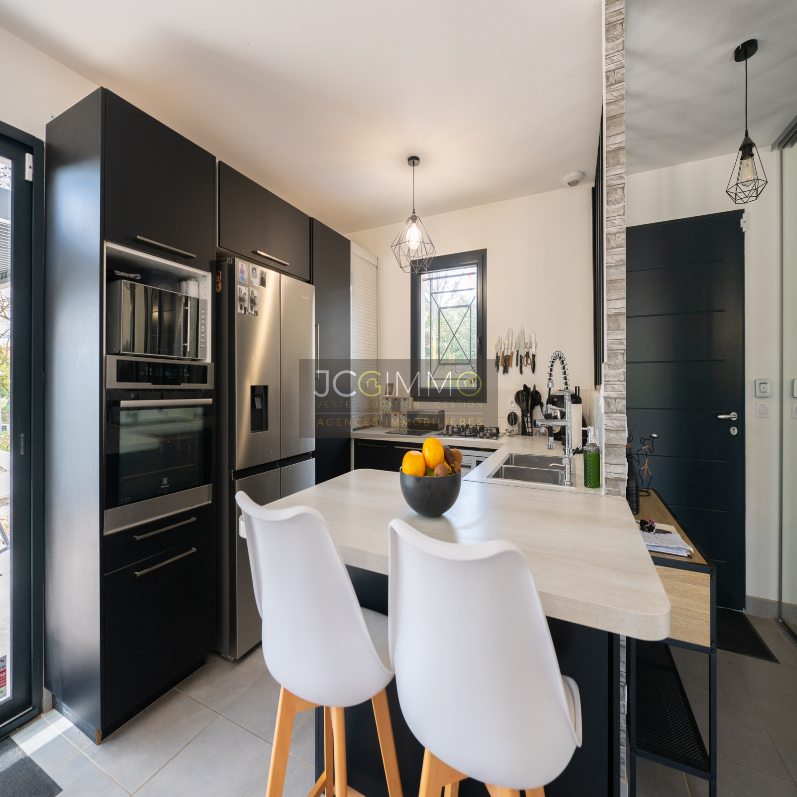 Du fait de sa construction récente, la maison est au goût du jour et ne nécessite aucun travaux ! Le séjour est baigné de lumière grâce à ses nombreuses grandes ouvertures en alu noir et son exposition SUD.