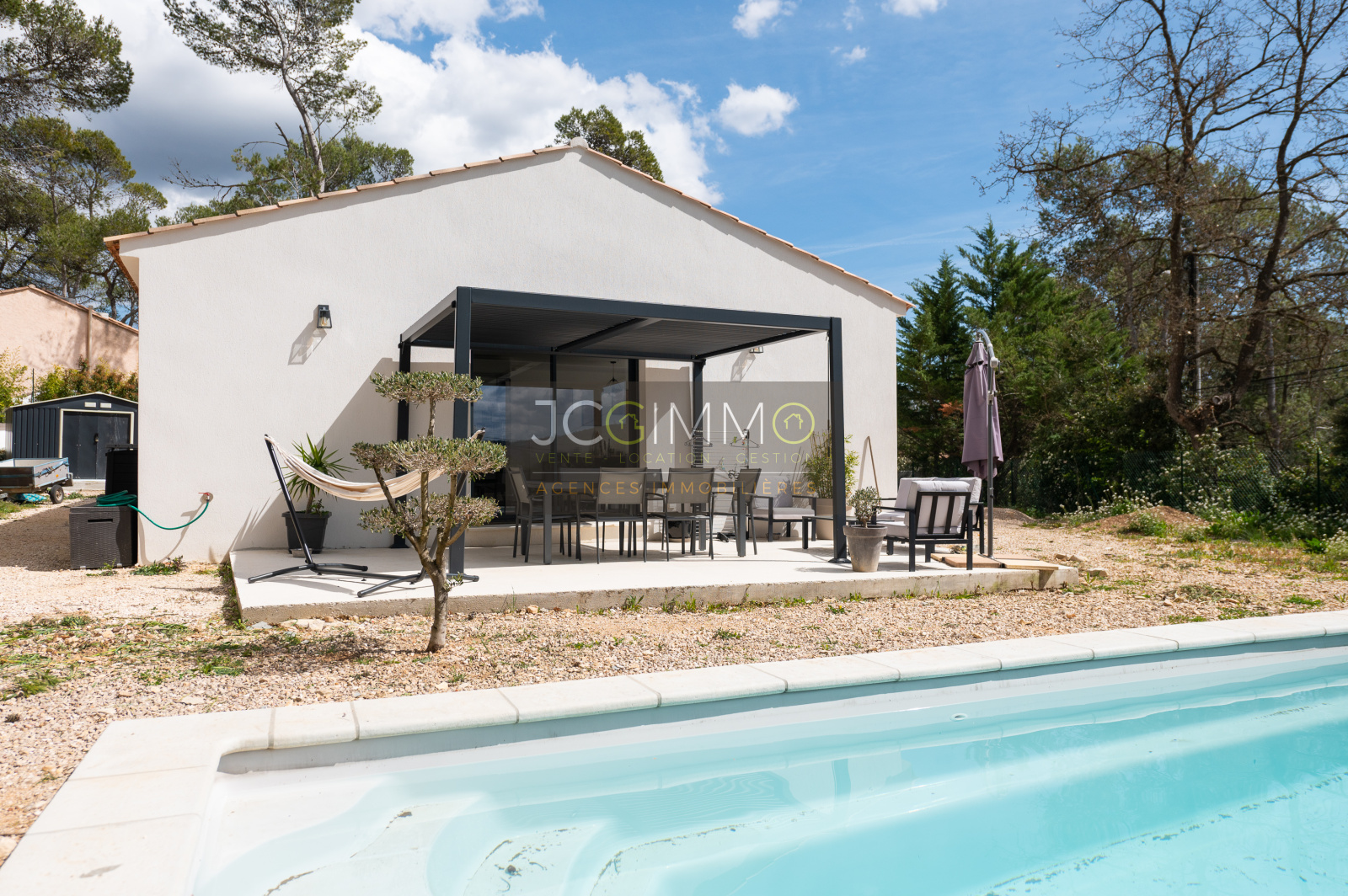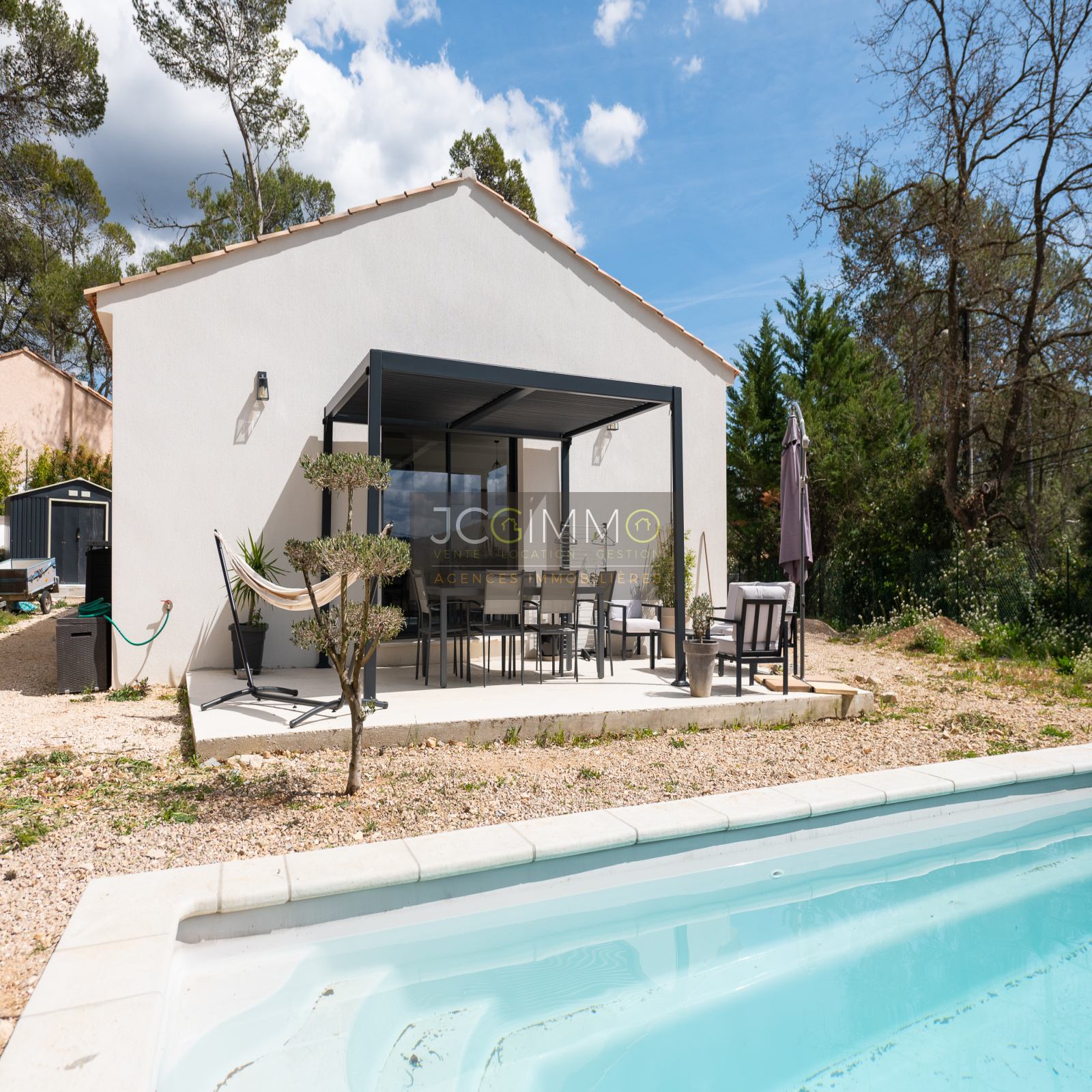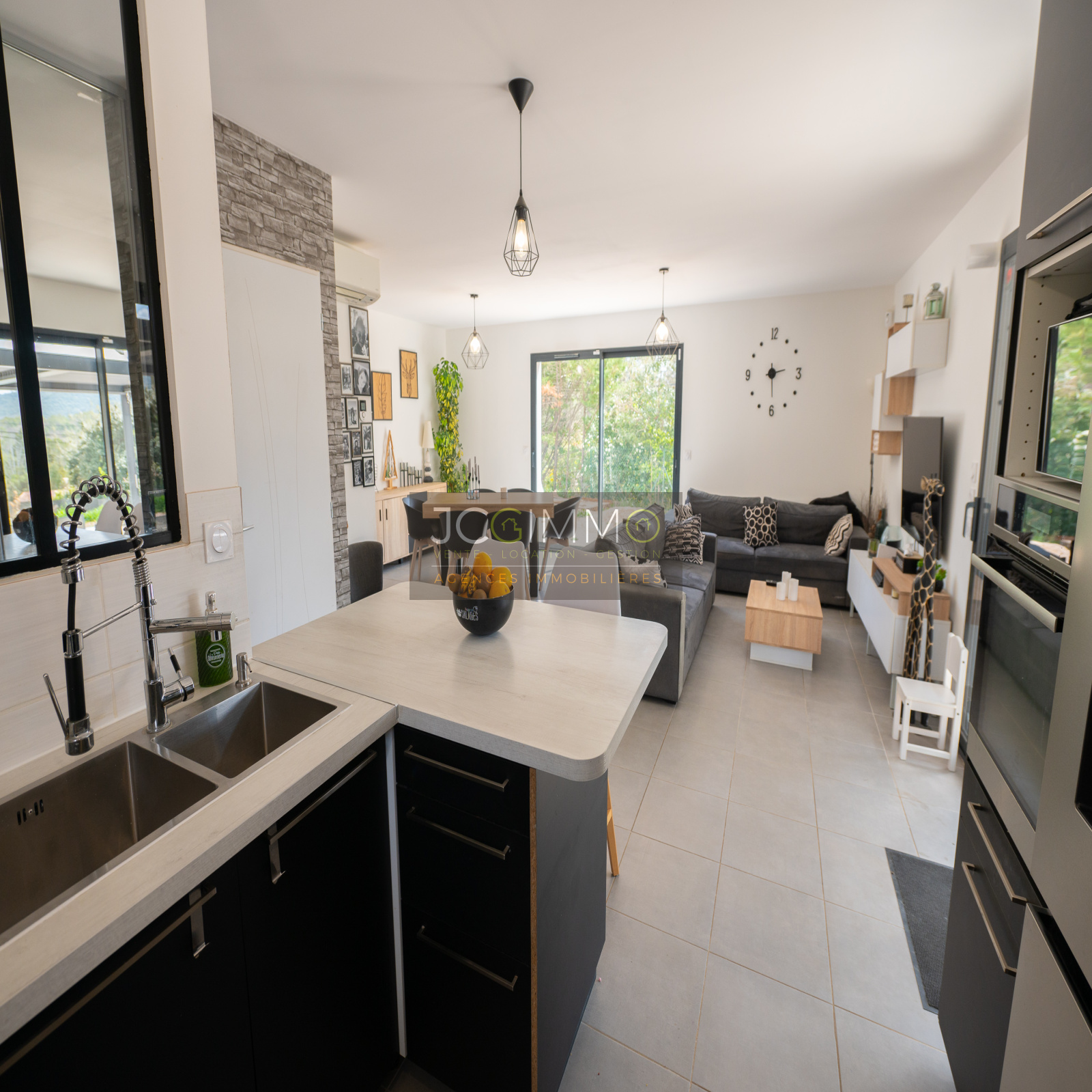 SOUS OFFRE D'ACHAT! ROCBARON : ALERTE PEPITE ! Maison individuelle de PLAIN PIED construite en 2020 contemporaine, au calme et aux normes RT 2012 basse consommation ! Nous vous présentons cette superbe maison individuelle plein SUD de 94 m² ,, avec de très belles prestations dont une belle piscine chauffée, le sol chauffant , un grand salon / cuisine ouverte, 1 salle d'eau, un WC et 3 chambres , le tout sur un terrain plat et cloturé de 1547m².