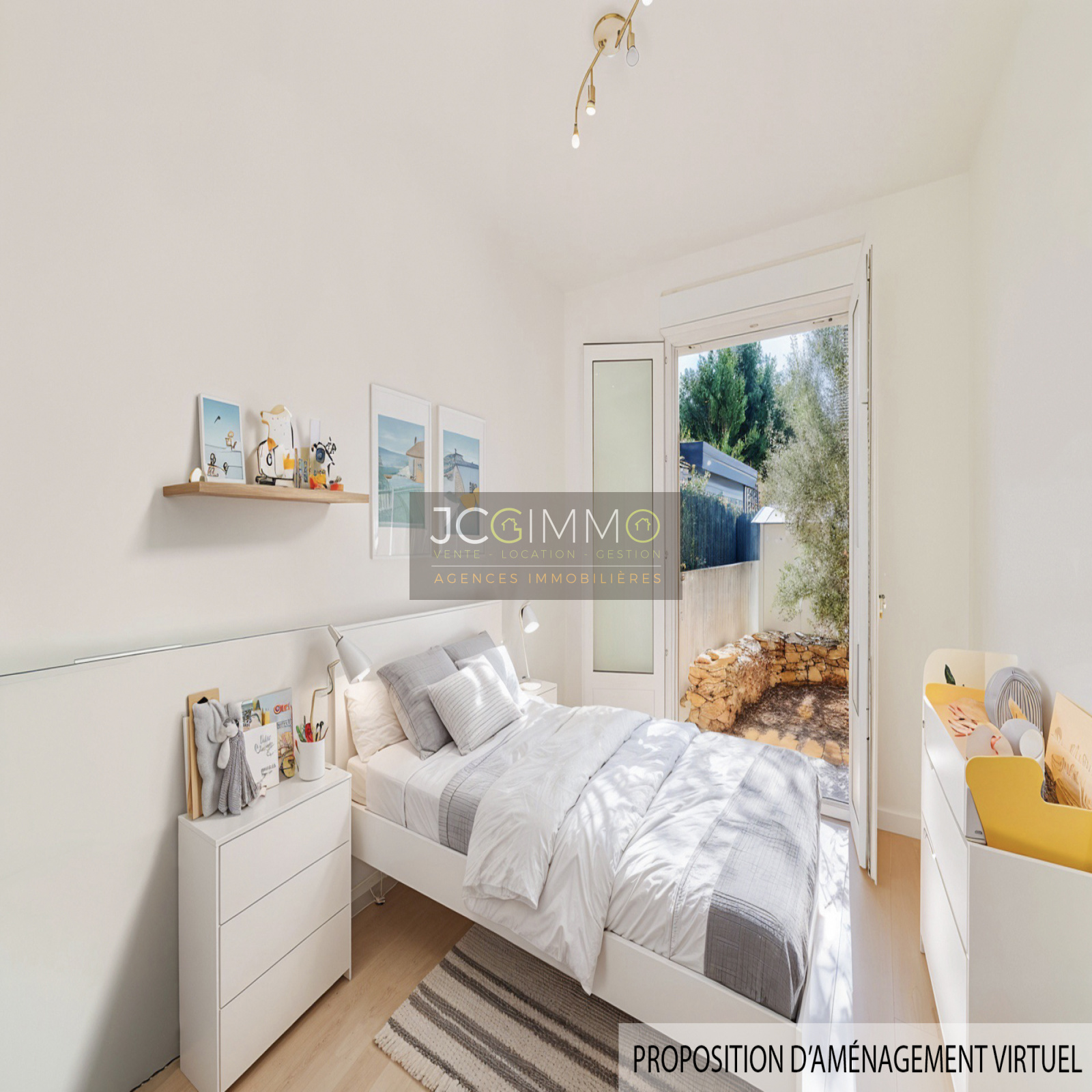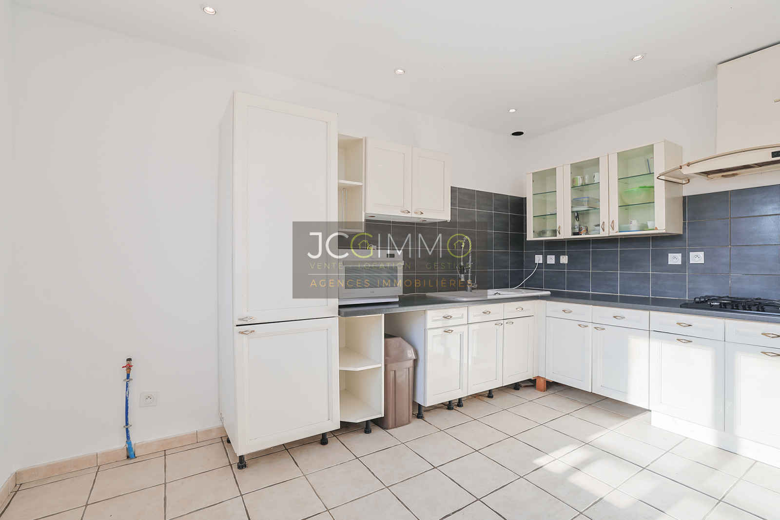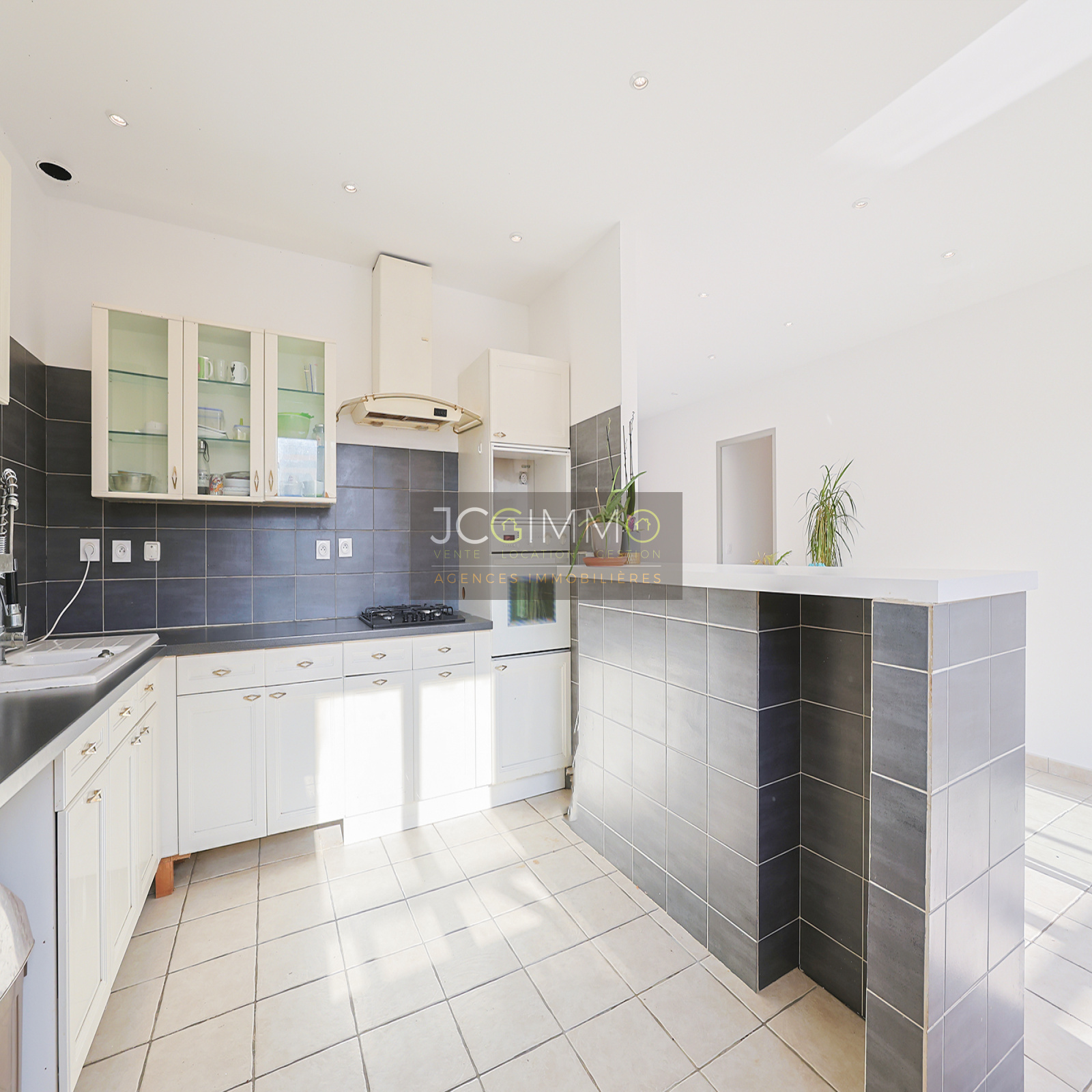 A l’INTERIEUR : une cuisine américaine ouverte vers un grand salon/séjour lumineux et climatisé, trois chambres avec rangements, salle d’eau avec douche italienne, WC séparé.