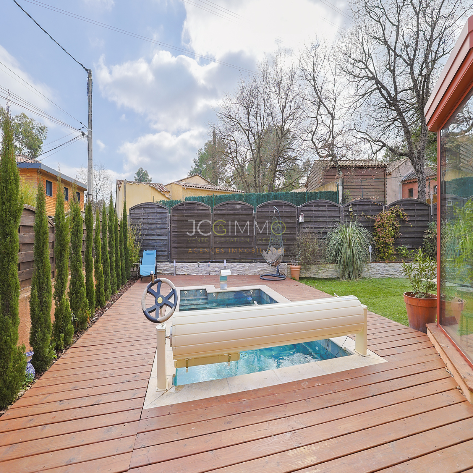 EXCLUSIVITÉ JCG IMMO : ROCBARON, secteur calme, proche commodités, villa T4 entièrement habitable de plain-pied avec terrain, piscine, stationnements et dépendance.