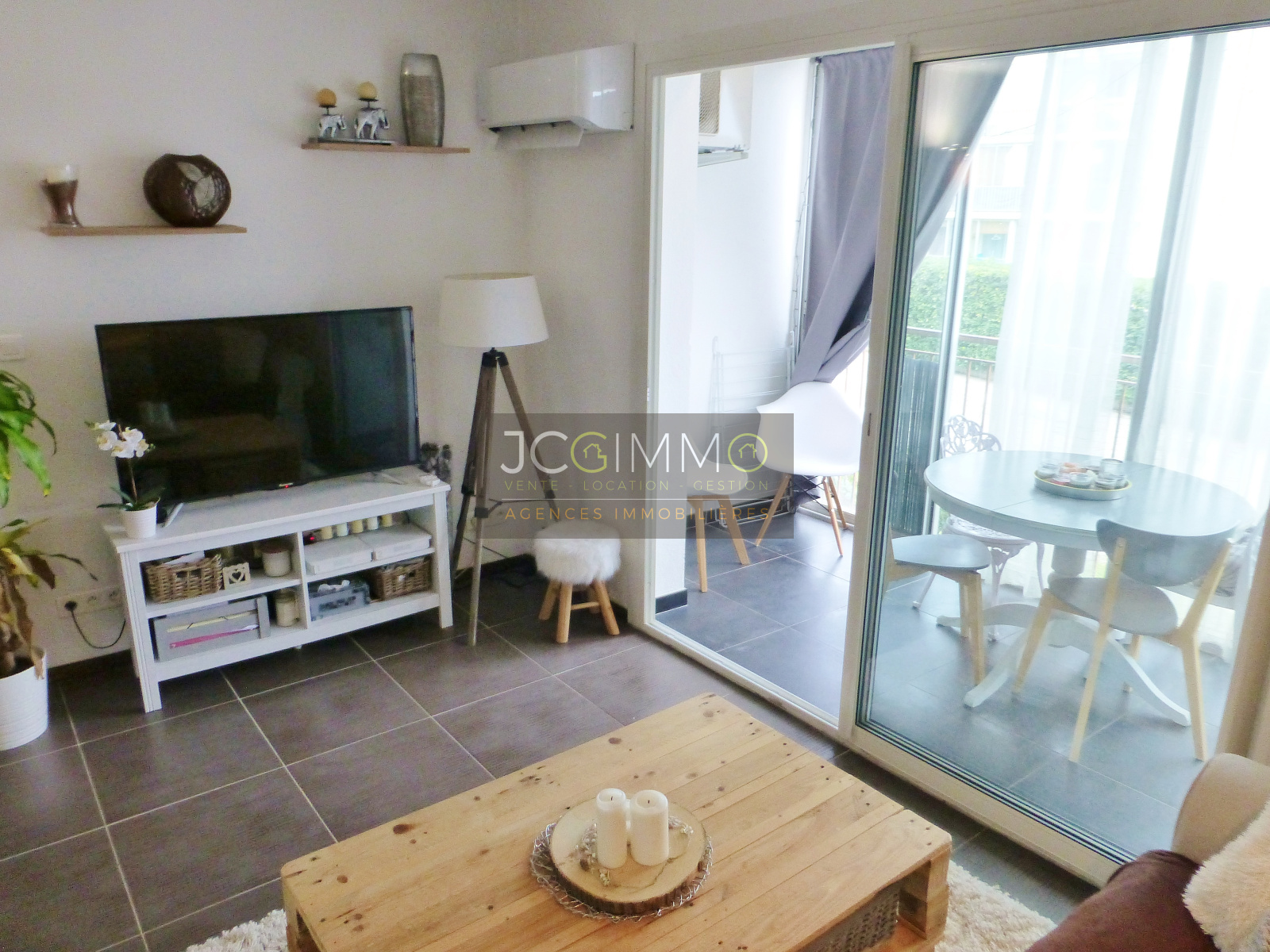 SIX FOURS LES PLAGES (Cap Nègre) à 150m de la plage de sable fin !! JCG IMMOBILIER vous propose ce bel appartement 2 pièces de 35m² env, en PARFAIT ETAT au RdC surélevé d'une résidence bien entretnue. Il se compose d'une TERRASSE LOGGIA, d'un espace de vie avec Salon/Cuisine ouverte entièrement équipée, une Chambre avec grand rangement et une Salle de douches/Wc. Double vitrage, Sol carrelé, Climatisation Réversible. PAS DE TRAVAUX A PREVOIR, PAS DE VIS A VIS, AU CALME. Résidence sécurisée par portail automatique. Très nombreuses places de stationnement à l'intérieur de la résidence. A VOIR RAPIDEMENT