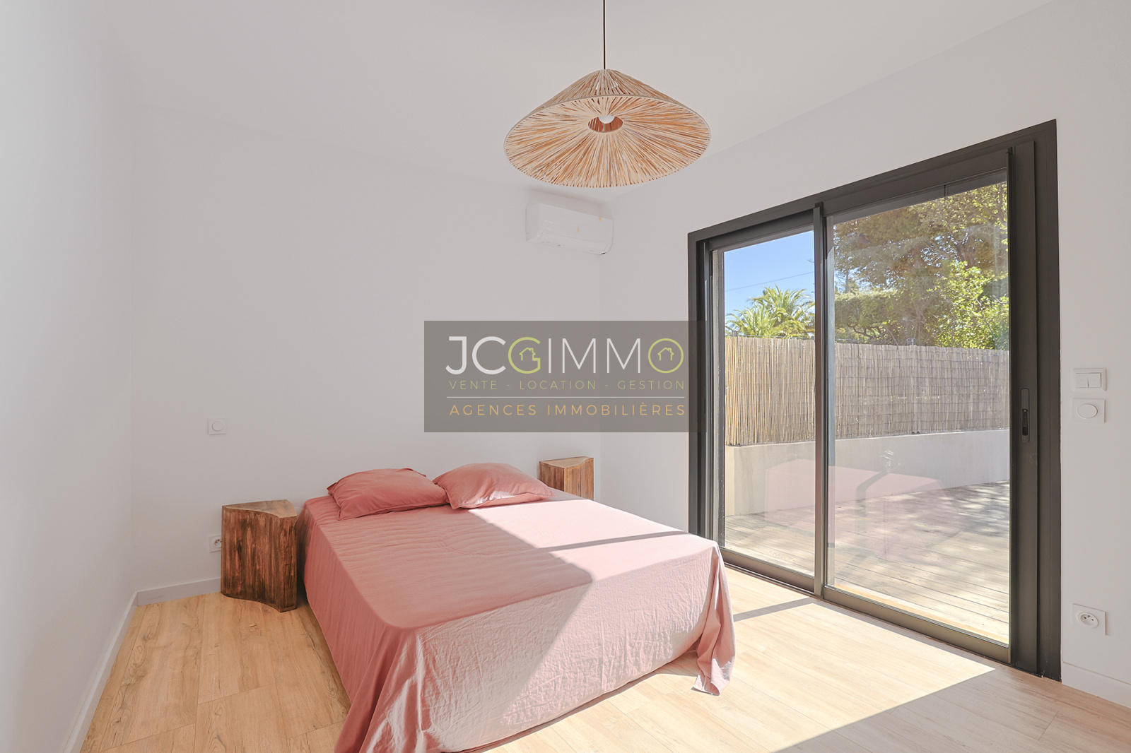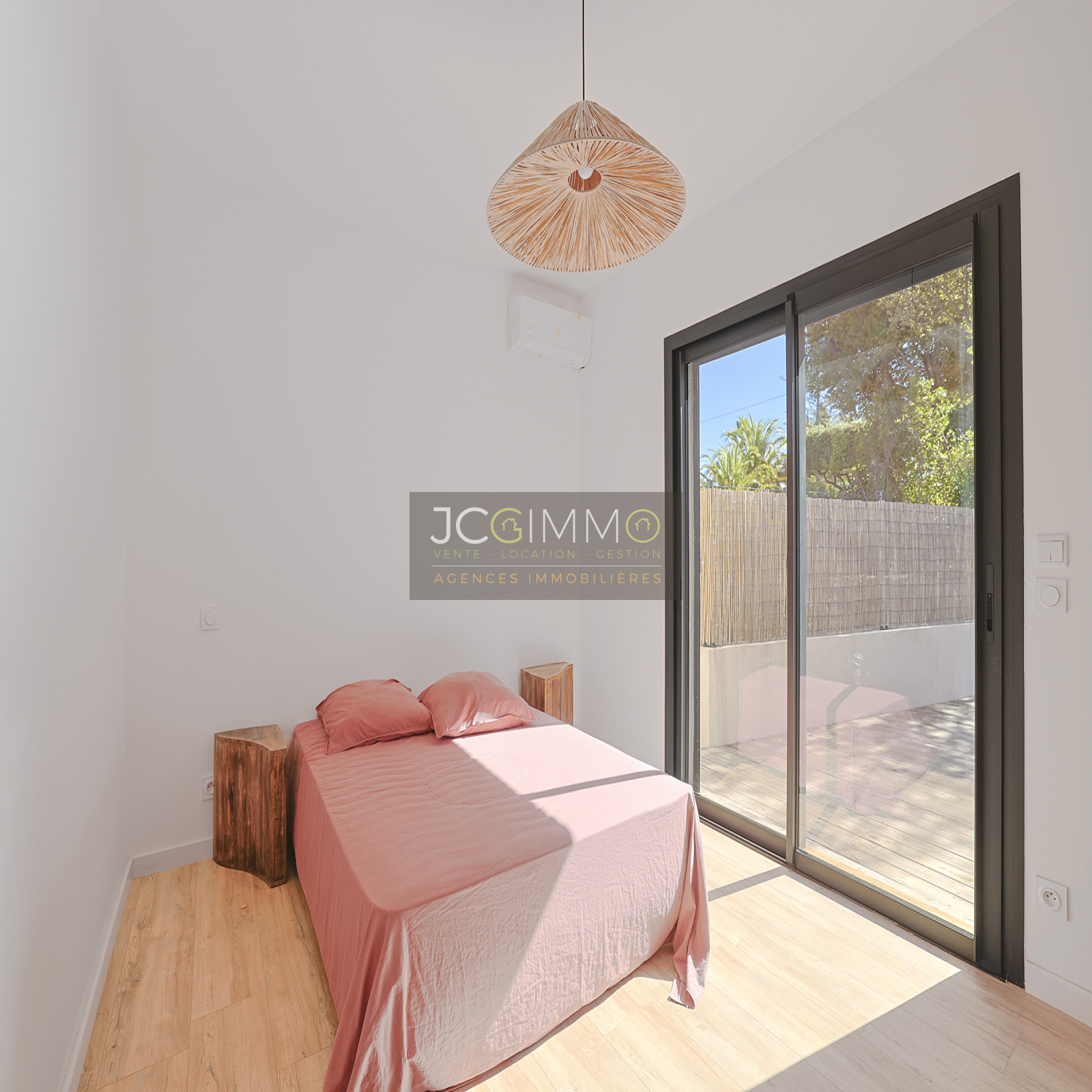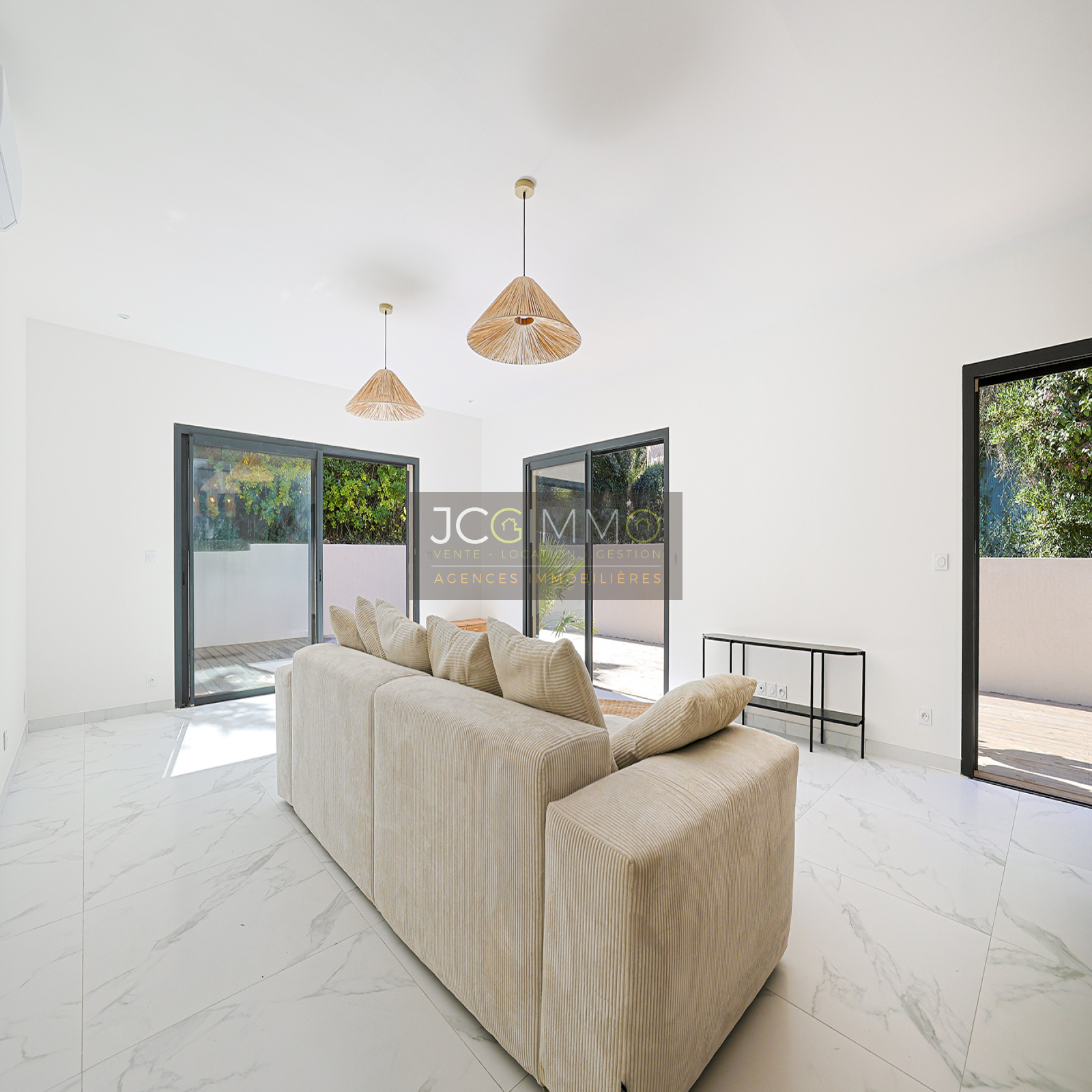 Prestations premium : climatisation réversible dans toutes les pièces, double vitrage coulissant en aluminium avec volets roulants, carrelage grands formats, finitions soignées. Aucun vis-à-vis, pas de travaux à prévoir.