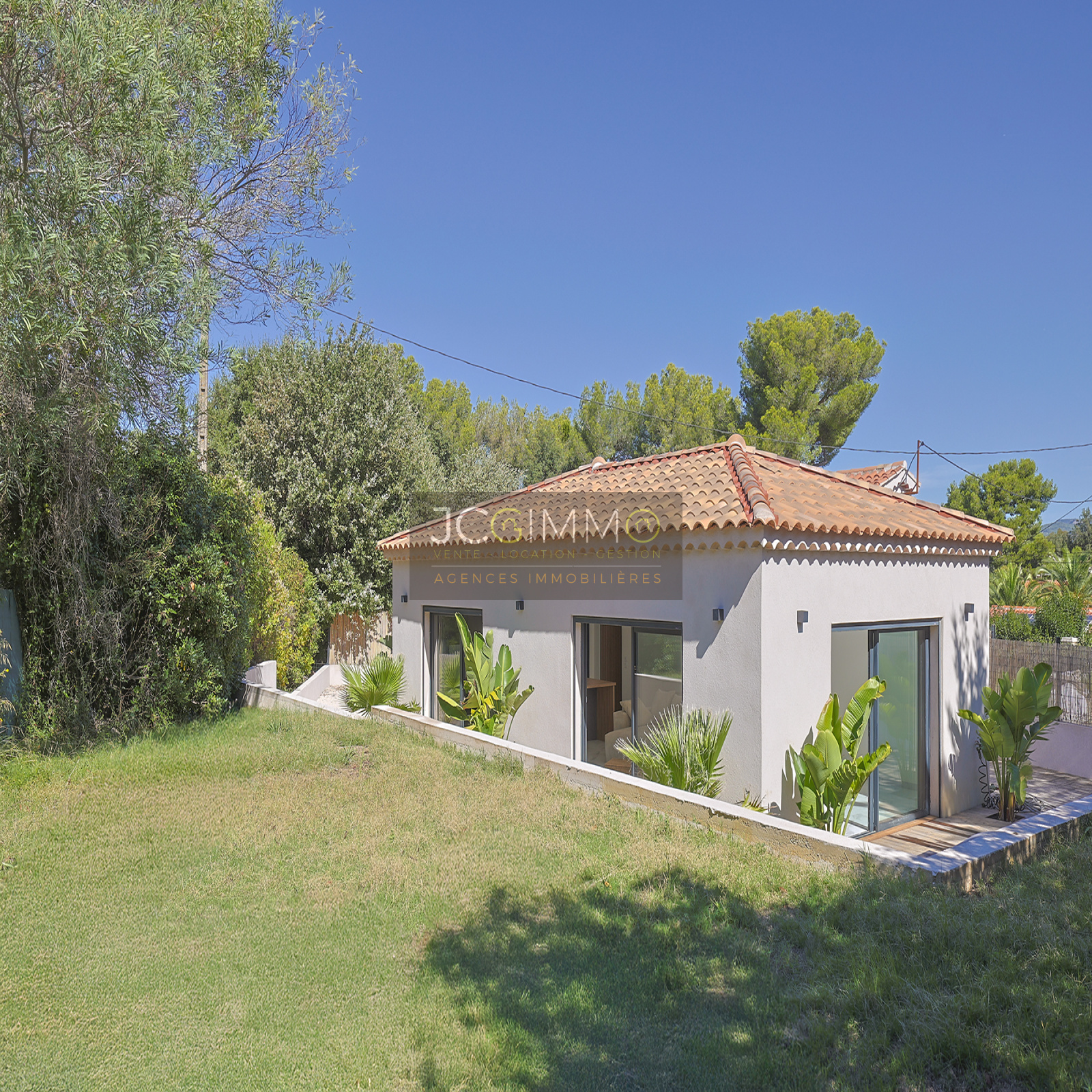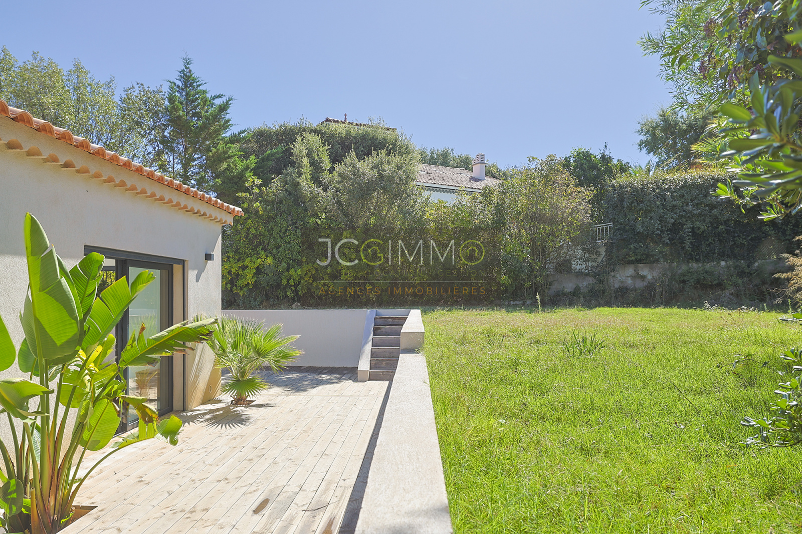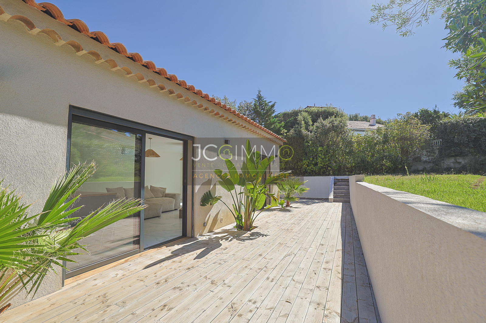 À l’extérieur, vous profiterez d’une belle terrasse intimiste, agrémentée de plantes exotiques, d’un jardin paysager avec 200 m² de gazon californien véritable, sur une parcelle de plus de 600 m² accessible via un portail électrique privatif.