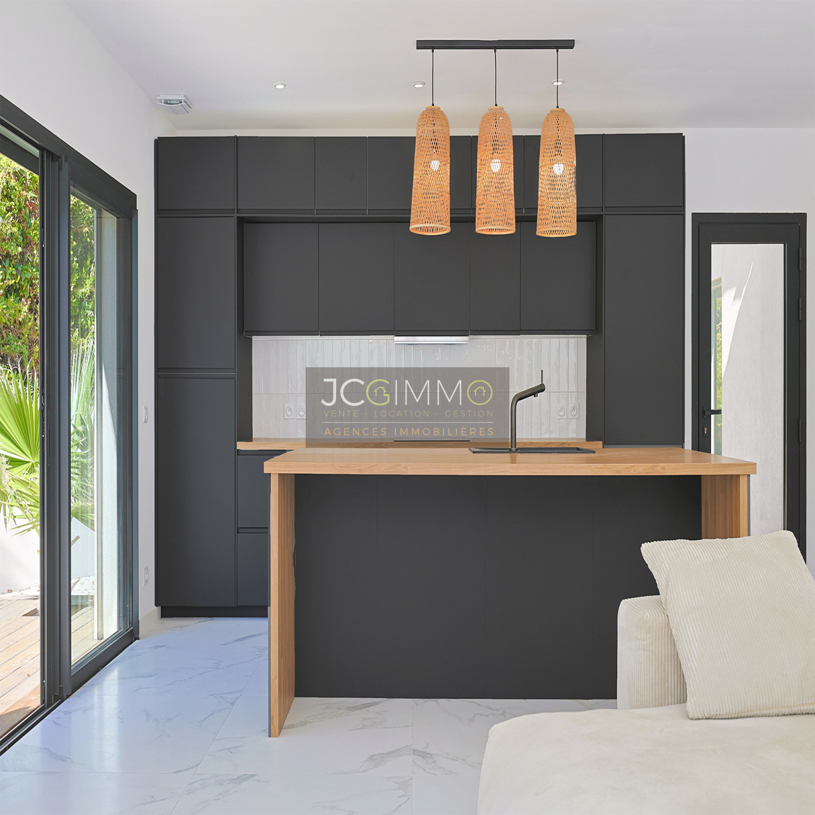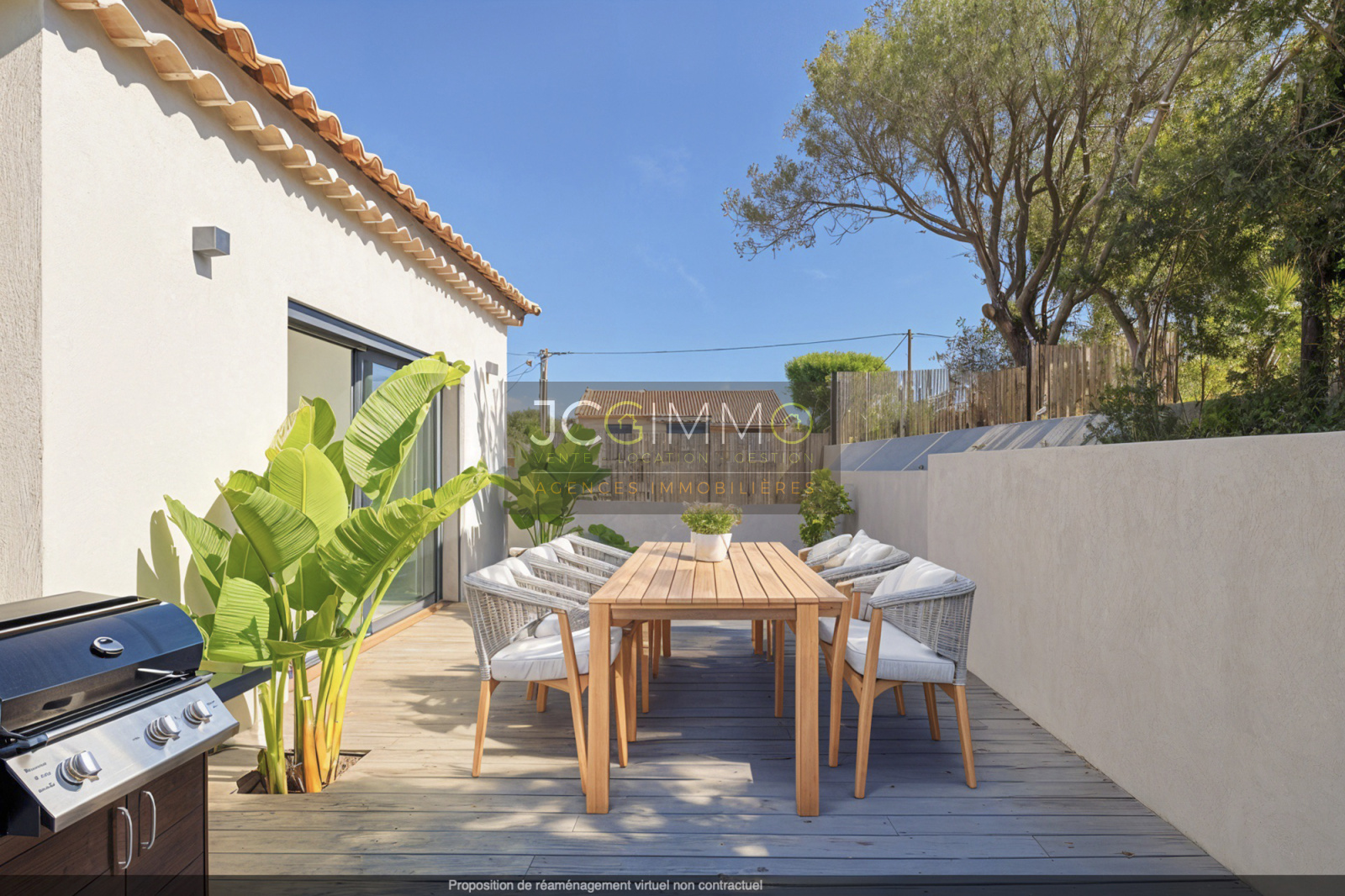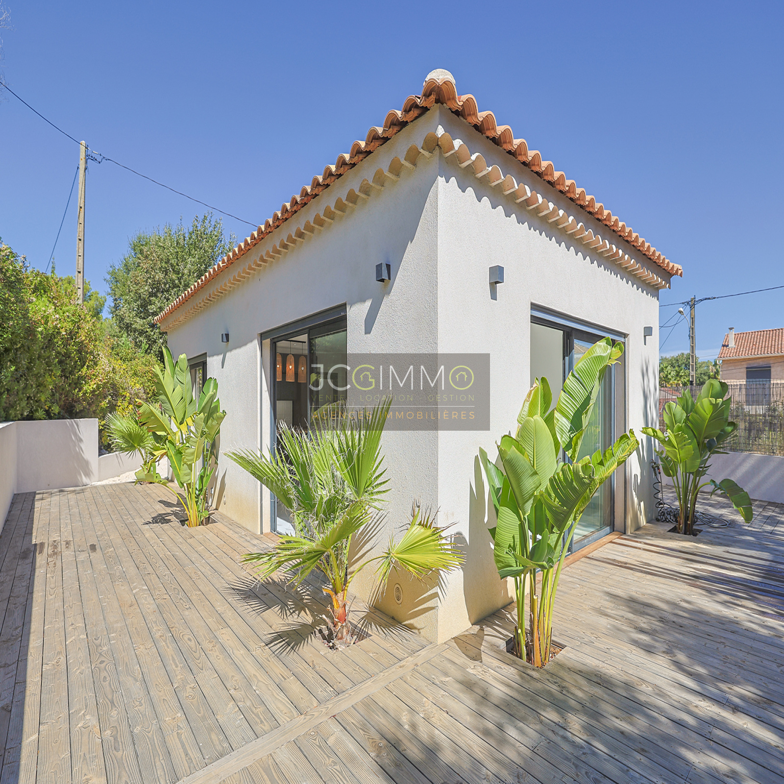 À l’extérieur, vous profiterez d’une belle terrasse intimiste, agrémentée de plantes exotiques, d’un jardin paysager avec 200 m² de gazon californien véritable, sur une parcelle de plus de 600 m² accessible via un portail électrique privatif.