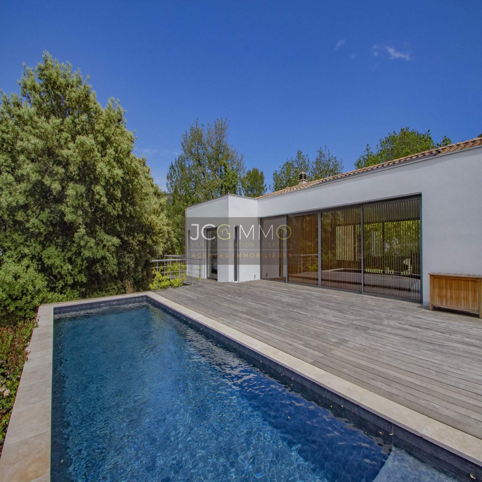 VENDU SOLLIES TOUCAS (Secteur très apprécié de VALAURY), JCG IMMOBILIER vous propose en EXCLUSIVITE et NULLE PART AILLEURS cette Superbe Villa de PLAIN PIED (2010) de 200m² à l’architecture Contemporaine, exposée Sud, très lumineux avec un superbe ensoleillement TOUTE L'ANNEE, au grand calme sur un terrain clos et arboré de 2000 m² en larges restanques avec Piscine, Pool house et Grand Garage.