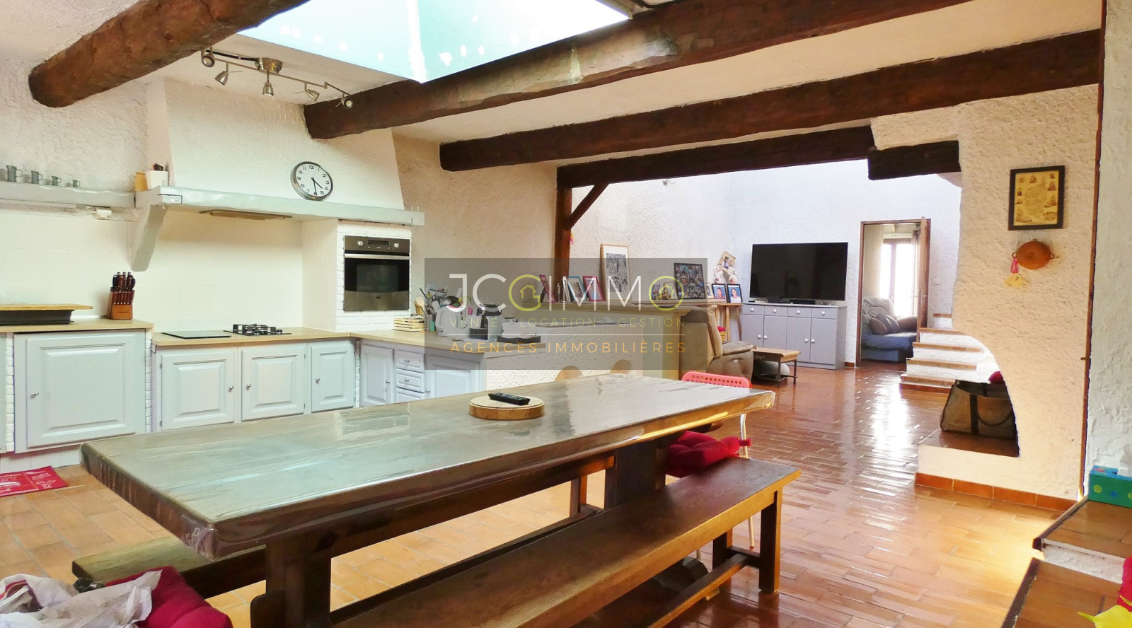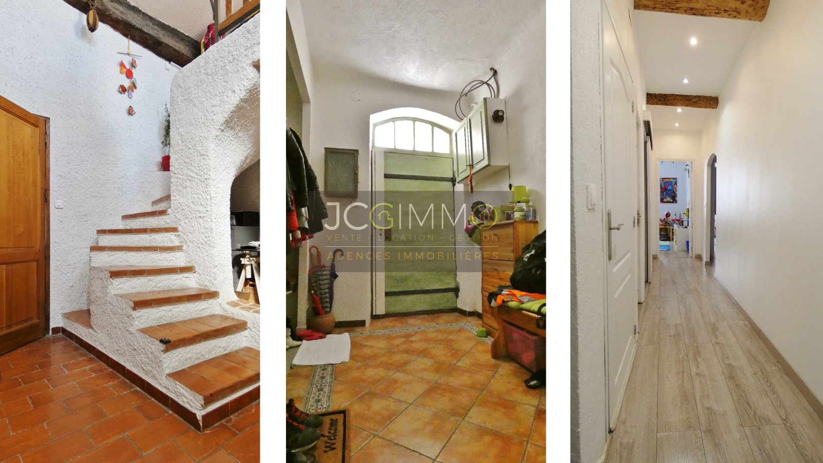SOLLIES TOUCAS (Centre). Grande Maison de Village ENTIEREMENT RENOVEE, très lumineuse de 171m² avec 5 chambres + GARAGE de 45m² + une belle cave (16m²) au sous-sol et Terrasse TROPEZIENNE de 16 m² orientée SUD sans vis-à-vis avec une vue sur les collines avoisinantes.