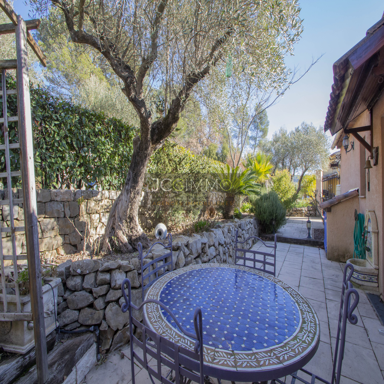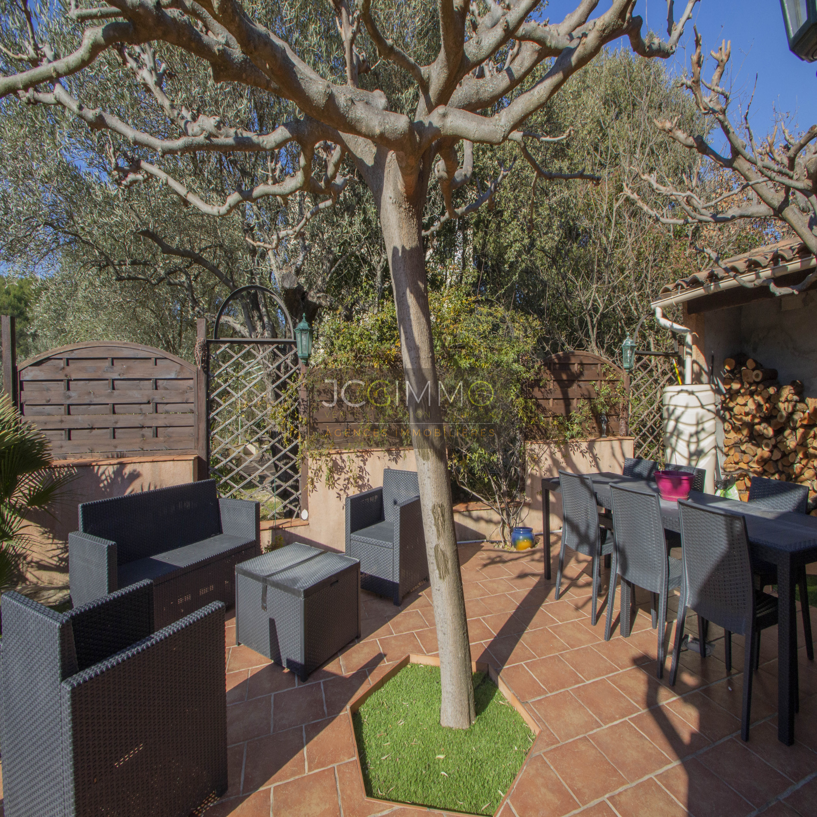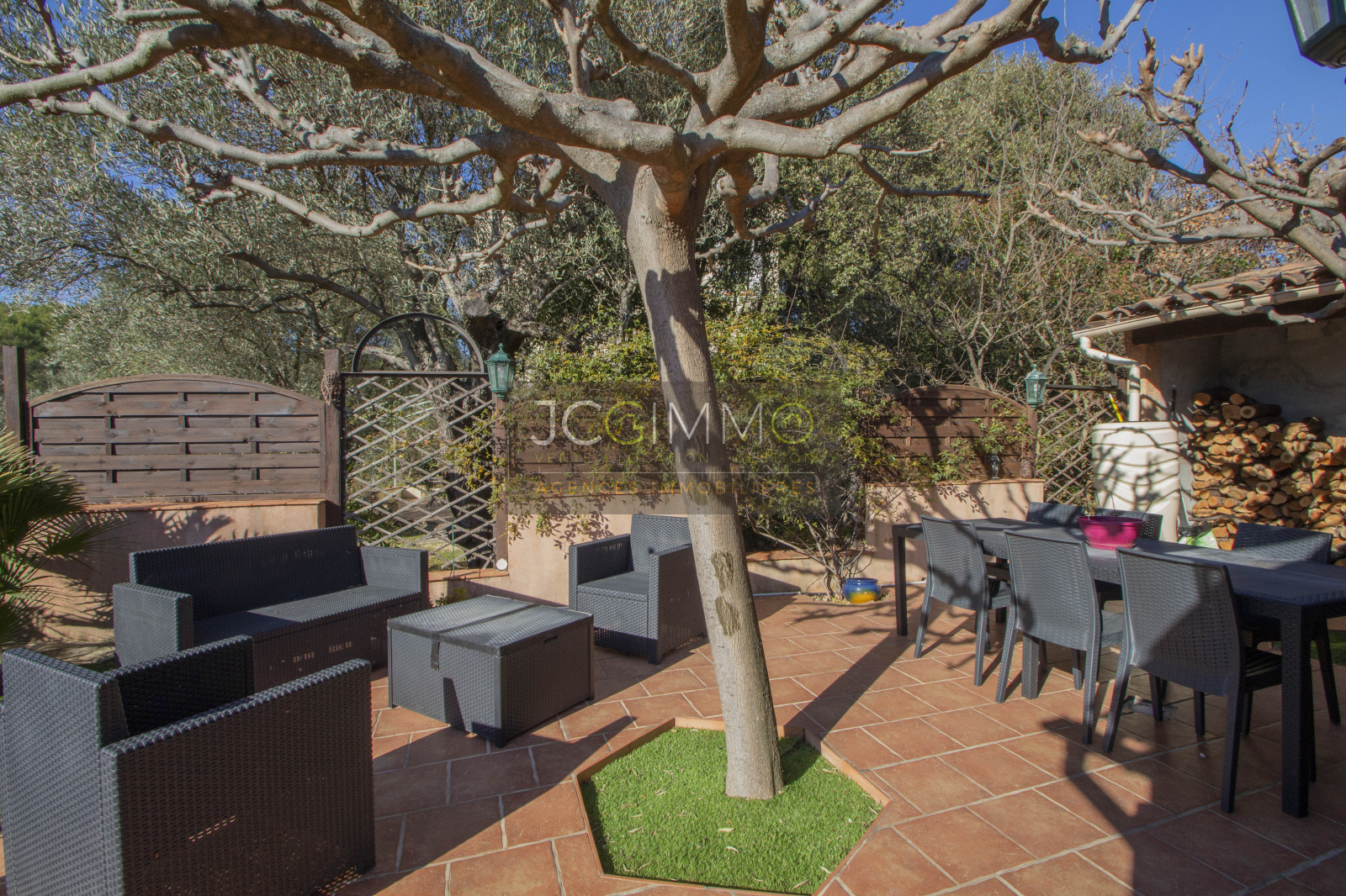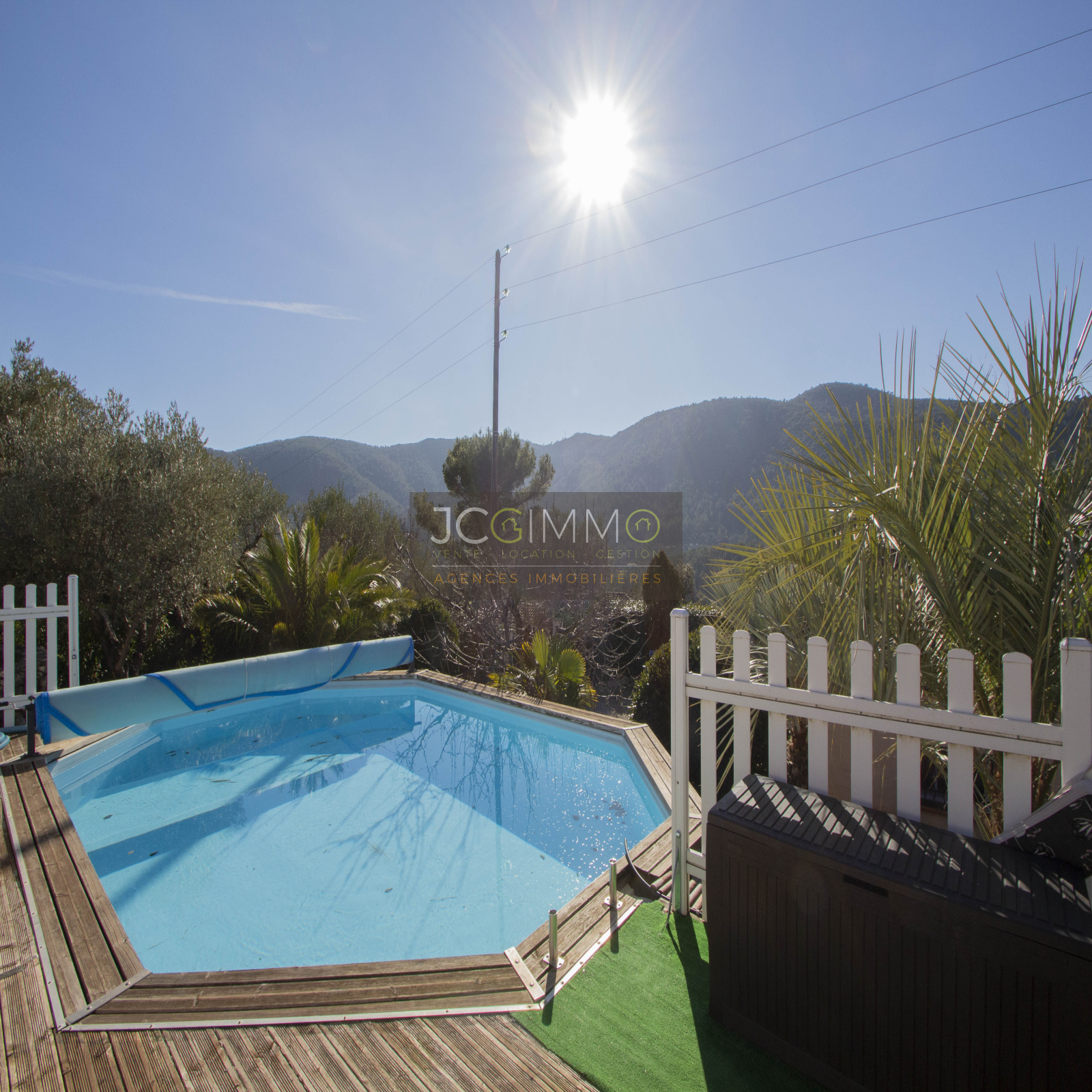 À l’extérieur, la villa est implantée sur un superbe terrain formé de larges restanques bien entretenues qui donnent un charme garanti sans en avoir l’inconvénient. Le terrain est agrémenté d’oliviers, de muriers platane, palmiers …, d’une terrasse SUD ombragée avec cuisine d’été, d’une terrasse nord idéale pour se protéger du soleil en été, d’un abri voiture adossé à la villa et d’une piscine sécurisée hors sol orientée plein sud avec une vue magnifique.