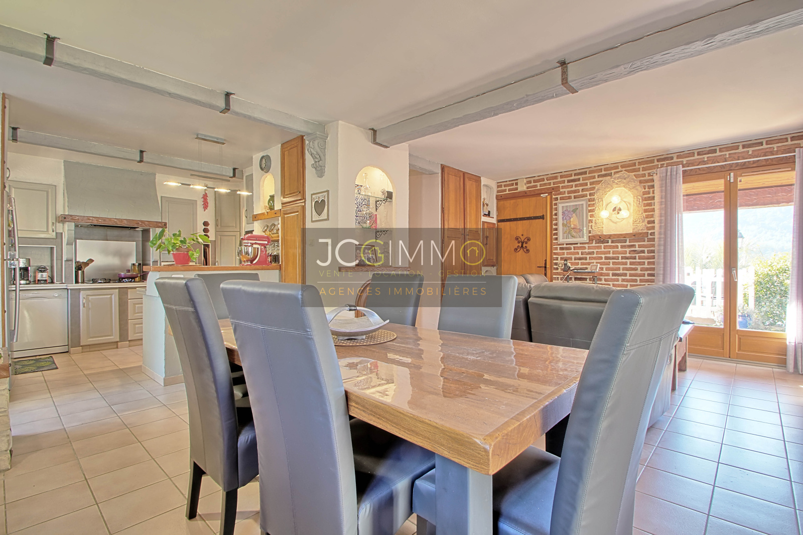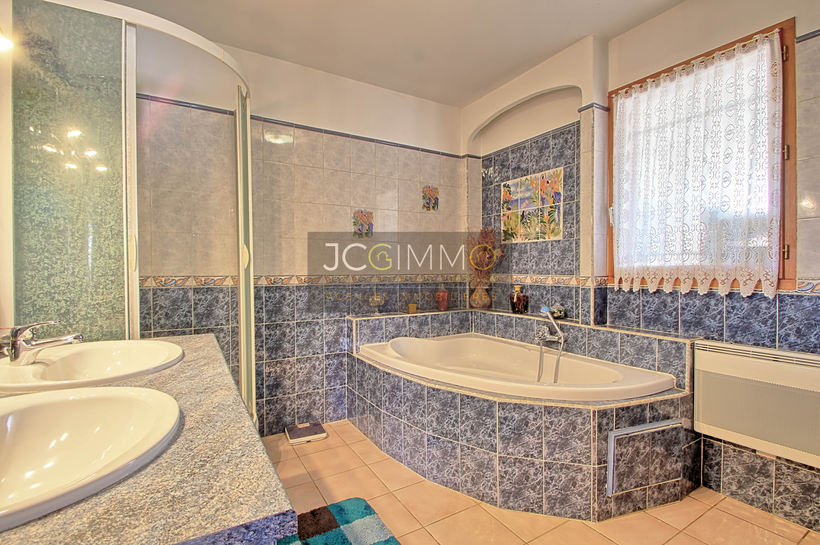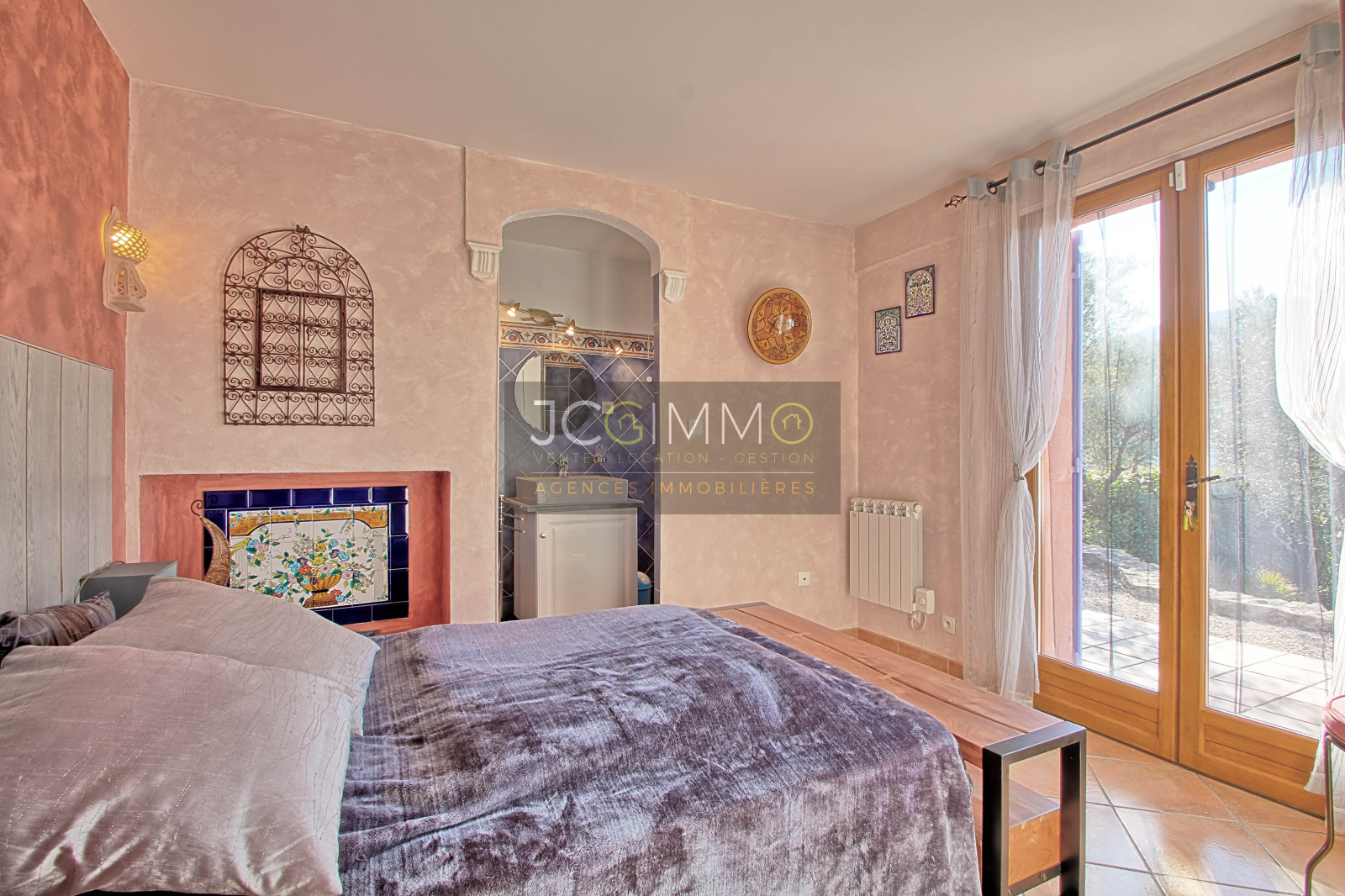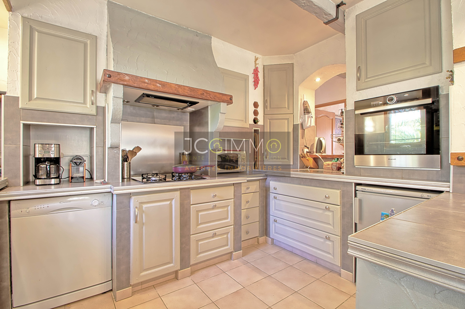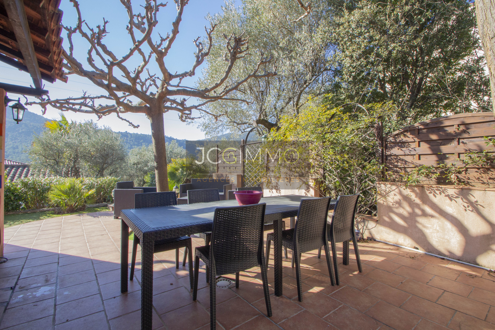À l’extérieur, la villa est implantée sur un superbe terrain formé de larges restanques bien entretenues qui donnent un charme garanti sans en avoir l’inconvénient. Le terrain est agrémenté d’oliviers, de muriers platane, palmiers …, d’une terrasse SUD ombragée avec cuisine d’été, d’une terrasse nord idéale pour se protéger du soleil en été, d’un abri voiture adossé à la villa et d’une piscine sécurisée hors sol orientée plein sud avec une vue magnifique.