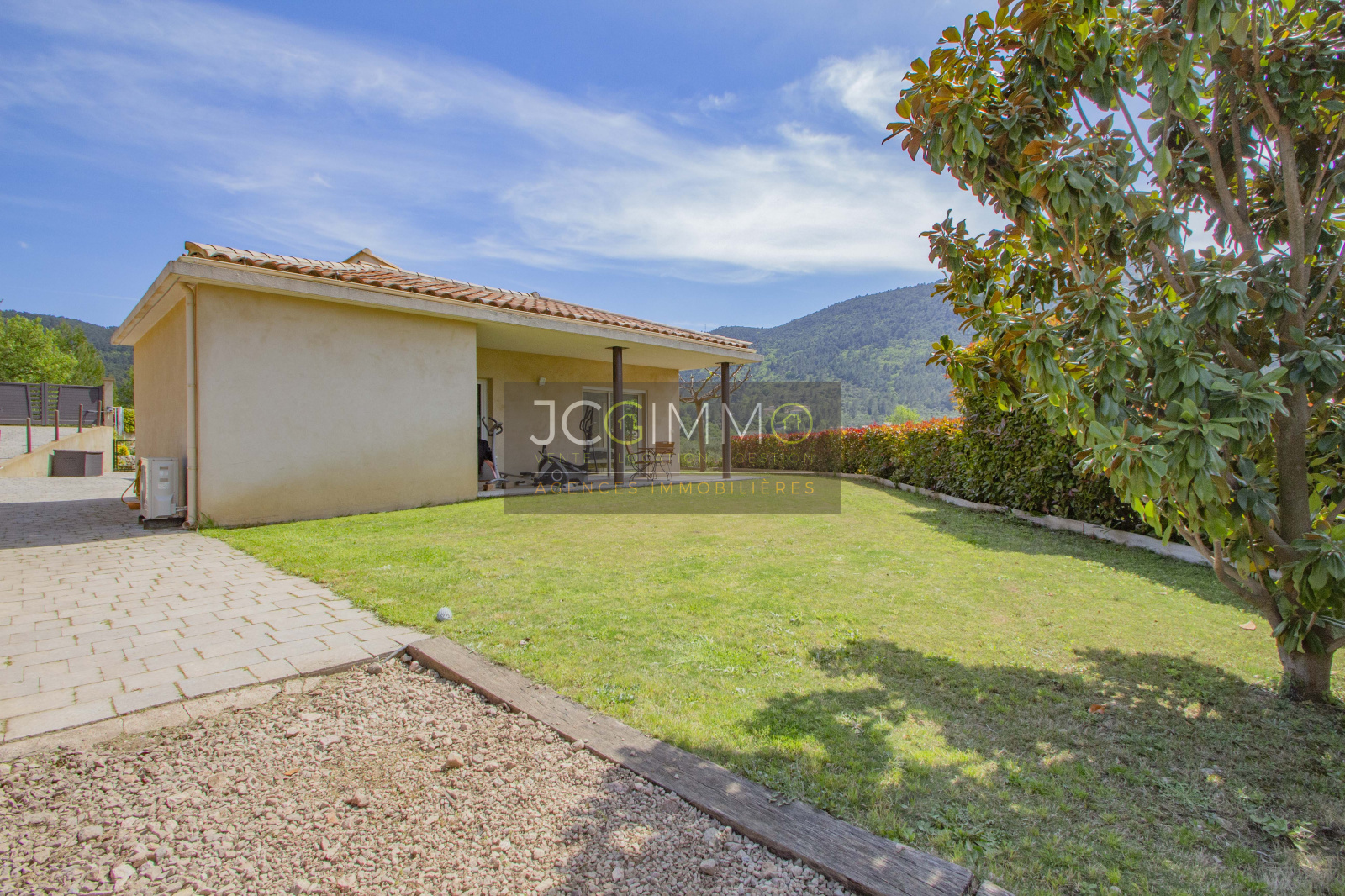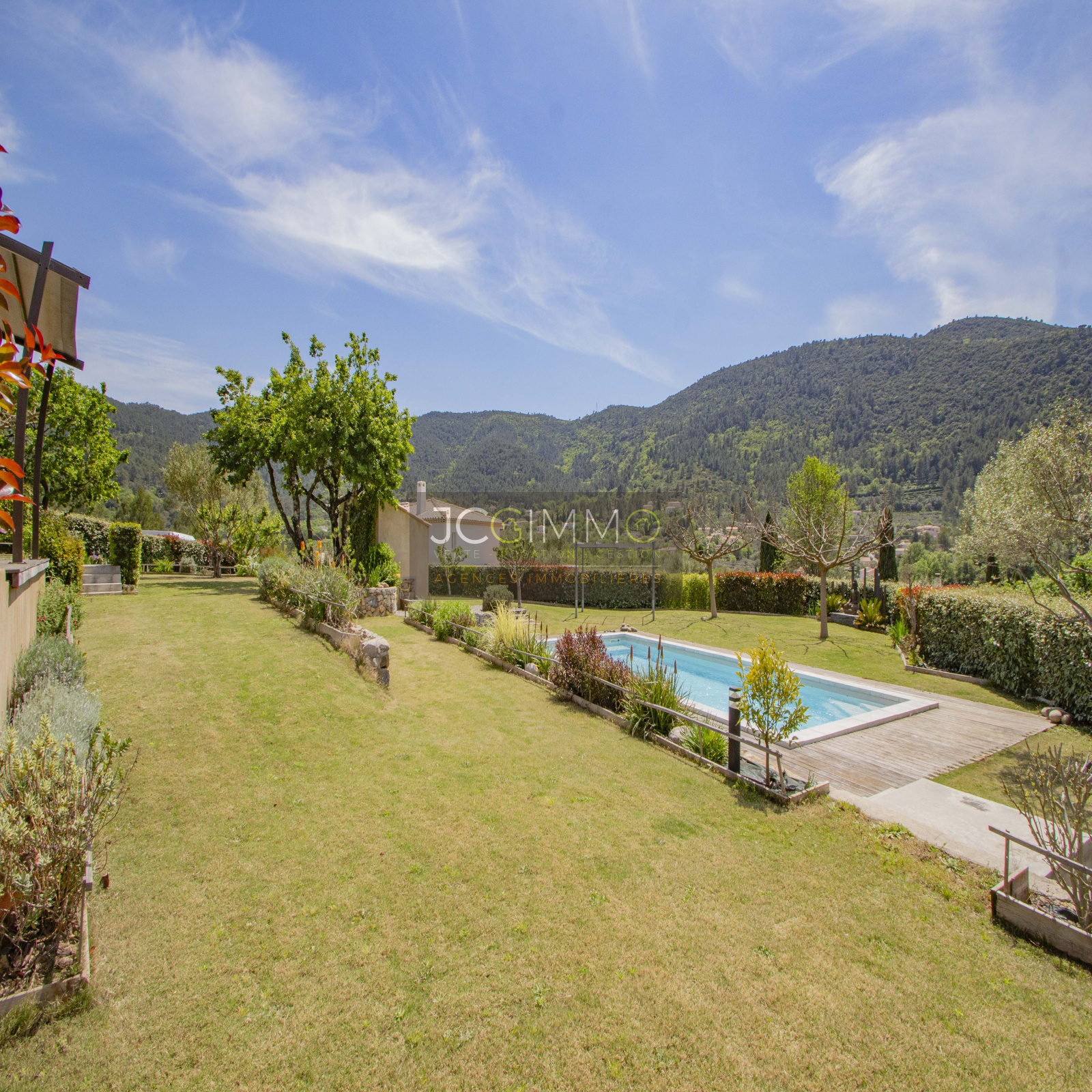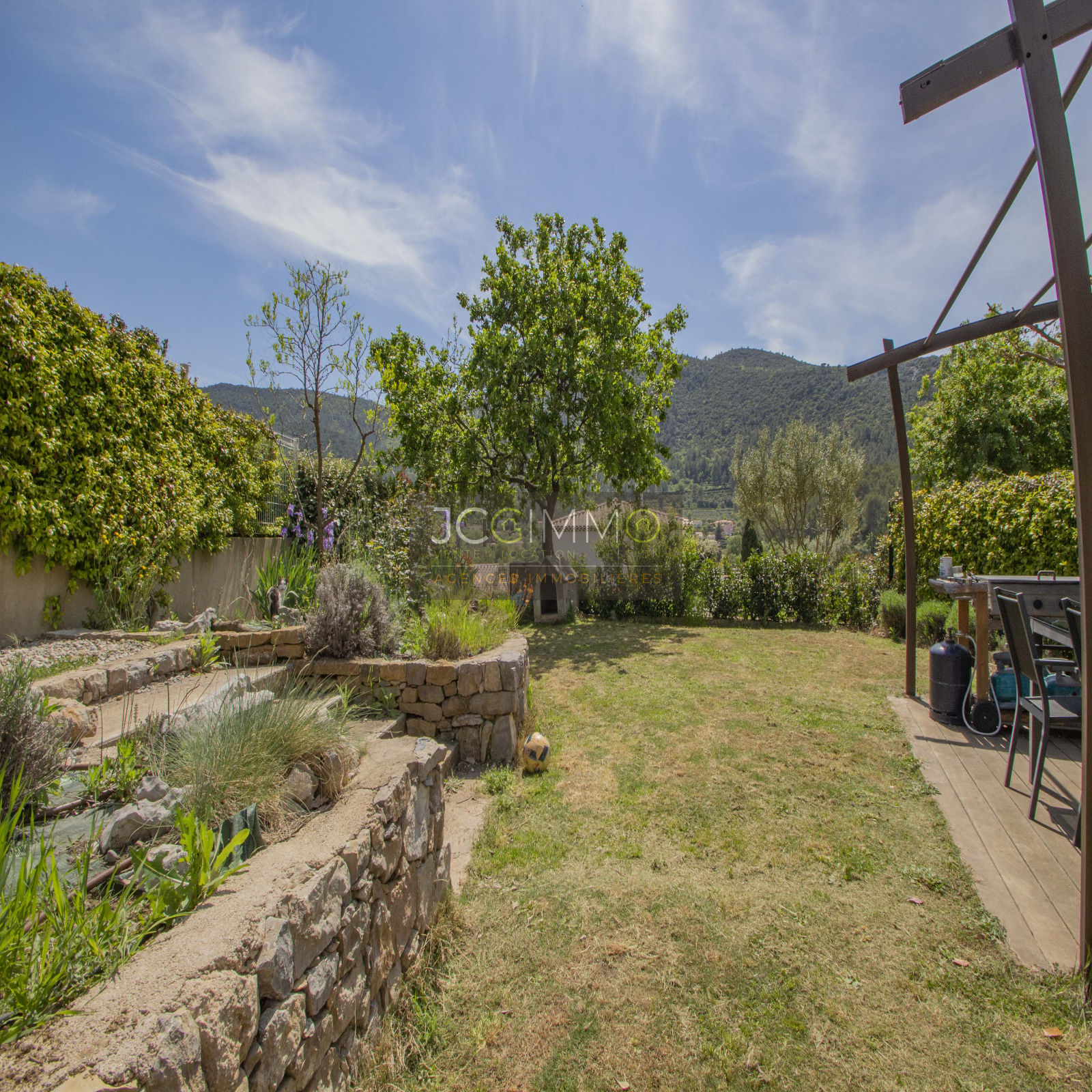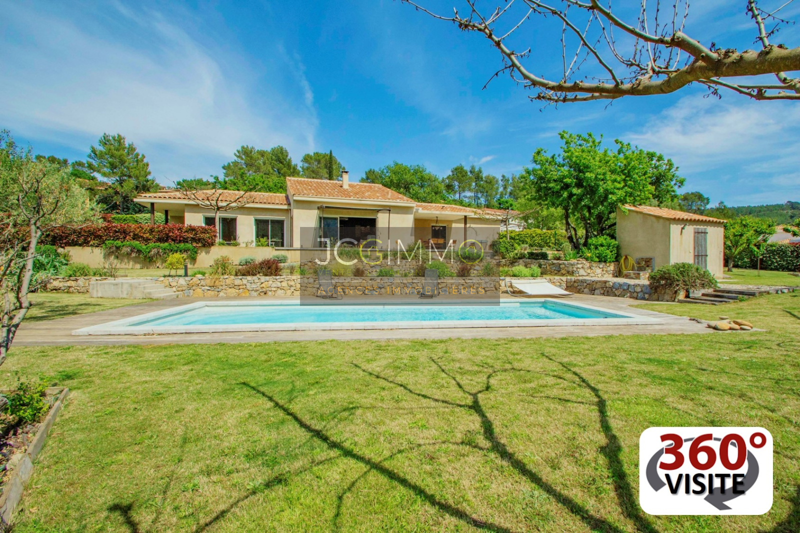 Le terrain, entièrement clos de 2000 m² en pente très douce, est parfaitement aménagé avec piscine, local technique et garage attenant (aménageable bureau, chambre ...).