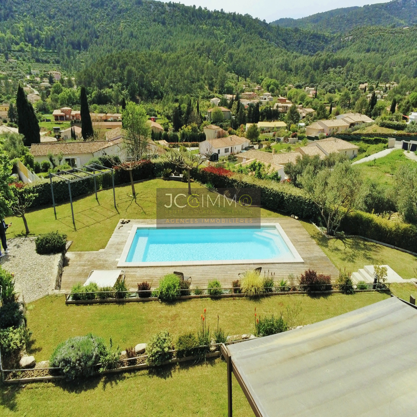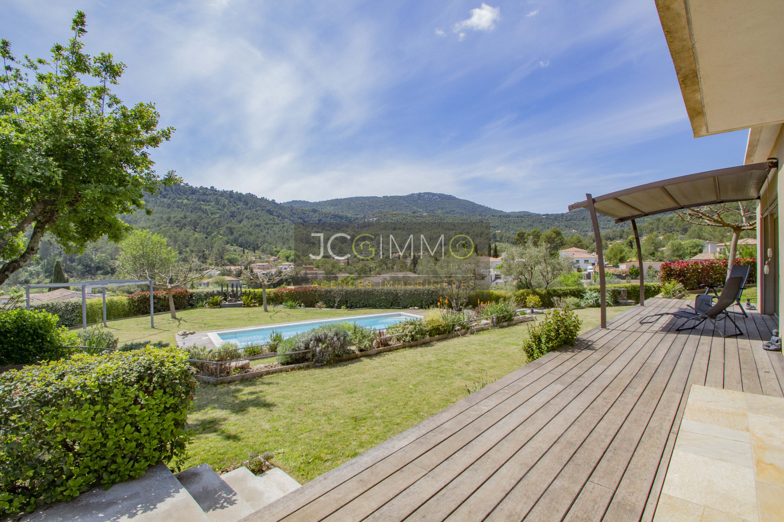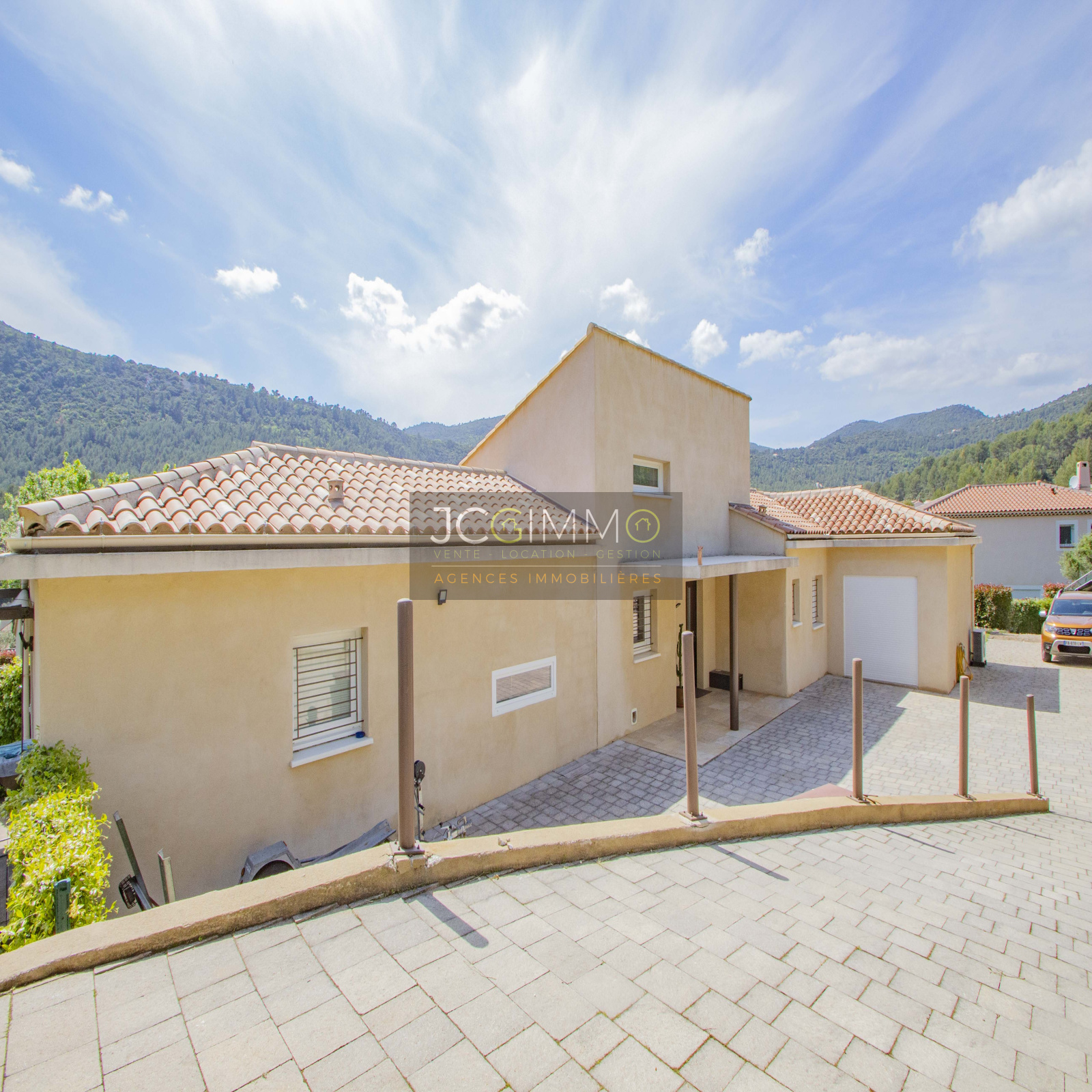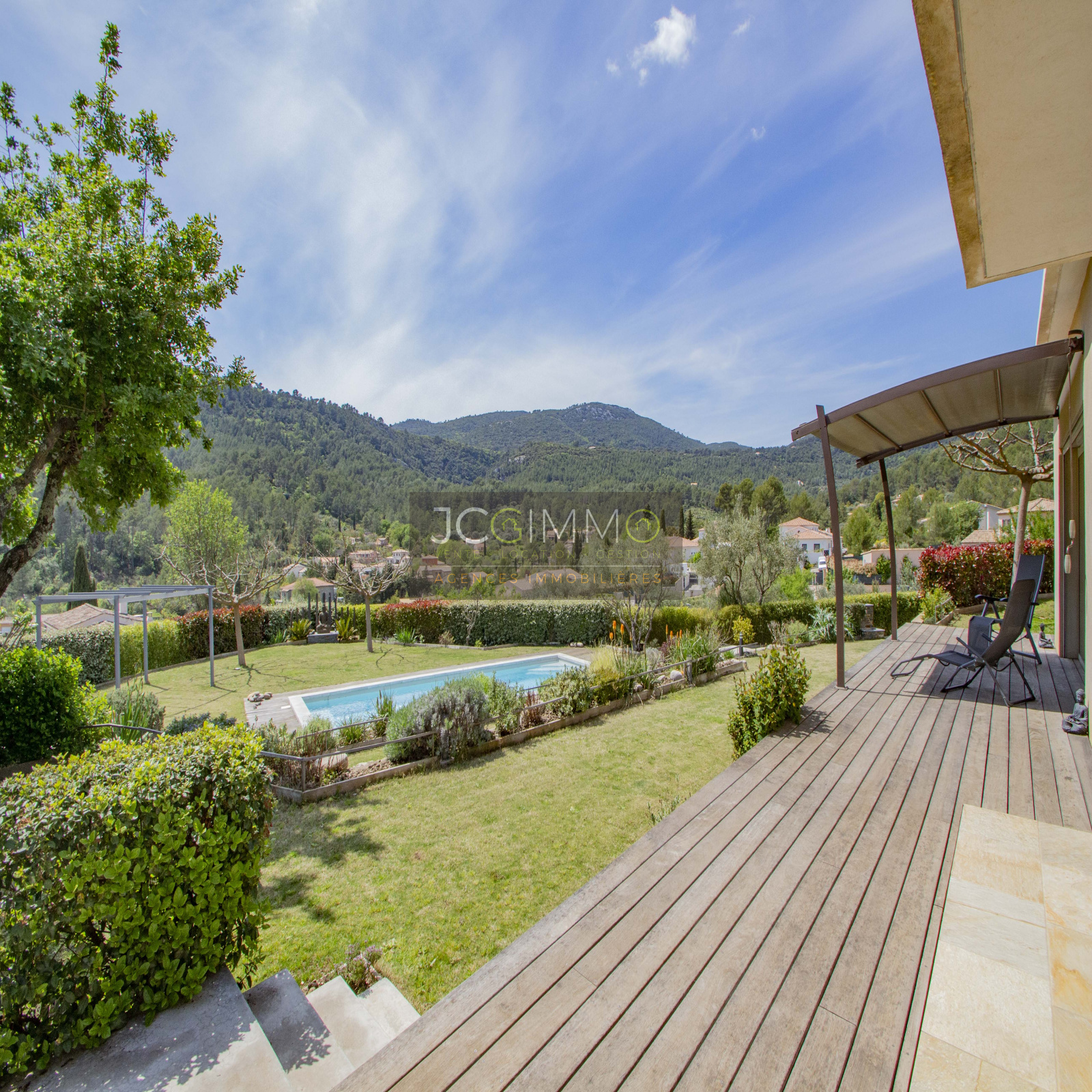 DEJA VENDU SOLLIES TOUCAS (secteur résidentiel VALAURY-SAINT LOUIS). AU GRAND CALME, exceptionnelle villa d'architecte T5 construite en 2013 de 145m² (3 chambres Bureau) Garage 18m² env, aux formes modernes avec 2 suites parentales de PLAIN PIED et une vue dominante EPOUSTOUFLANTE et IMPRENABLE sur la vallée.