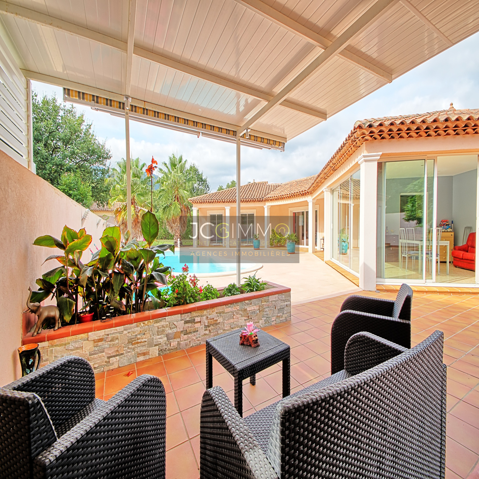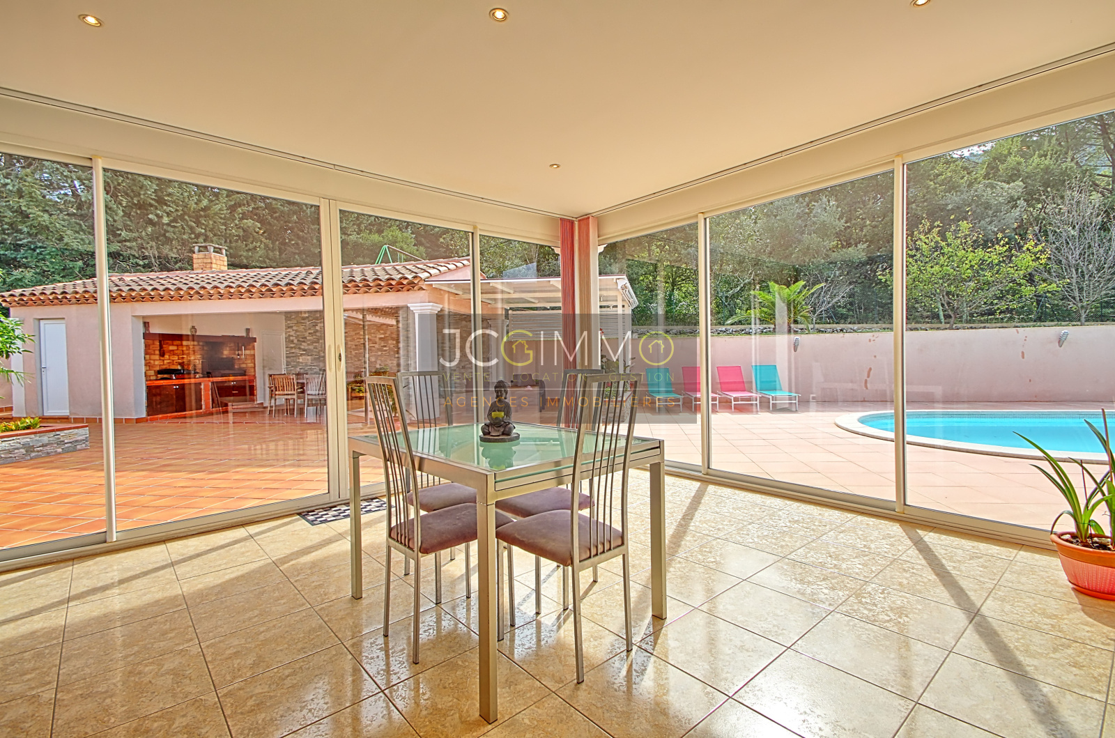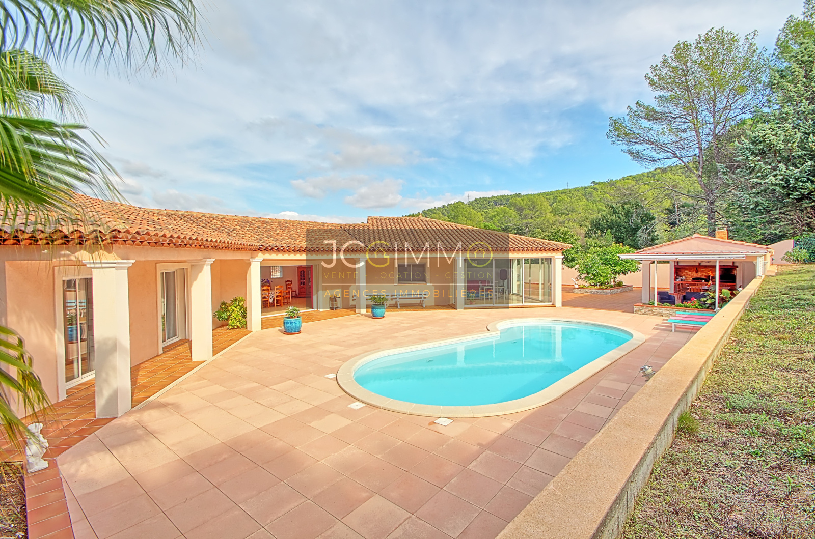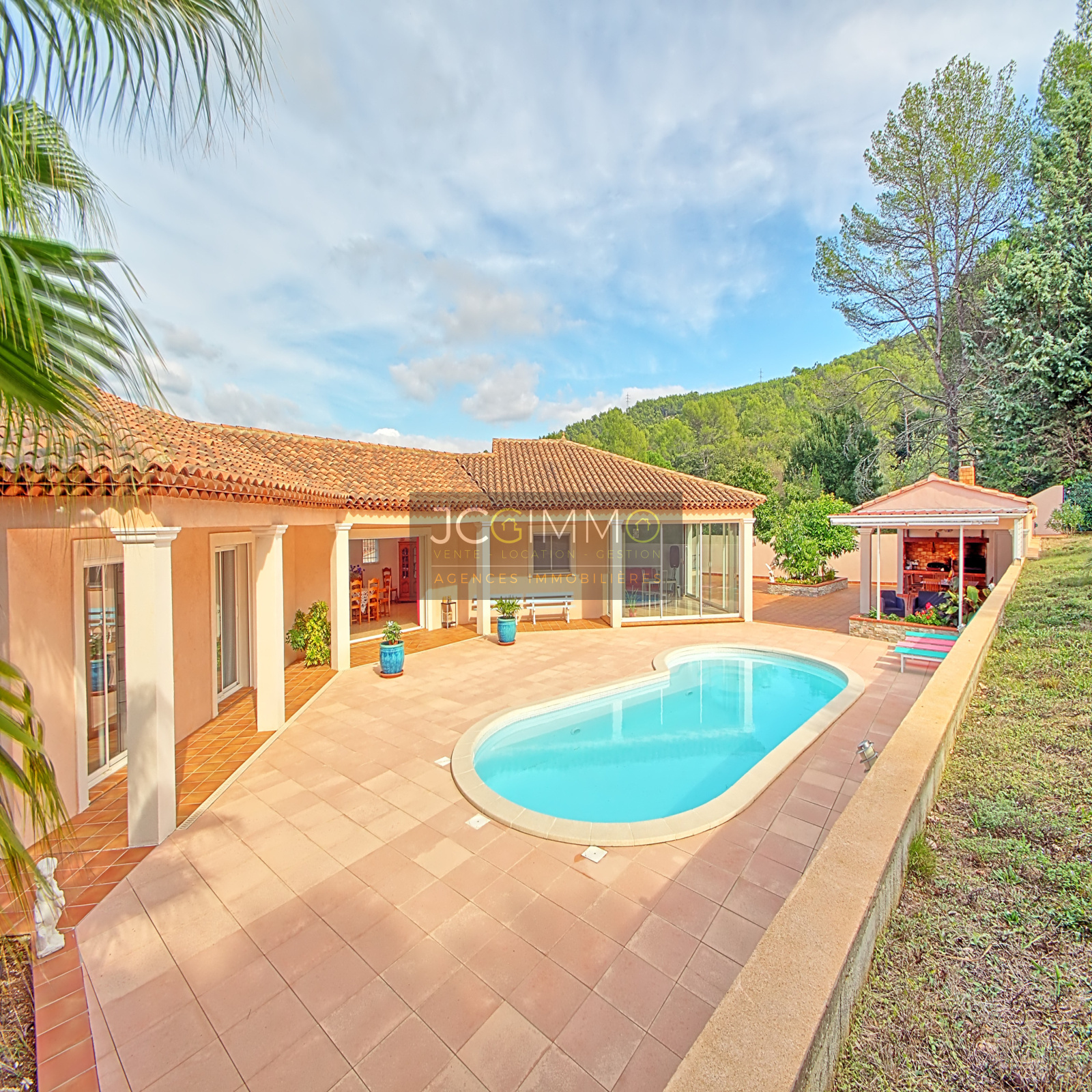 SOLLIES TOUCAS. Superbe Villa de PLAIN PIED (2003) de 212 m² env. sur un terrain clos, arboré et très bien entretenu, de 2100 m² env. AU CALME ABSOLU avec Piscine, Pool house, Salon/Cuisine d’été extérieur et Grand Garage. La villa comprend 1 grand Salon/Séjour de 72 m² env., Cuisine aménagée et équipée, Grande véranda intégrée, 4 grandes chambres, Dressings, Salle de bains et douches, 3 WC, buanderie/chaufferie, Atelier. Immenses Terrasses. Grand Parking intérieur. Equipement de Qualité, Baie à galandage, Chauffage au sol, Climatisation, Domotique ... Assainissement par Fosse Septique, Eau par Forage avec Station de Potabilisation complète. PAS de VIS A VIS. Construction & Prestations IRREPROCHABLES. Finitions Intérieures & Exterieures PARFAITES ... TRES RARE !. A voir !!!