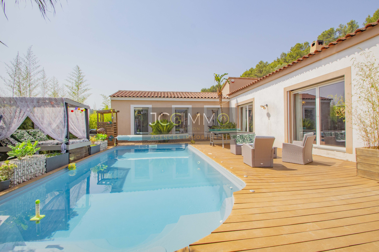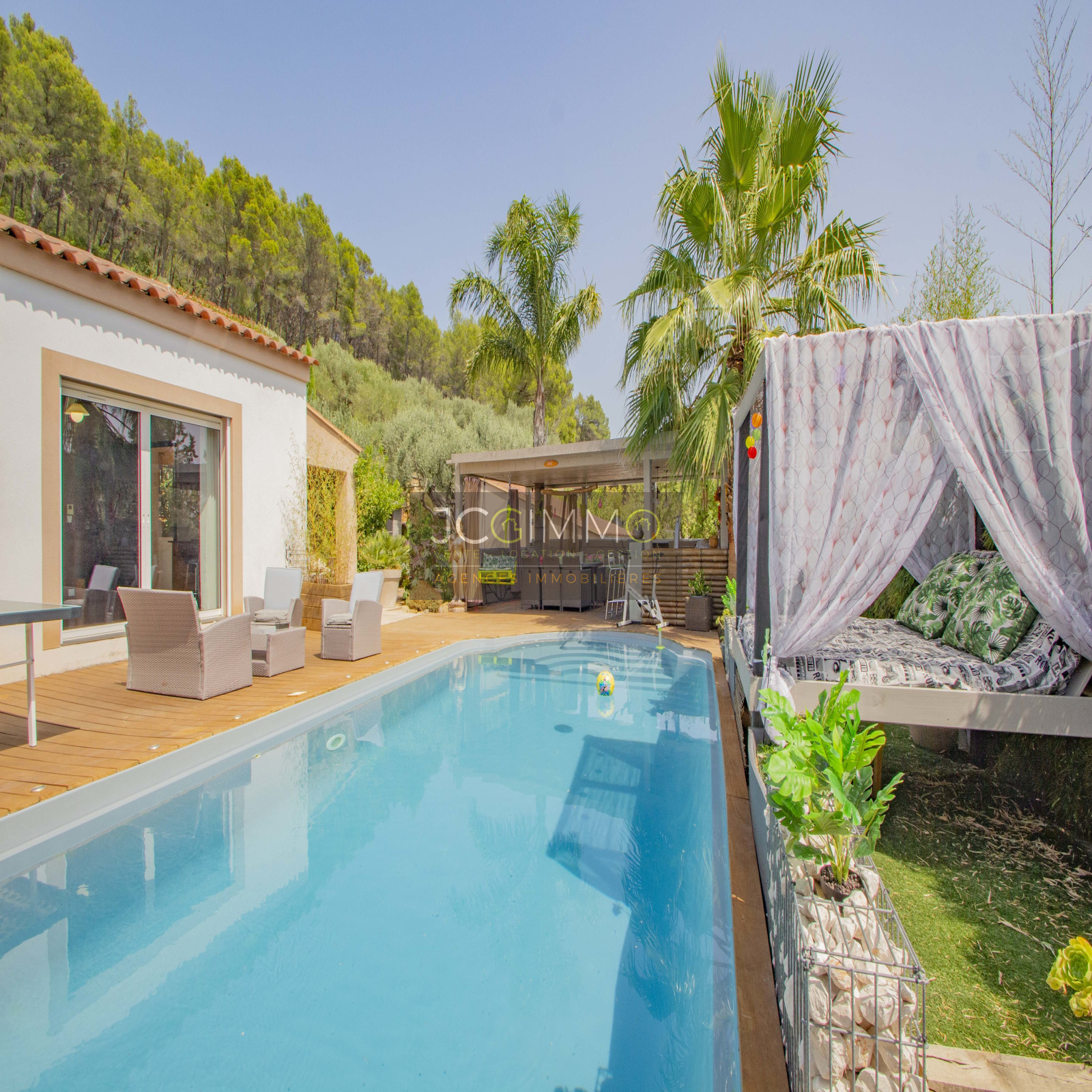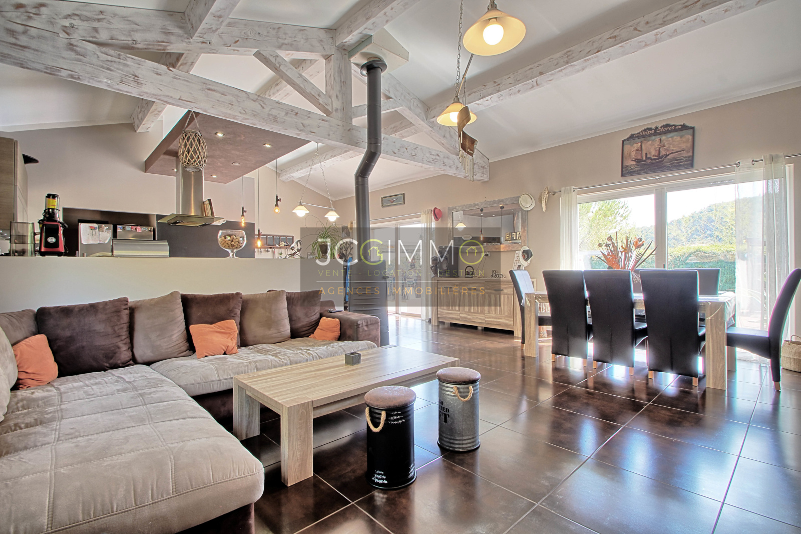 VENDUE avec JCG IMMOBILIER! Située dans un quartier très recherché de Sollies-Toucas, nous vous présentons cette magnifique Villa de plain pied d'une surface habitable d'environ 124 m2, construite en 2011 sur un beau terrain de 1200 m2 agrémenté d'une piscine traditionnelle de 9 x 4 m2 et vous proposant de jolis espaces extérieurs au calme absolu, une véritable invitation à la détente et aux voyages ! La maison se compose d'une pièce de vie de plus de 63 m2 comprenant le séjour avec poele à bois, salle à manger et cuisine ouverte entièrement équipée, d'un wc, d'un bureau, de 3 chambres avec chacune un accès donnant sur la terrasse et la piscine, d'une grande salle de bains avec douche à l'Italienne. A l'extérieur, vous profiterez de cette immense terrasse bordant la piscine ainsi que de la Cuisine Bar d'été, d'un garage avec mezzanine, d'un grand parking intérieur et vous bénéficierez d'un grand stationnement abrité extérieur. Prestations de qualités à l'intérieur comme à l'extérieur, cadre exceptionnel , UN VERITABLE COUP DE COEUR !