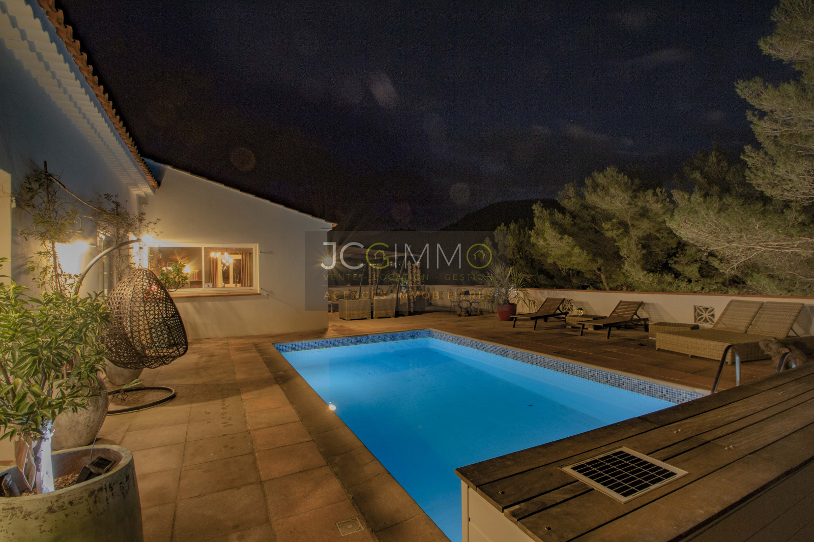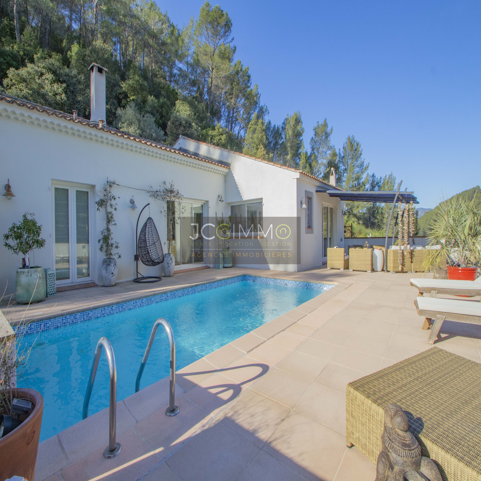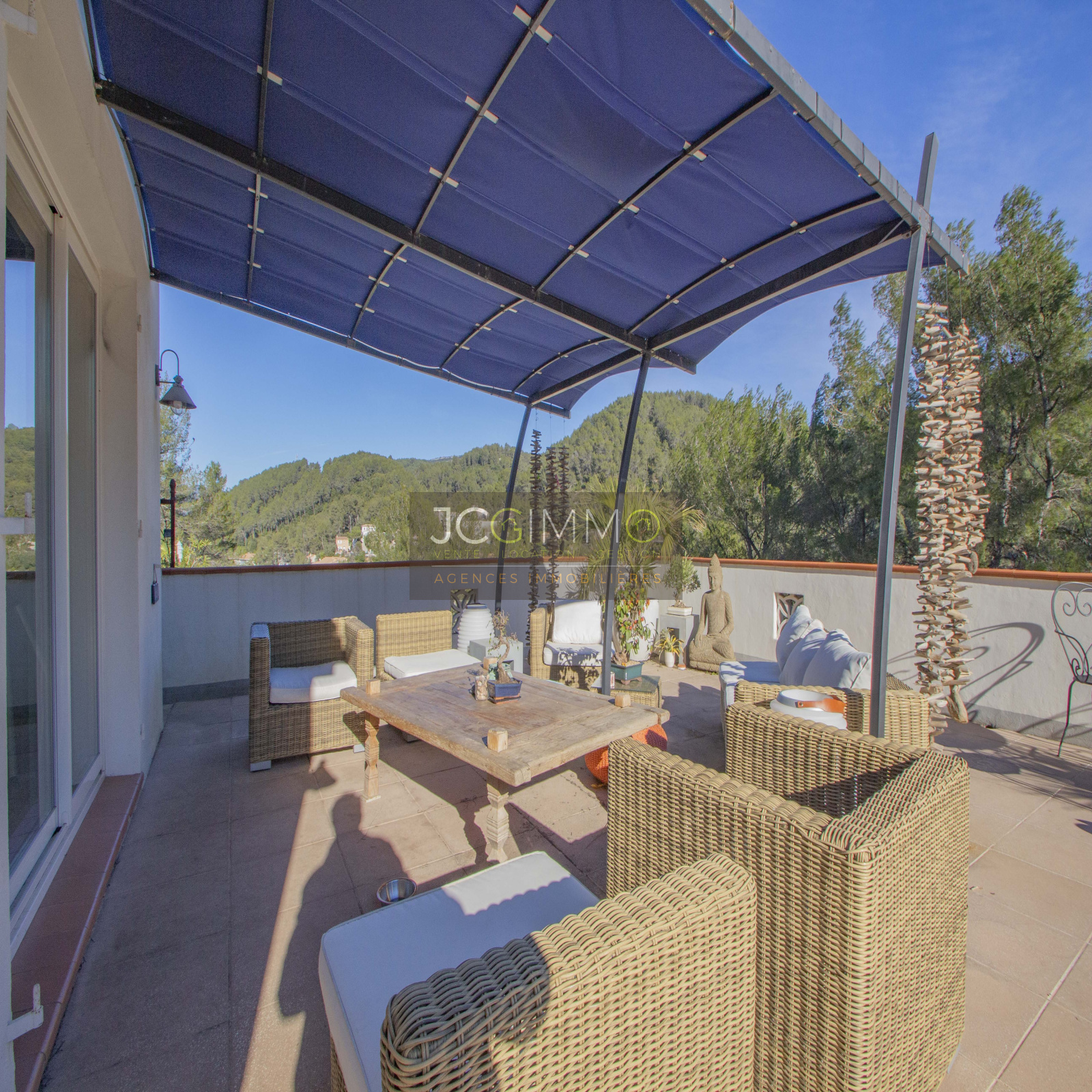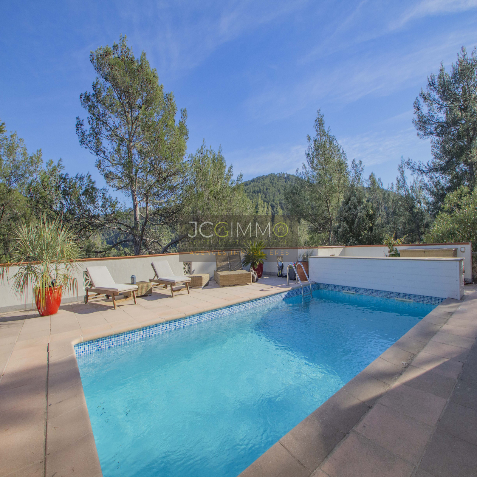 SOLLIES TOUCAS (Secteur résidentiel à 2min du village) JCG IMMO vous propose, EN EXCLUSIVITE ET NULLE PART AILLEURS, cette grande Villa individuelle de 206 m² habitables ( garage) construite en 1992 dans un cadre semi campagne, perchée sur les hauteurs, très facile d'accès avec une EXCEPTIONNELLE VUE PANORAMIQUE sur la vallée (TRES RARE). Le tout sur une parcelle clôturée de 2600 m² en restanques très bien entretenues et aménagées d'un potager et d'espaces de jeux pour enfants petits et grands. AUCUN VIS A VIS et pas de promiscuité !