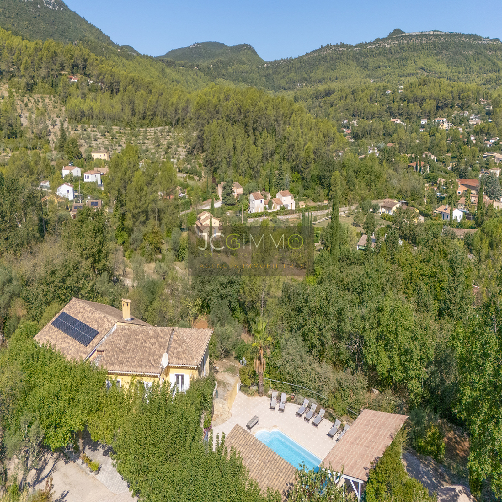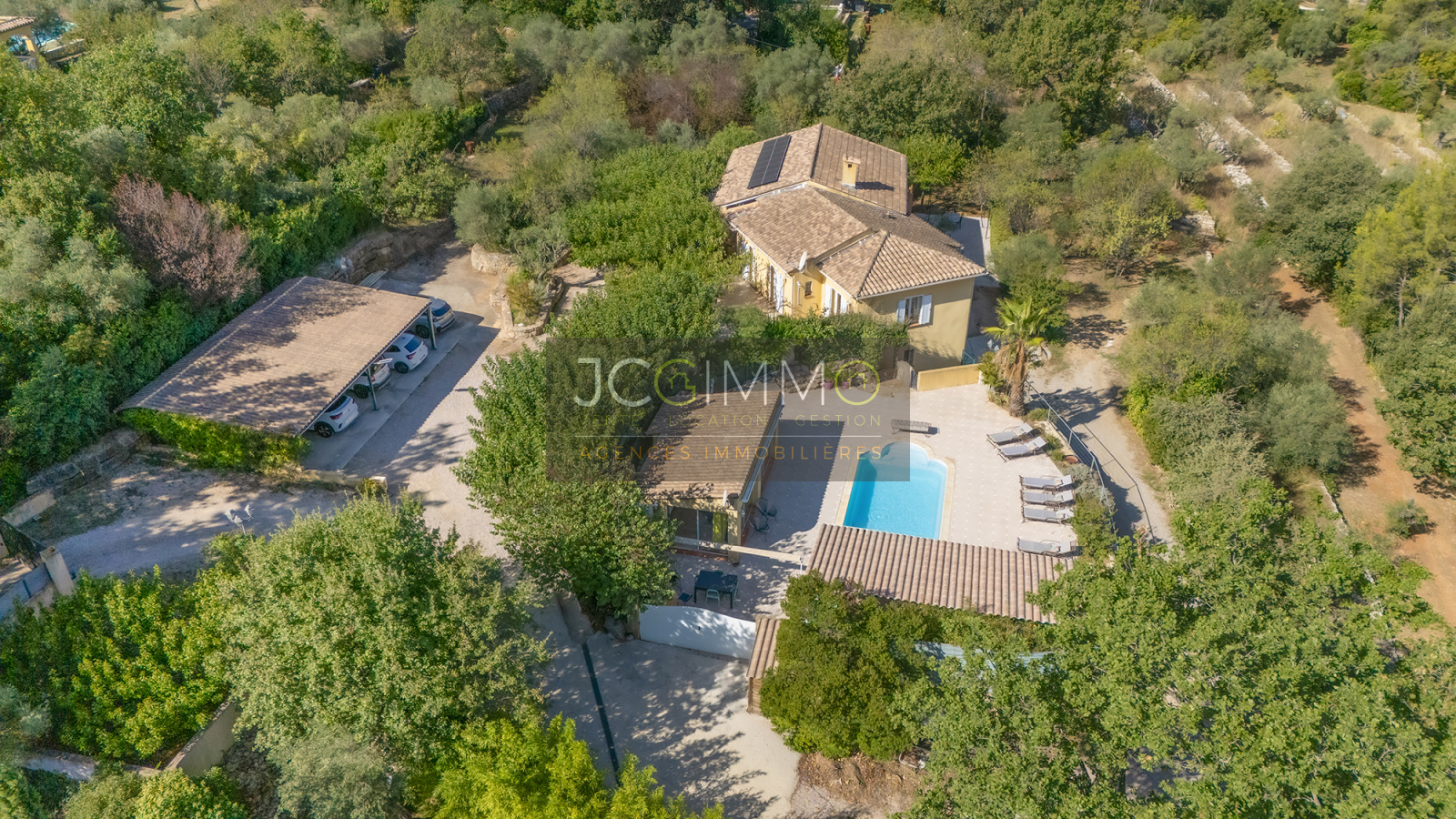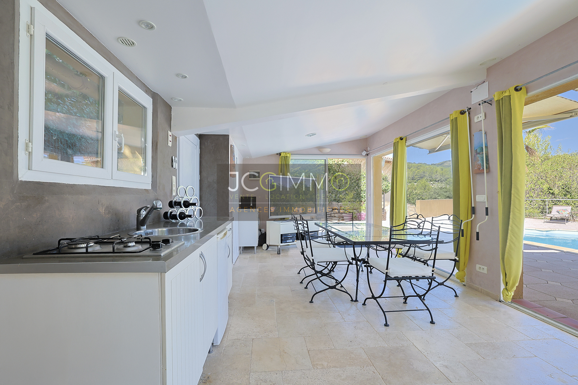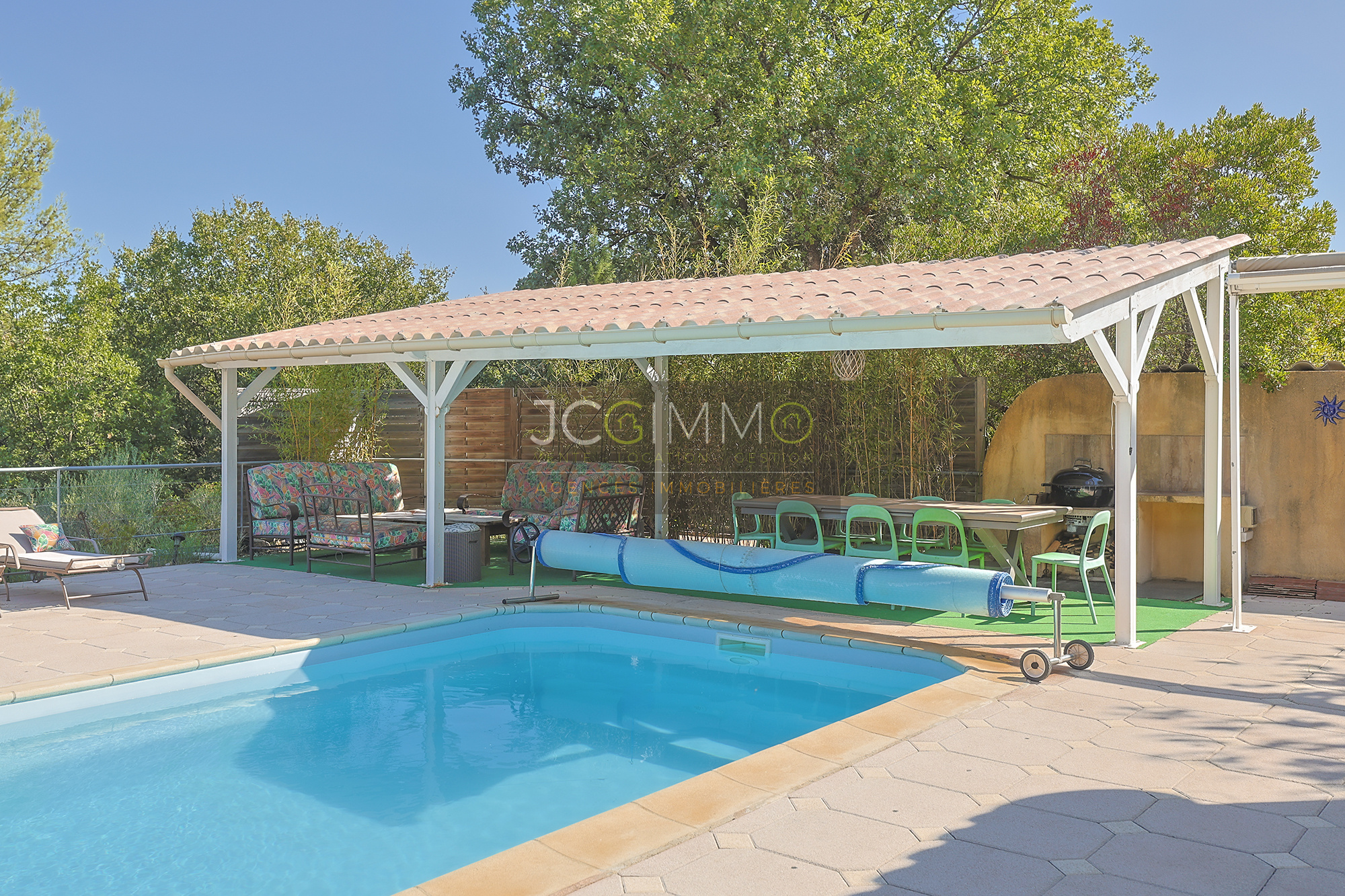 La villa bénéficie également d'un espace piscine (coque 9mx4m) entièrement clôturé et sécurisé avec son poolhouse (superbe cuisine d'été) de 25 m², ainsi qu'une plage entourant la piscine et une pergola (36 m²) pour une détente ombragée avec une vue profonde et lointaine sur toute la vallée !