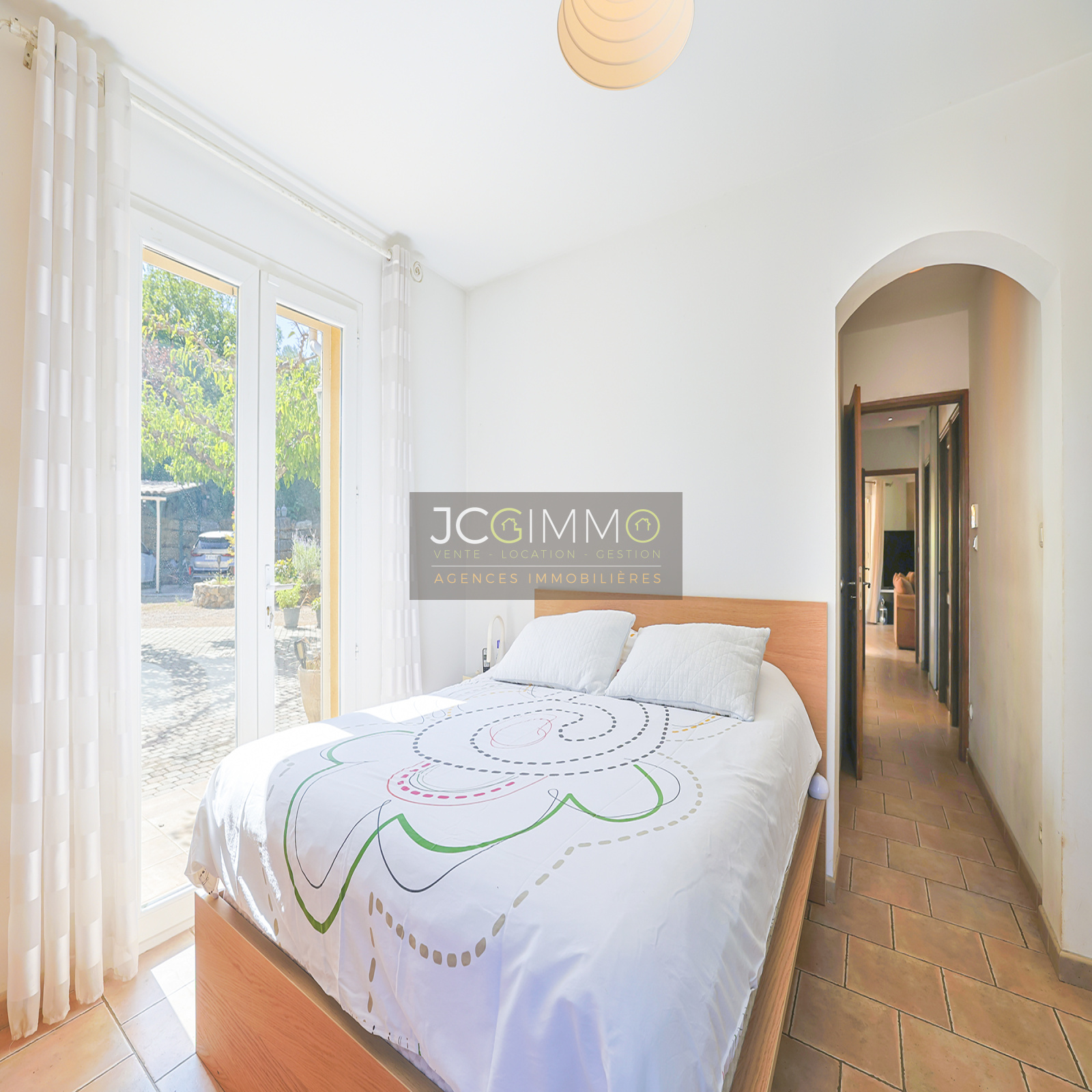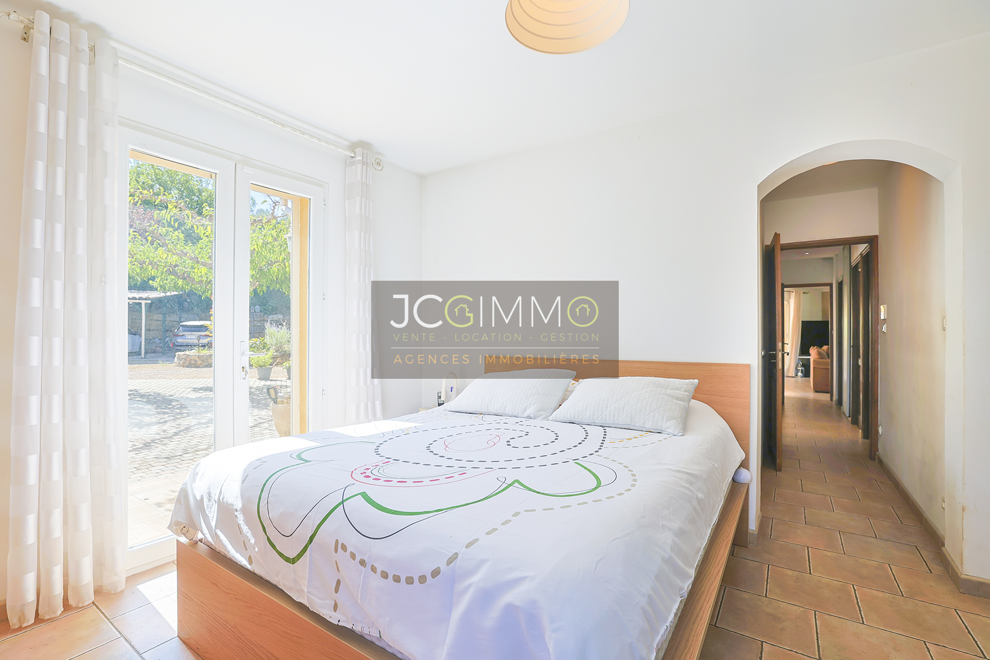 Entrée / Salon / Séjour (56m²) + Cuisine (13m²) avec accès à une belle terrasse couverte, WC indépendant, Salle de bains, 2 chambres de 12 m² + 1 SUITE PARENTALE de 21 m² avec salle d'eau avec WC intégré. A l'extérieur, la terrasse couverte est agréablement bordée de jolis mûriers platanes bien entretenus pour une ombre très appréciée.