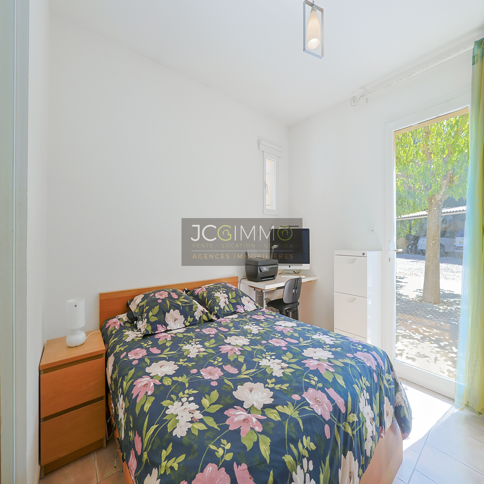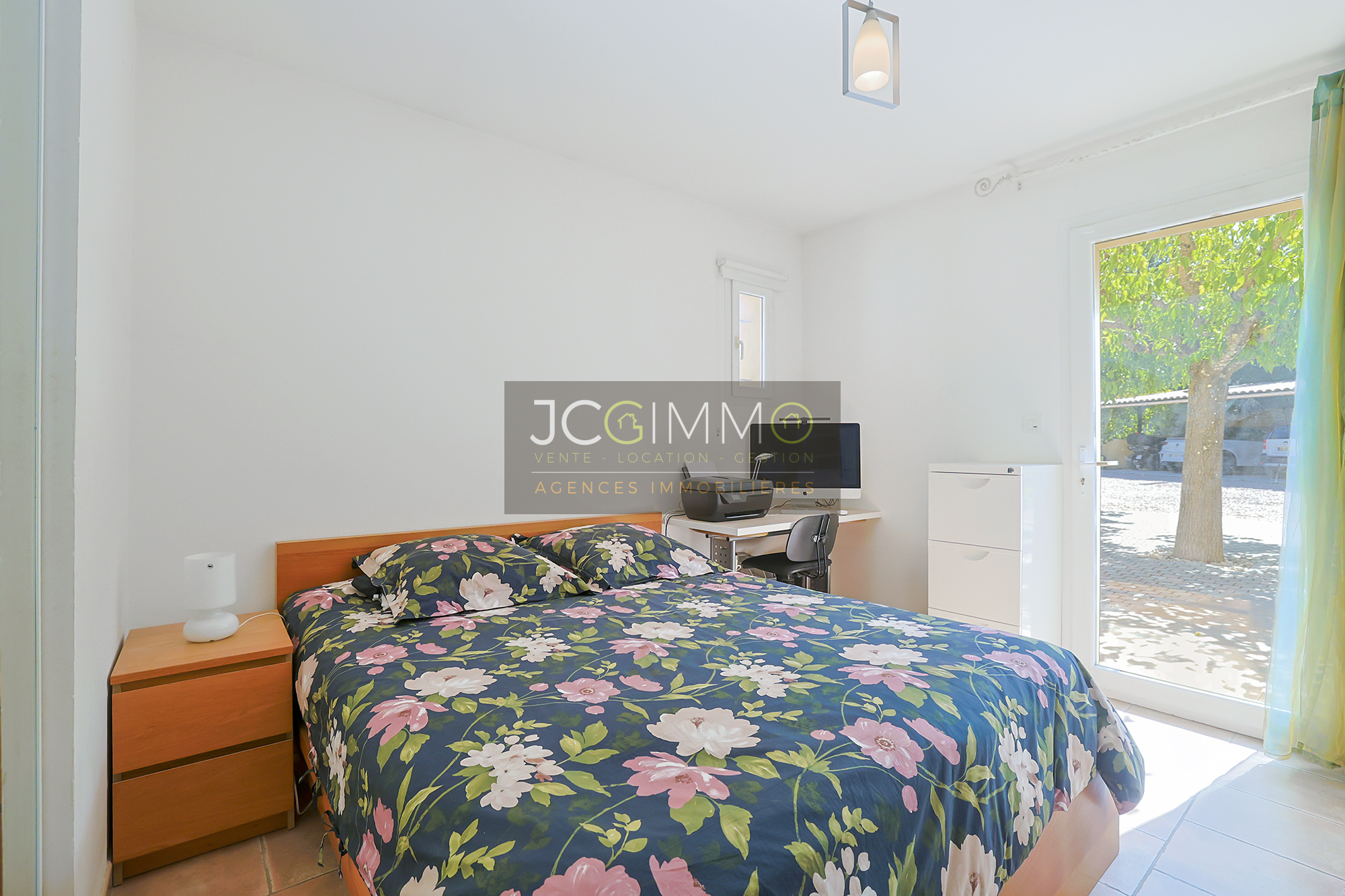 Entrée / Salon / Séjour (56m²) + Cuisine (13m²) avec accès à une belle terrasse couverte, WC indépendant, Salle de bains, 2 chambres de 12 m² + 1 SUITE PARENTALE de 21 m² avec salle d'eau avec WC intégré. A l'extérieur, la terrasse couverte est agréablement bordée de jolis mûriers platanes bien entretenus pour une ombre très appréciée.
