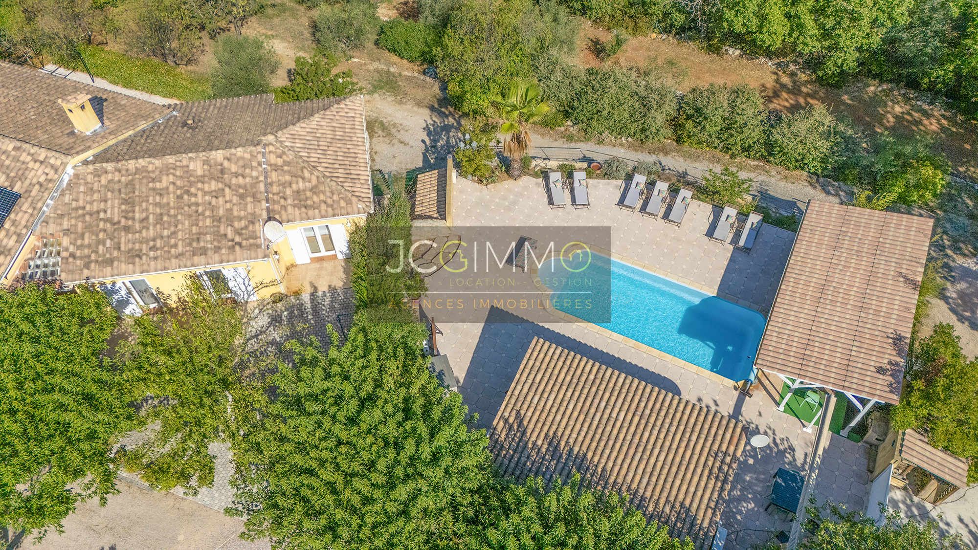 La villa bénéficie également d'un espace piscine (coque 9mx4m) entièrement clôturé et sécurisé avec son poolhouse (superbe cuisine d'été) de 25 m², ainsi qu'une plage entourant la piscine et une pergola (36 m²) pour une détente ombragée avec une vue profonde et lointaine sur toute la vallée !