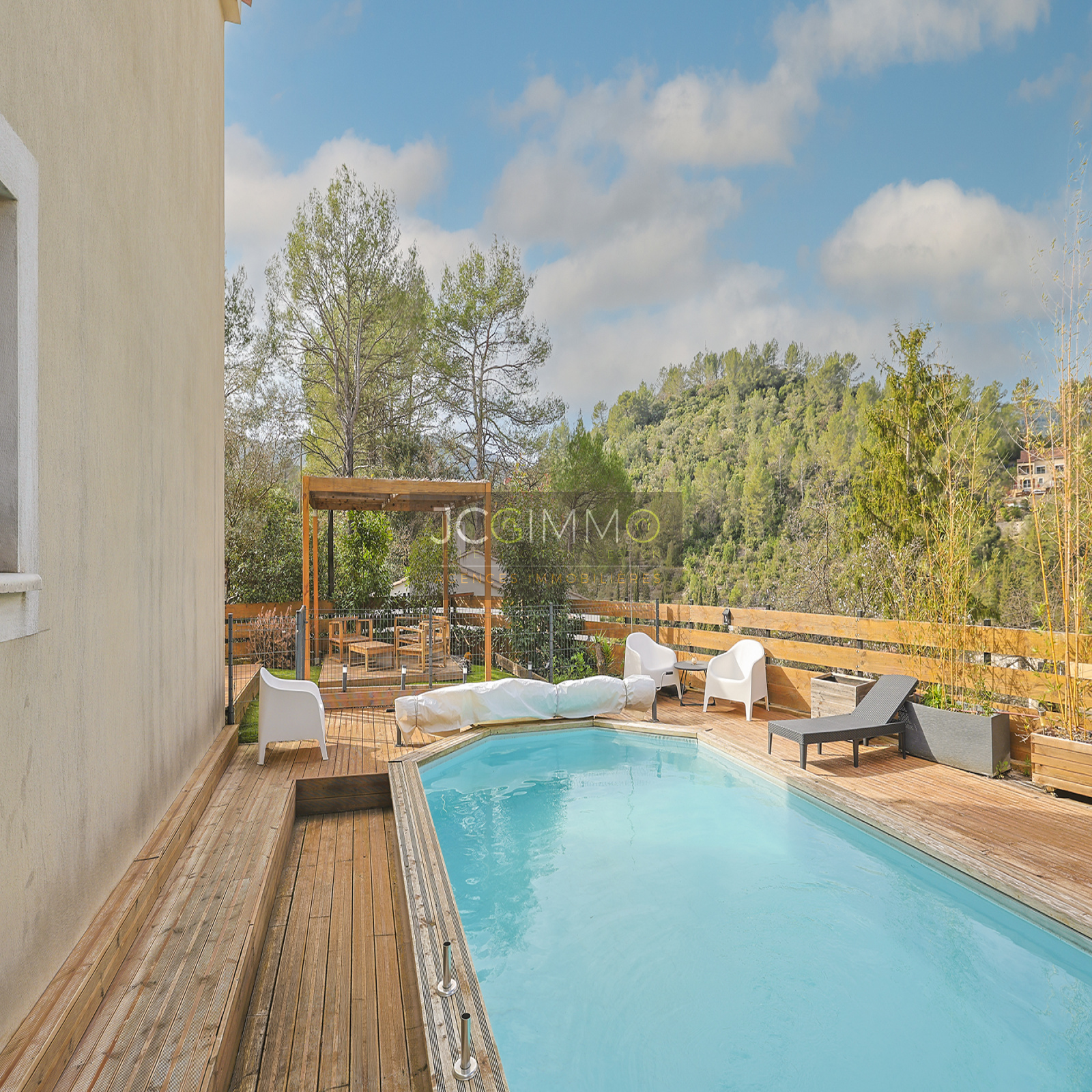 - Un espace piscine (6x3m) avec ses larges plages en bois
