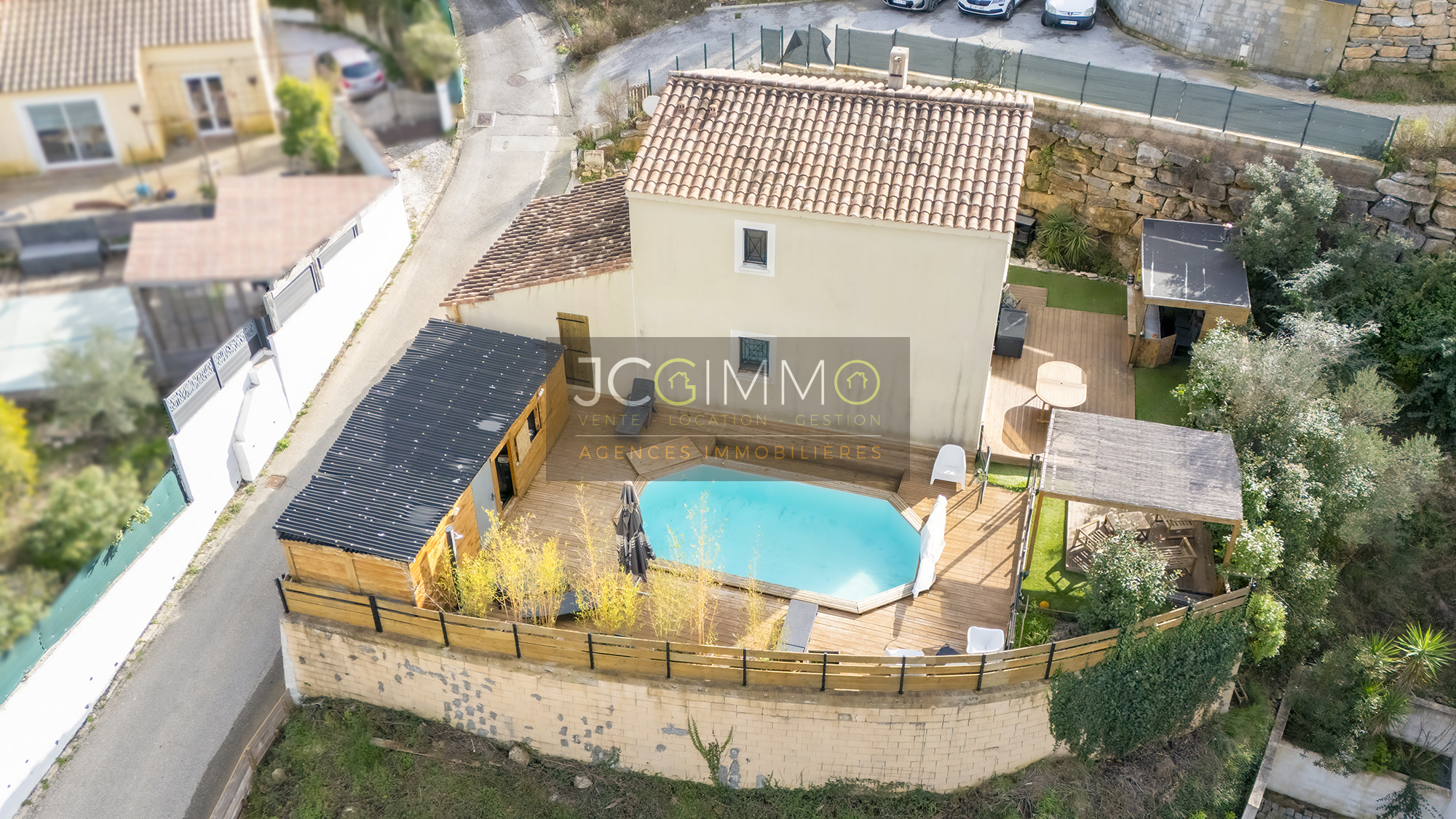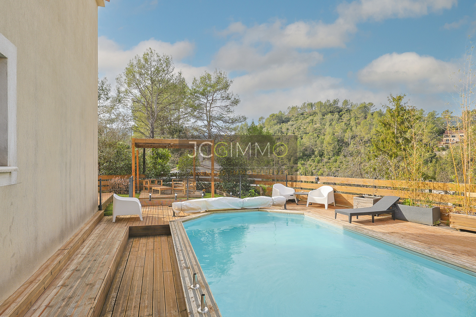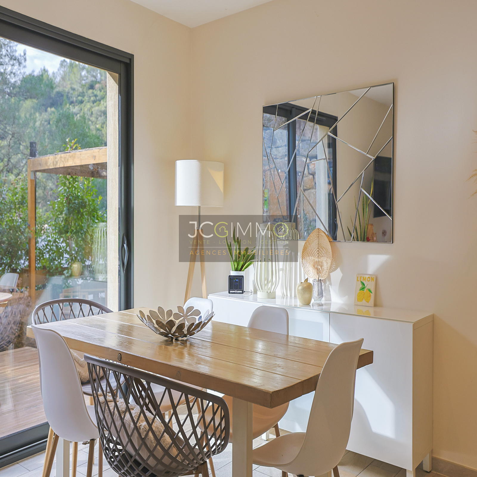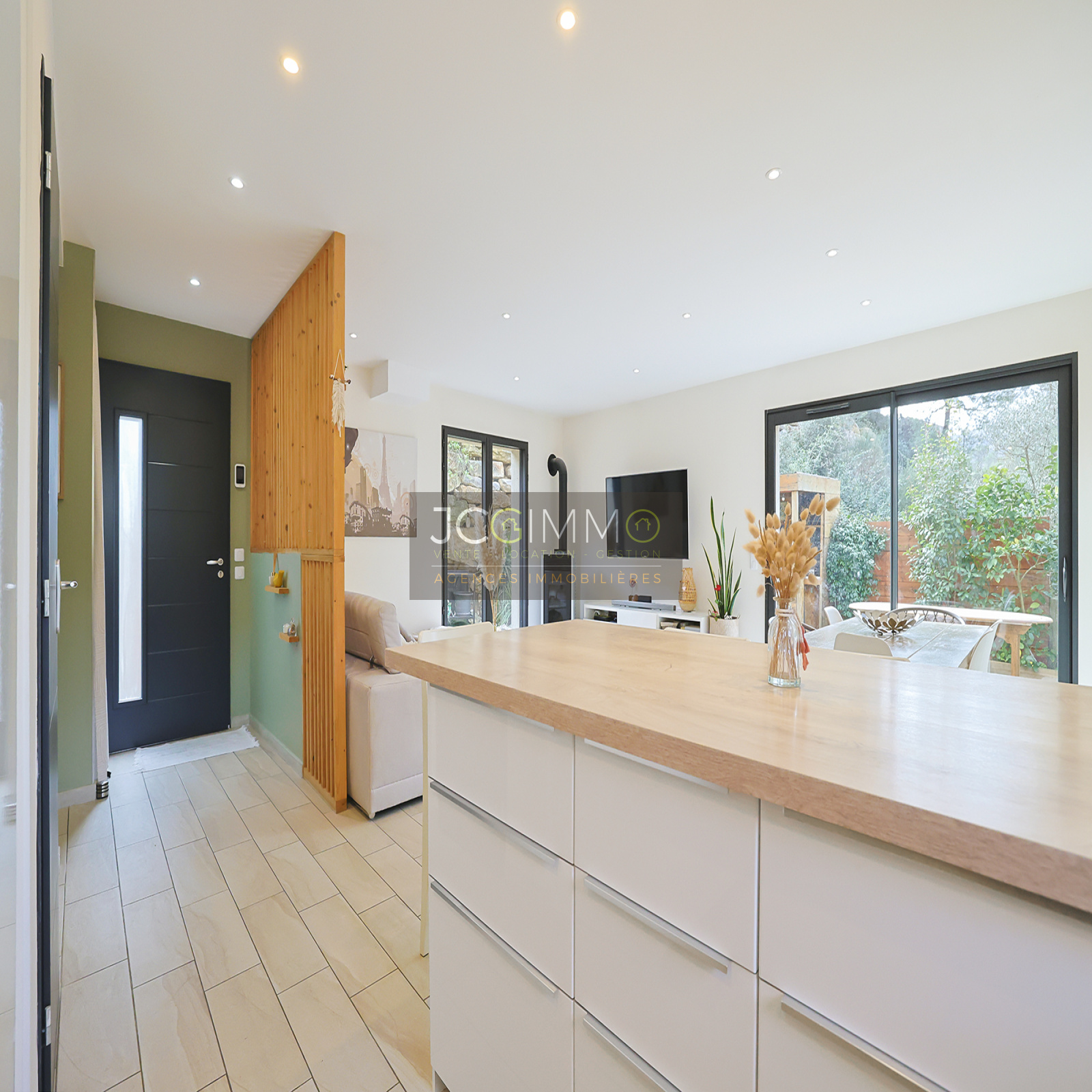 SOLLIES-TOUCAS (secteur Valaury), JCG IMMO vous présente en exclusivité cette villa individuelle de 92 m² habitables édifiée en 2017 sur les hauteurs, avec son grand garage communiquant au même niveau et ses différents espaces extérieurs détentes.