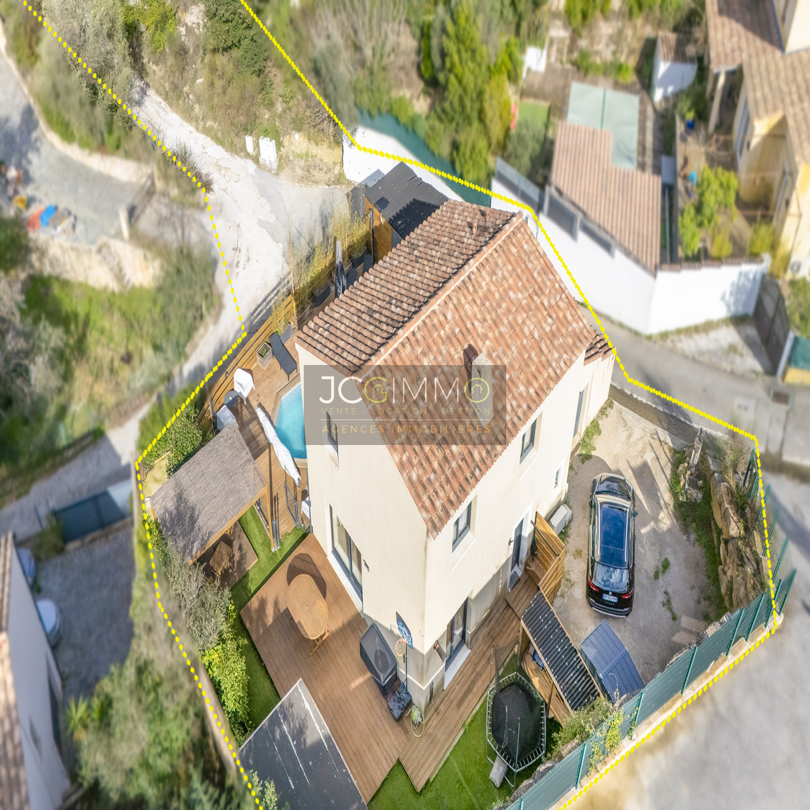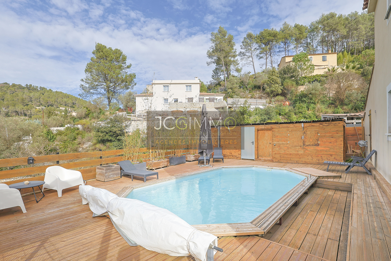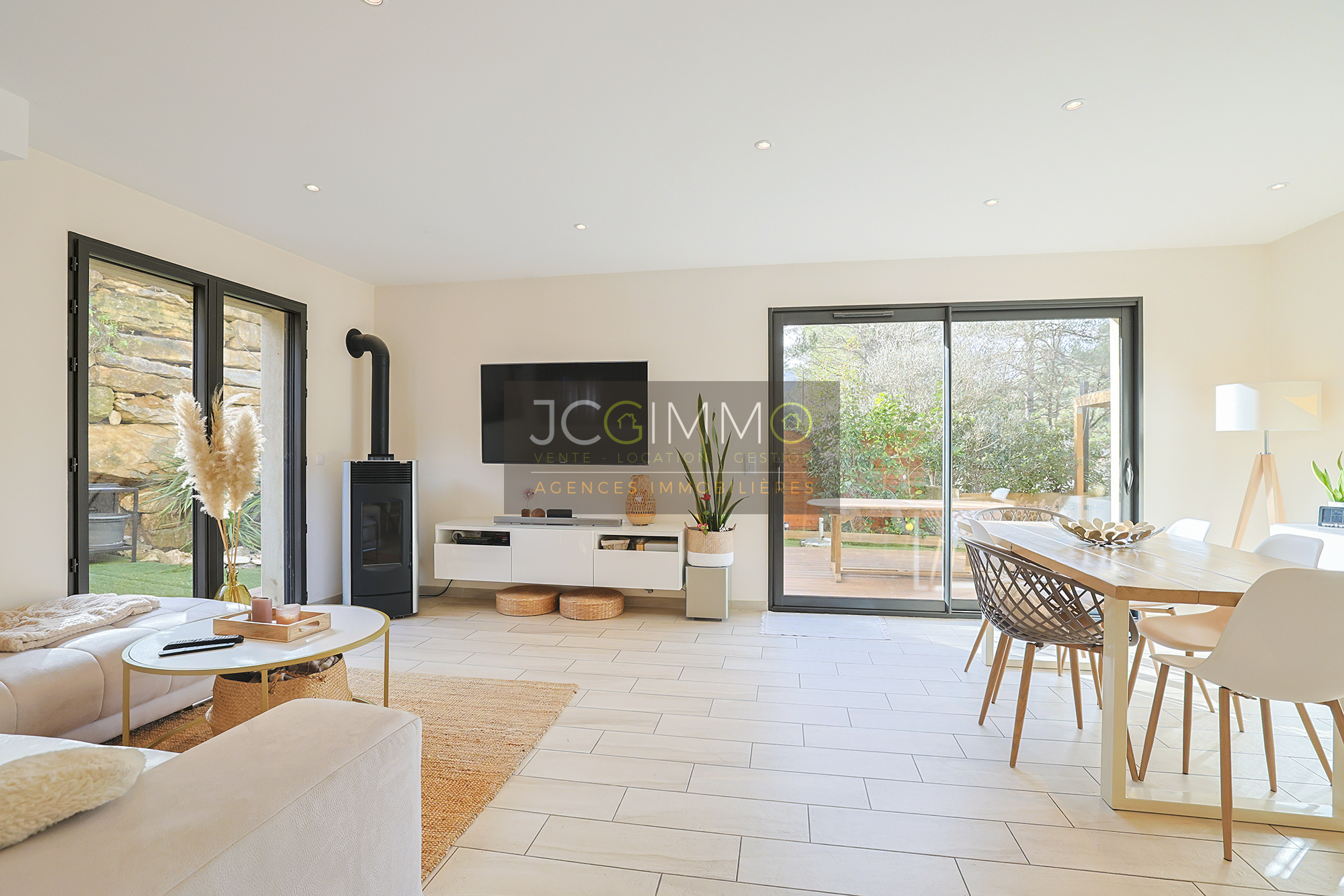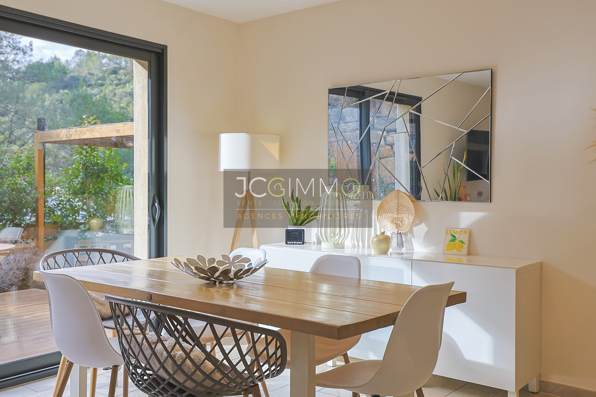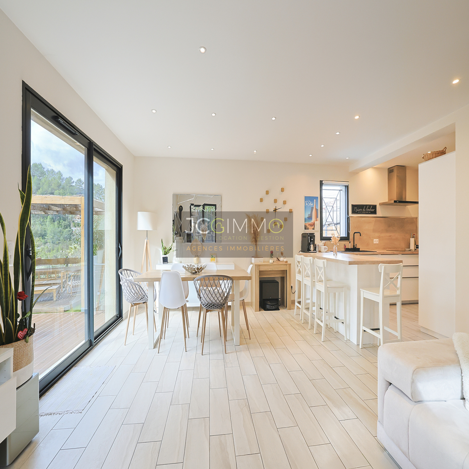 SOLLIES-TOUCAS (secteur Valaury), JCG IMMO vous présente en exclusivité cette villa individuelle de 92 m² habitables édifiée en 2017 sur les hauteurs, avec son grand garage communiquant au même niveau et ses différents espaces extérieurs détentes.