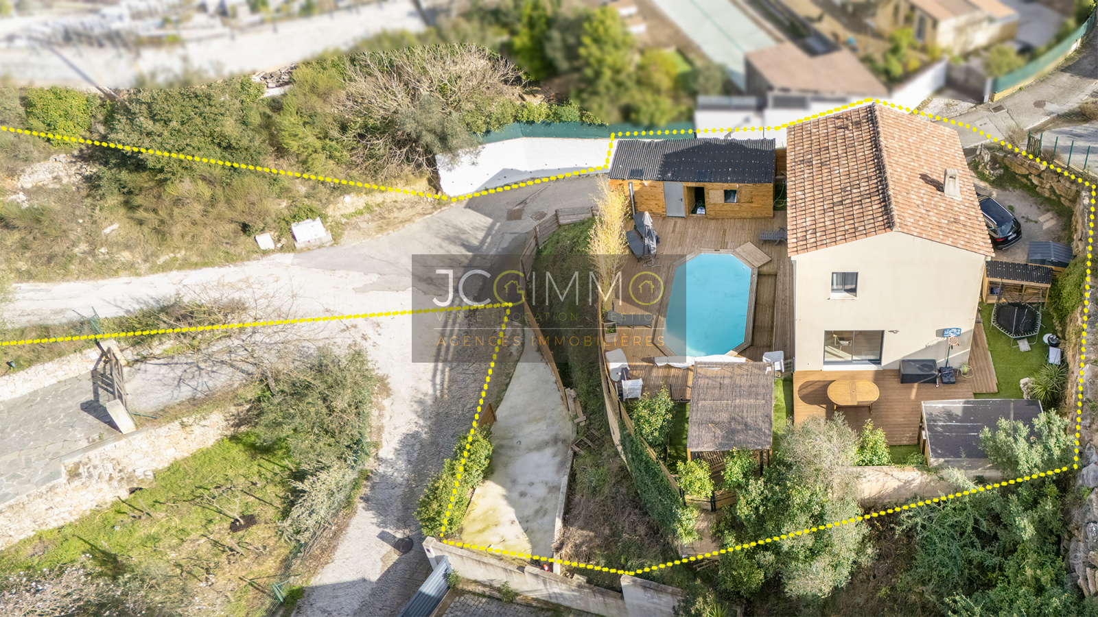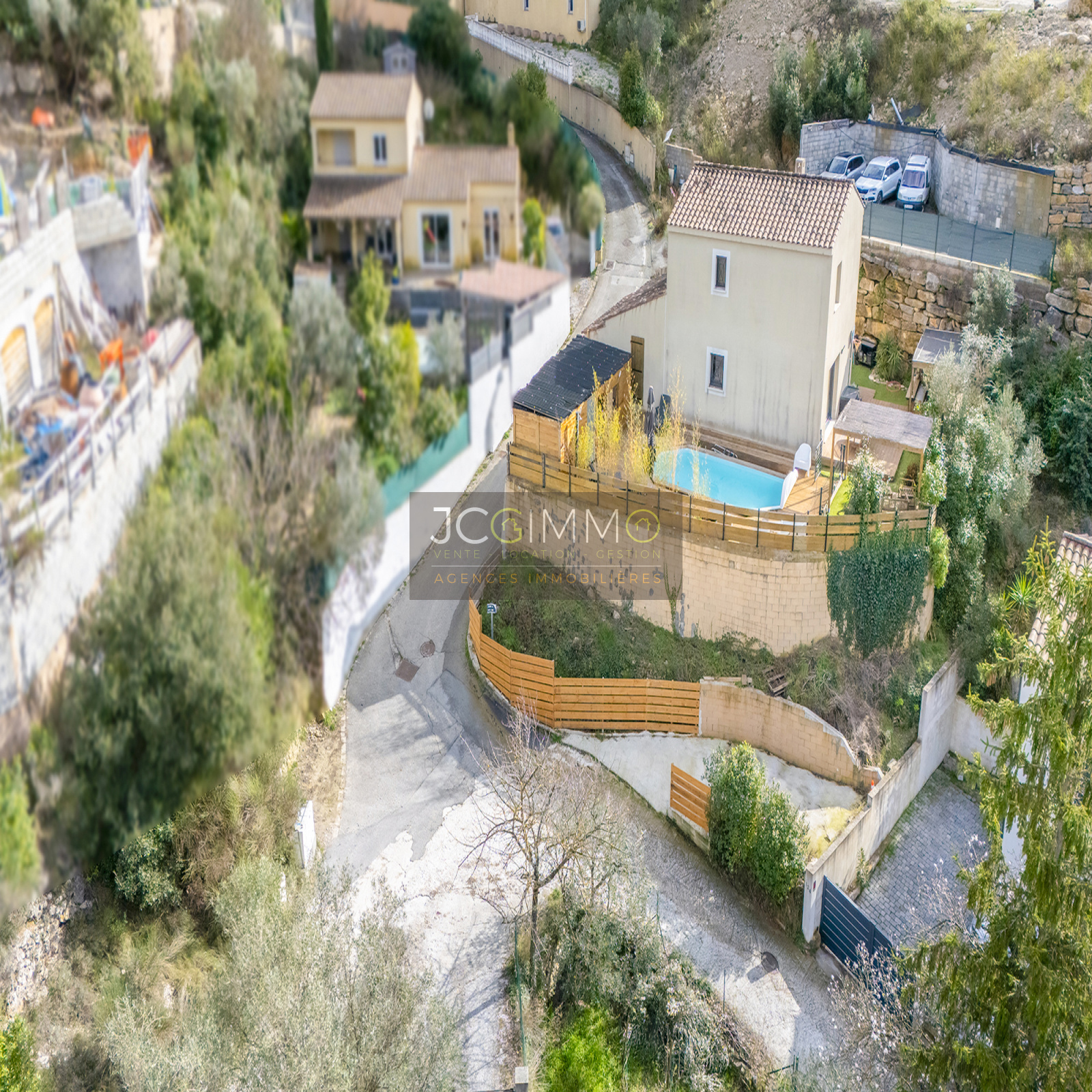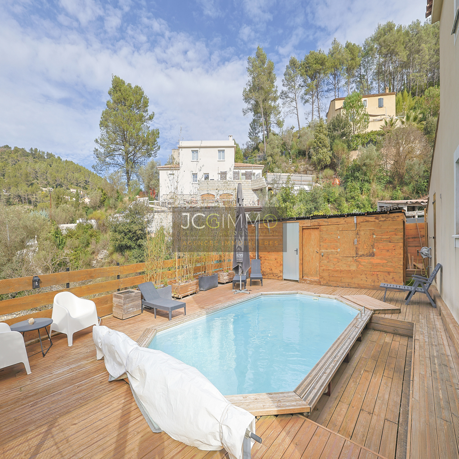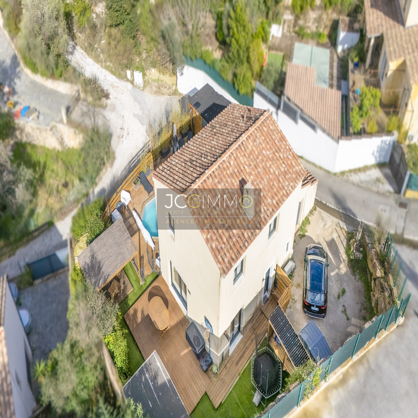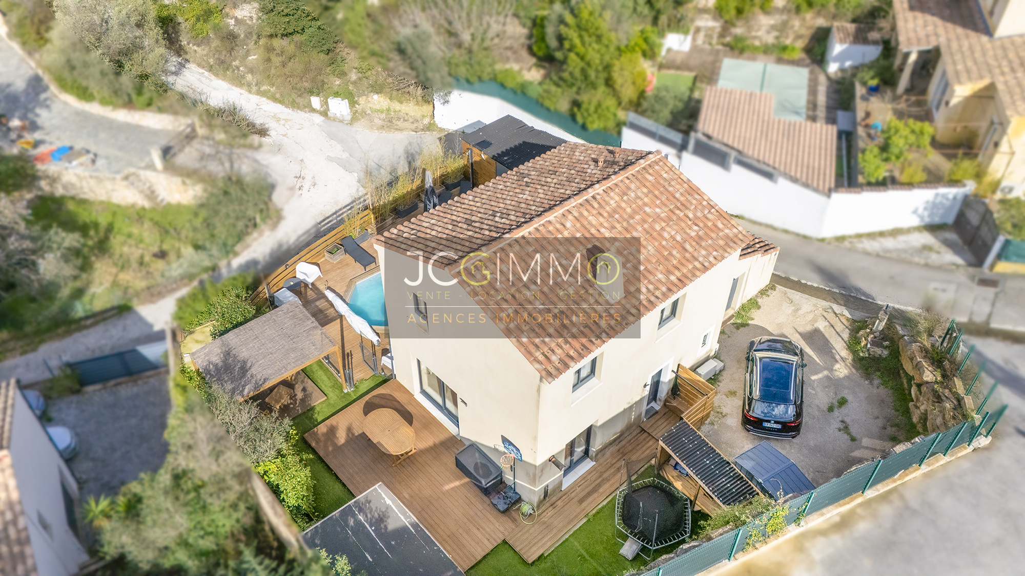 SOLLIES-TOUCAS (secteur Valaury), JCG IMMO vous présente en exclusivité cette villa individuelle de 92 m² habitables édifiée en 2017 sur les hauteurs, avec son grand garage communiquant au même niveau et ses différents espaces extérieurs détentes.