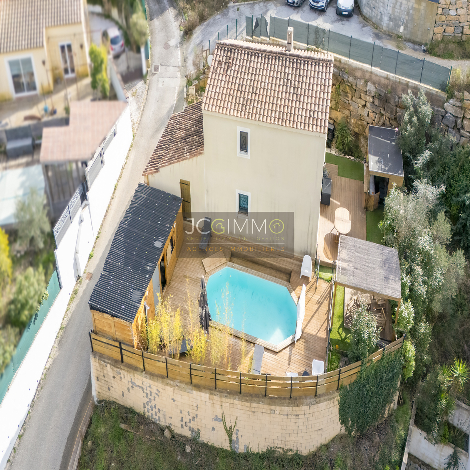 - Un espace piscine (6x3m) avec ses larges plages en bois