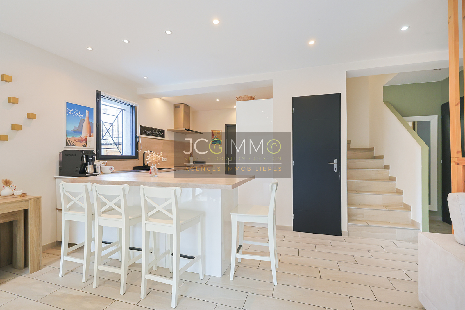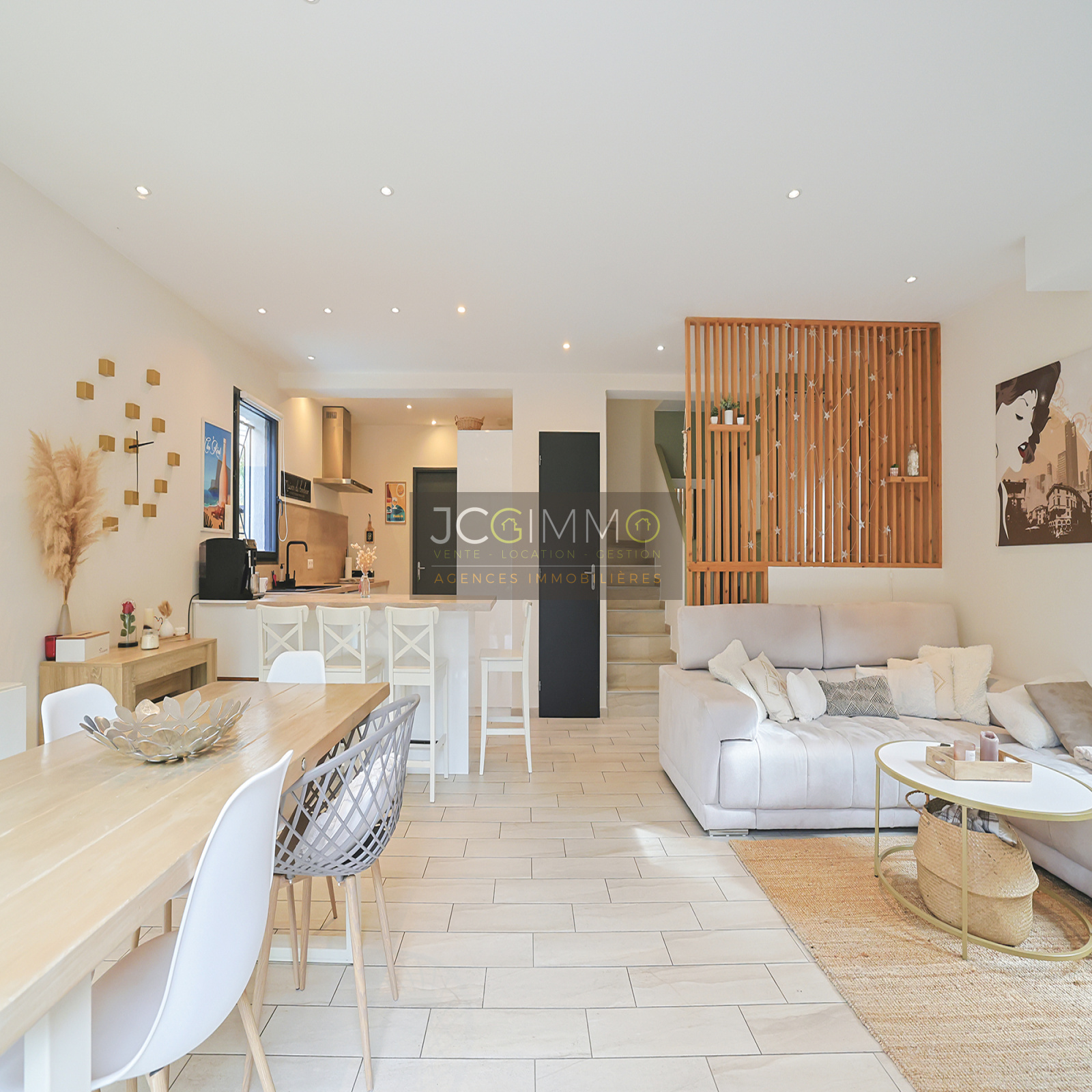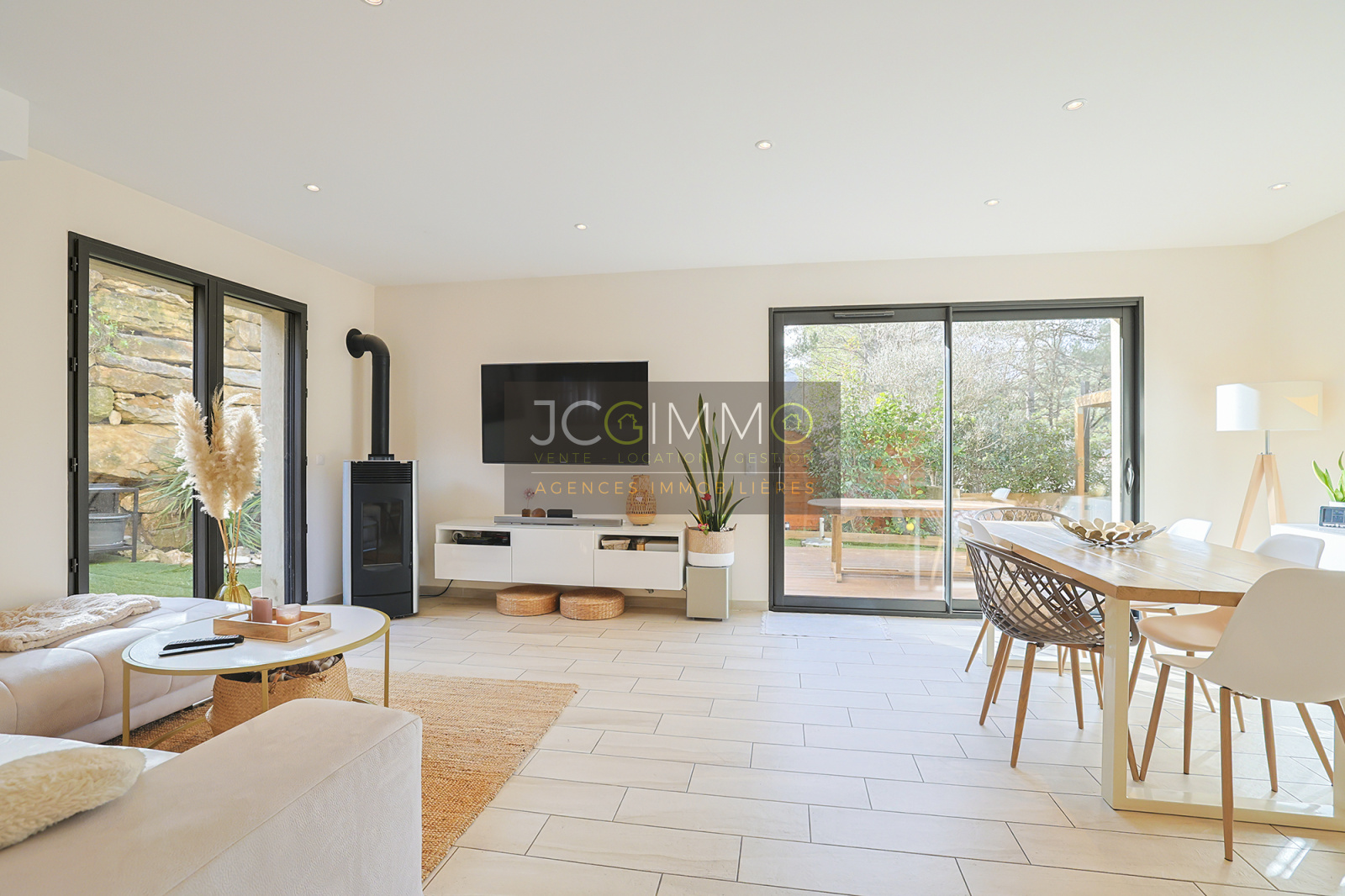 NOTRE AVIS : Nous avons été séduits par l’environnement calme et tranquille, les prestations soignées de cette maison récente et de ses équipements (Par exemple, la totalité du sol a un carrelage unifié, l’organisation de l’espace dans la pièce de vie aussi grâce à la gestion de la lumière) … sans oublier le stricte respect de la norme RT-2012 basse consommation.