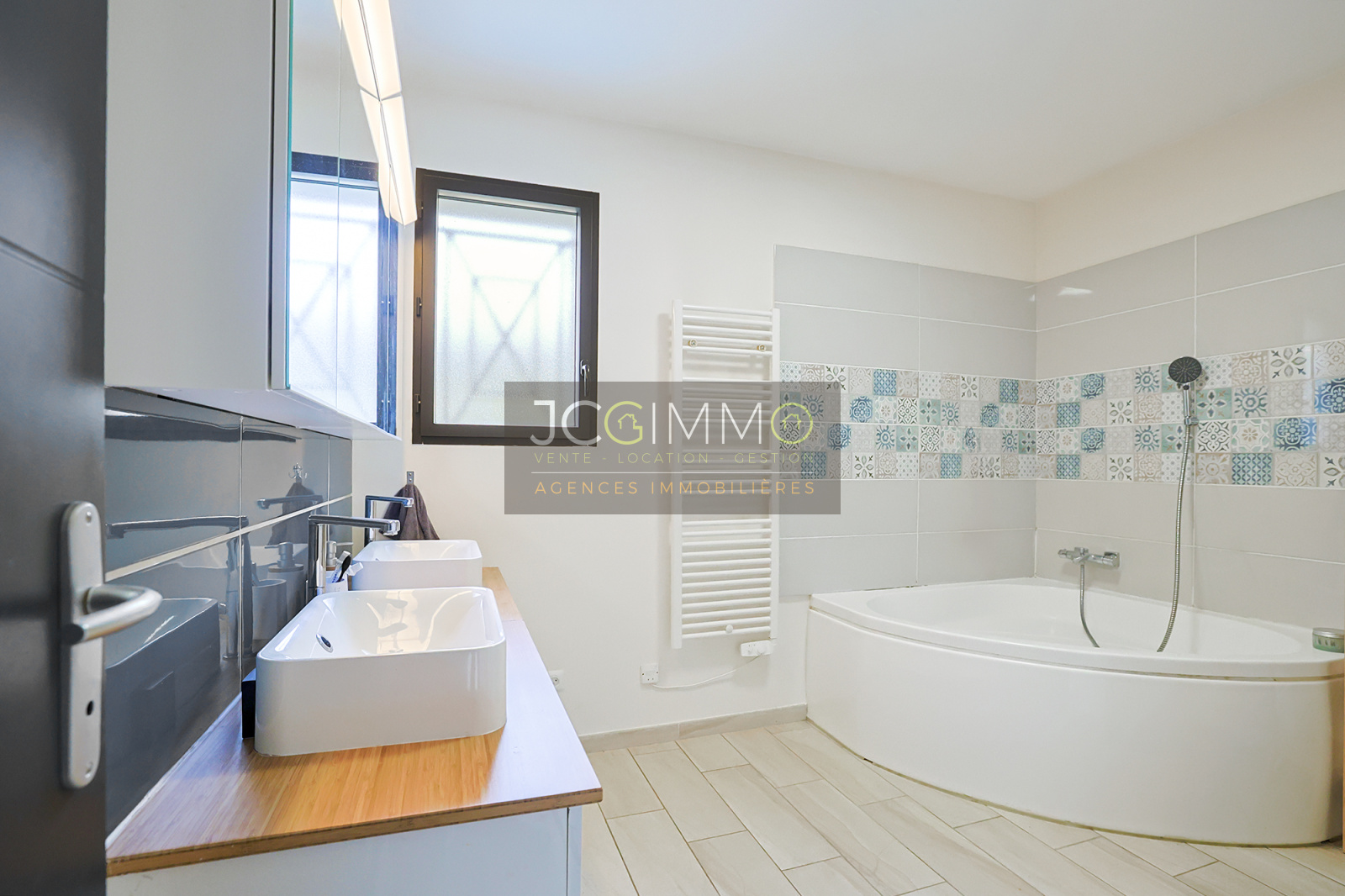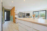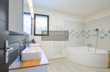 PRESTATIONS norme RT 2012 : Double vitrage intégral alu, Fenêtres et baies ALUMINIUM, Volets alu motorisés, Chauffage par Poêle à granules et climatisation réversible GAINABLE à l’étage, Spacieuse cuisine ouverte équipée de style contemporain, Salle de bains avec baignoire d’angle, double vasque et sèche serviette, eau de la ville , tout à l'égout et fibre installée.