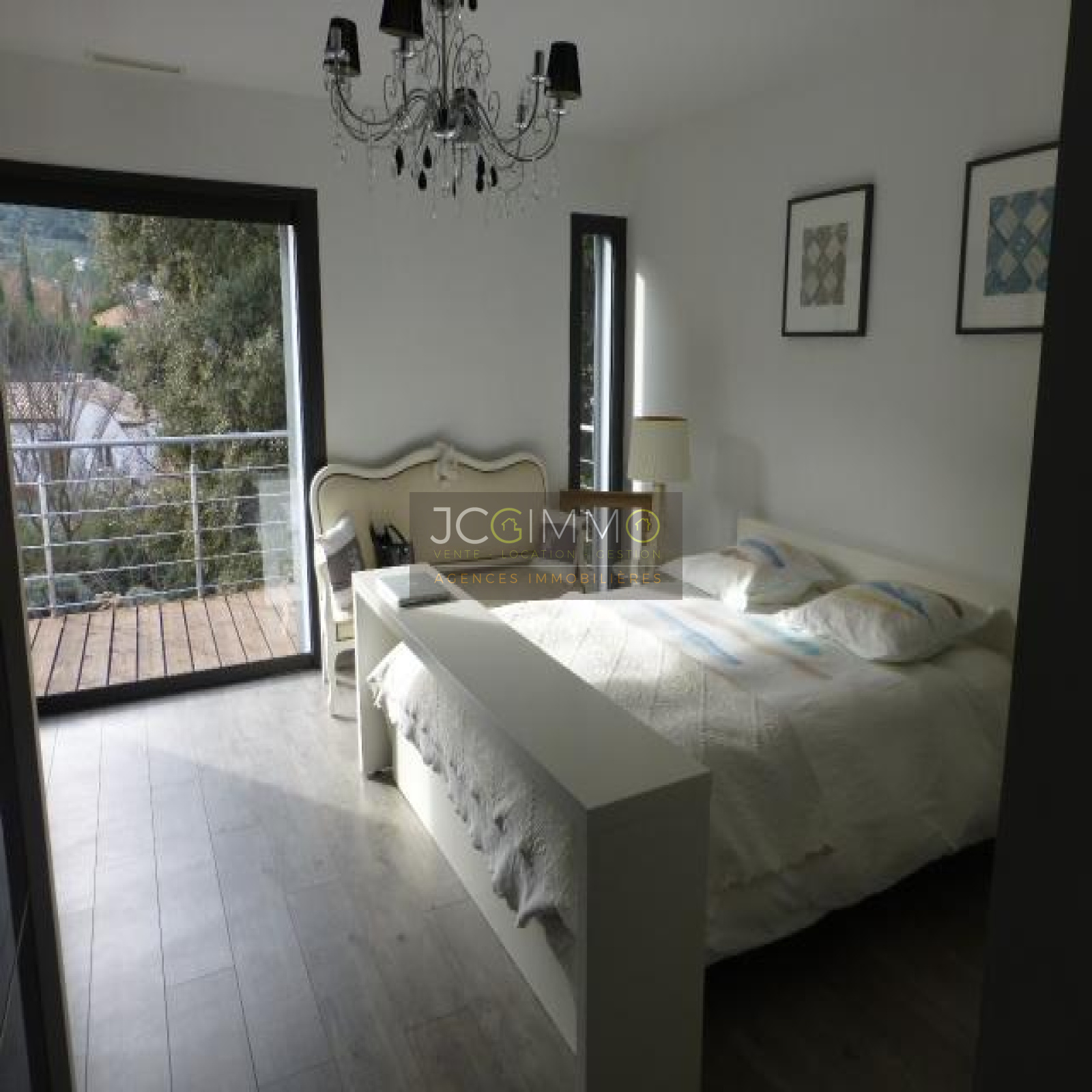SOLLIES TOUCAS. Superbe Villa de PLAIN PIED (2010) de 200m² à l’architecture Contemporaine, exposée Sud. Terrain clos en larges restanques de 2000 m² avec Piscine, Pool house et Grand Garage. La villa comprend 1 Salon/Séjour de 66 m² avec cheminée, Cuisine aménagée semi-ouverte, 1 Suite Parentale avec Salle de bains&douches, 3 chambres dont 2 équipées de salle de douches, 2 WC séparés, buanderie/chaufferie, Double Garage + Parking intérieur. Finitions et Prestations IRREPROCHABLES. Equipement de Qualité, Baies à galandage, Climatisation intégrée…. Parfait état. Coup de Cœur garanti !