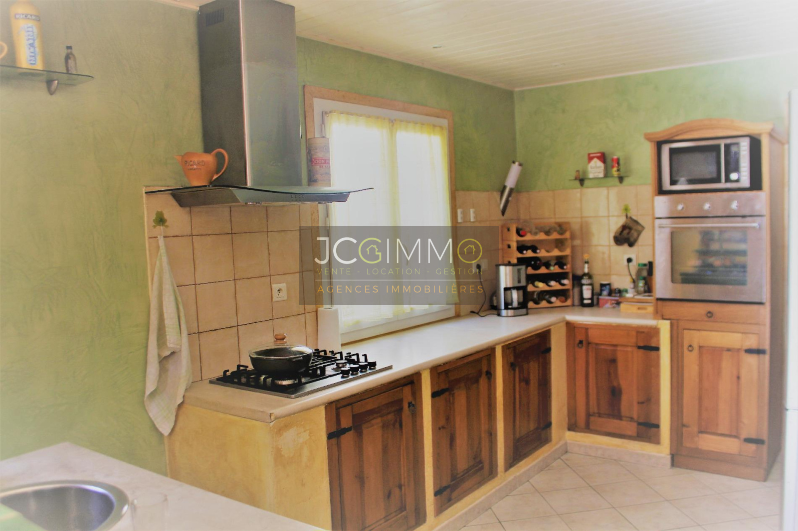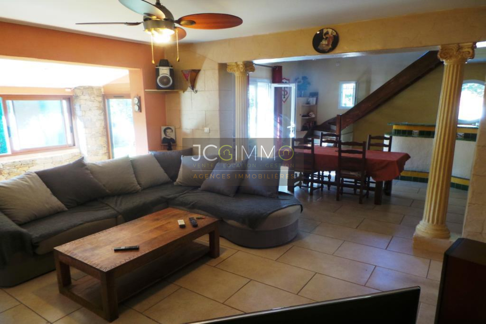 SOLLIES TOUCAS. Au calme Absolu, Expo Sud, Villa T4 construite en 1985 de 110m² env + 1 appartement T2 INDEPENDANT en Duplex de 24m² (avec extérieur) actuellement loué 450€, le tout sur un terrain clos de 280m² piscinable. La Villa comprend au RdC, 1 hall d’entrée, 1 espace de vie de 56m² (Salon/Salle à manger/Cuisine US aménagée), 1 Chambre avec placard, 1 salle de douches à l’italienne et 1 wc séparé. A l’étage, 1 Grande Chambre (14m² + placard) et 1 mezzanine (32m²). Terrasses couverte. Parking intérieur + Garage moto. Double vitrage intégral, Panneaux photovoltaïques (rapport 2400€/an), Baies Aluminium. Volets motorisés. Cheminée avec insert. Pas de travaux à prévoir.