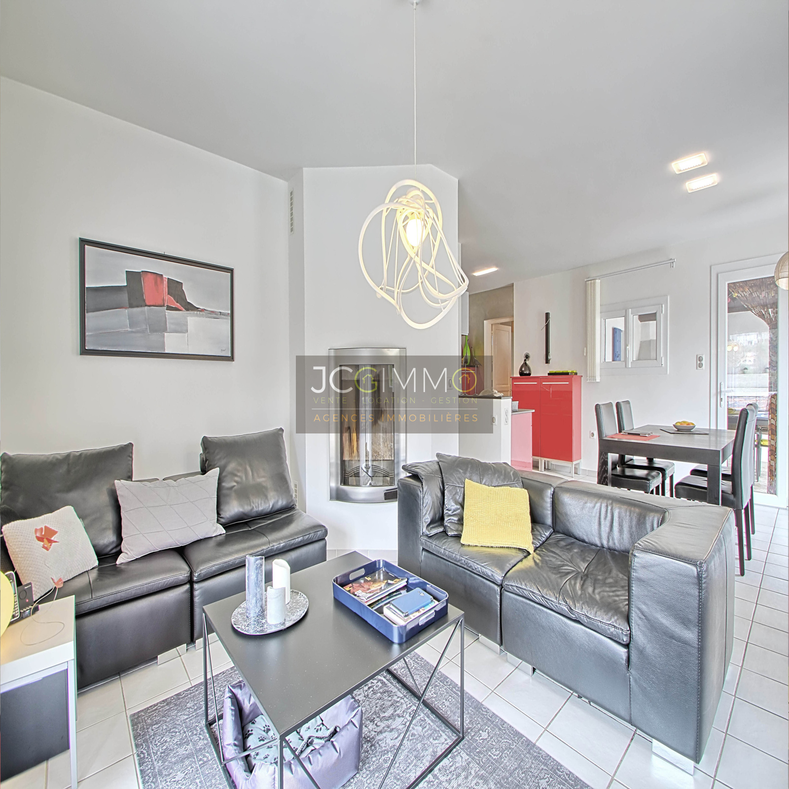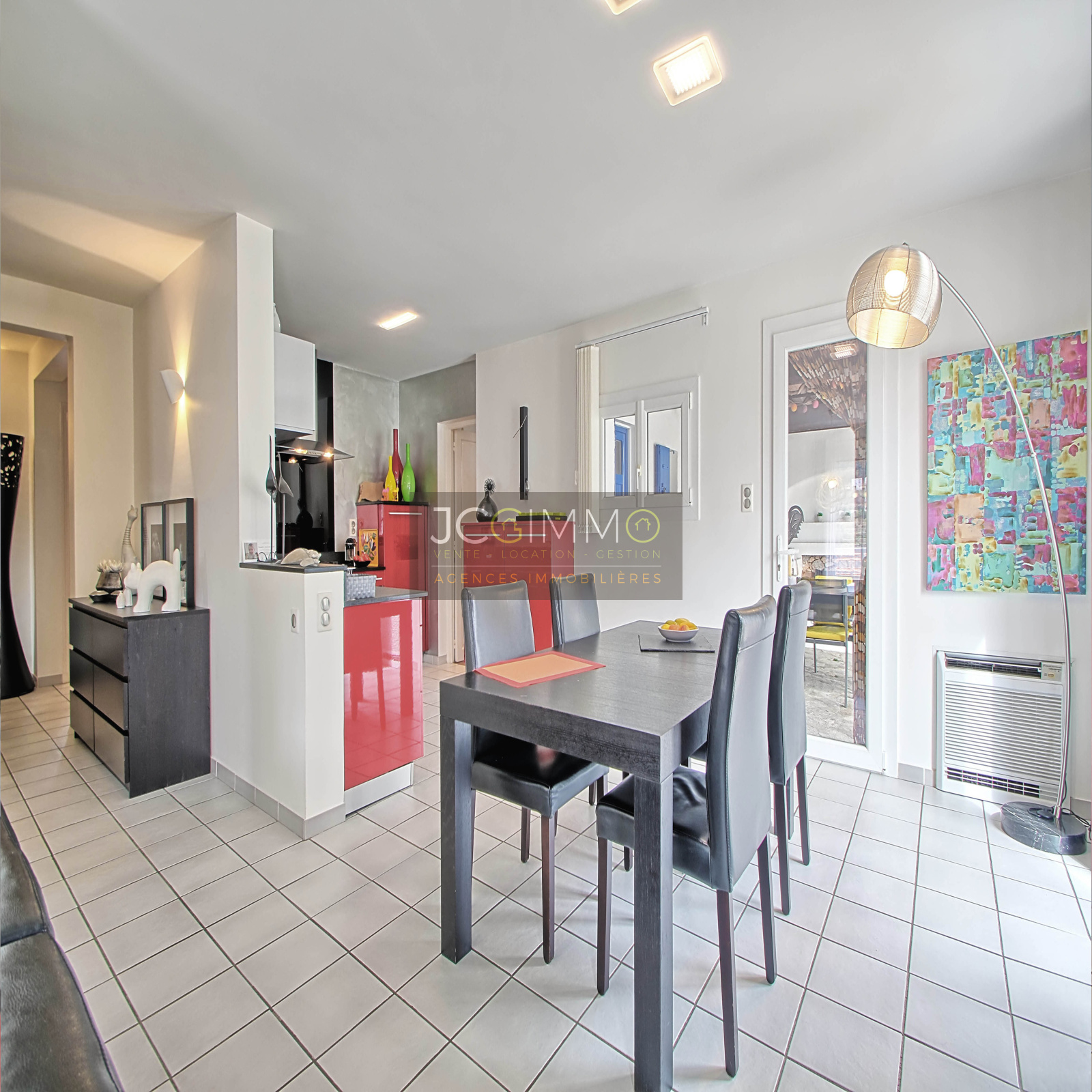La Villa se compose d'une Entrée avec WC indépendant et Placard, d'un Espace de Vie de 47 m² intégrant une cuisine ouverte aménagée et équipée, 2 Chambres (13,5m², 10.5m²), 1 Salle de Bains, un grand Cellier/Buanderie et un grand garage de 21 m².