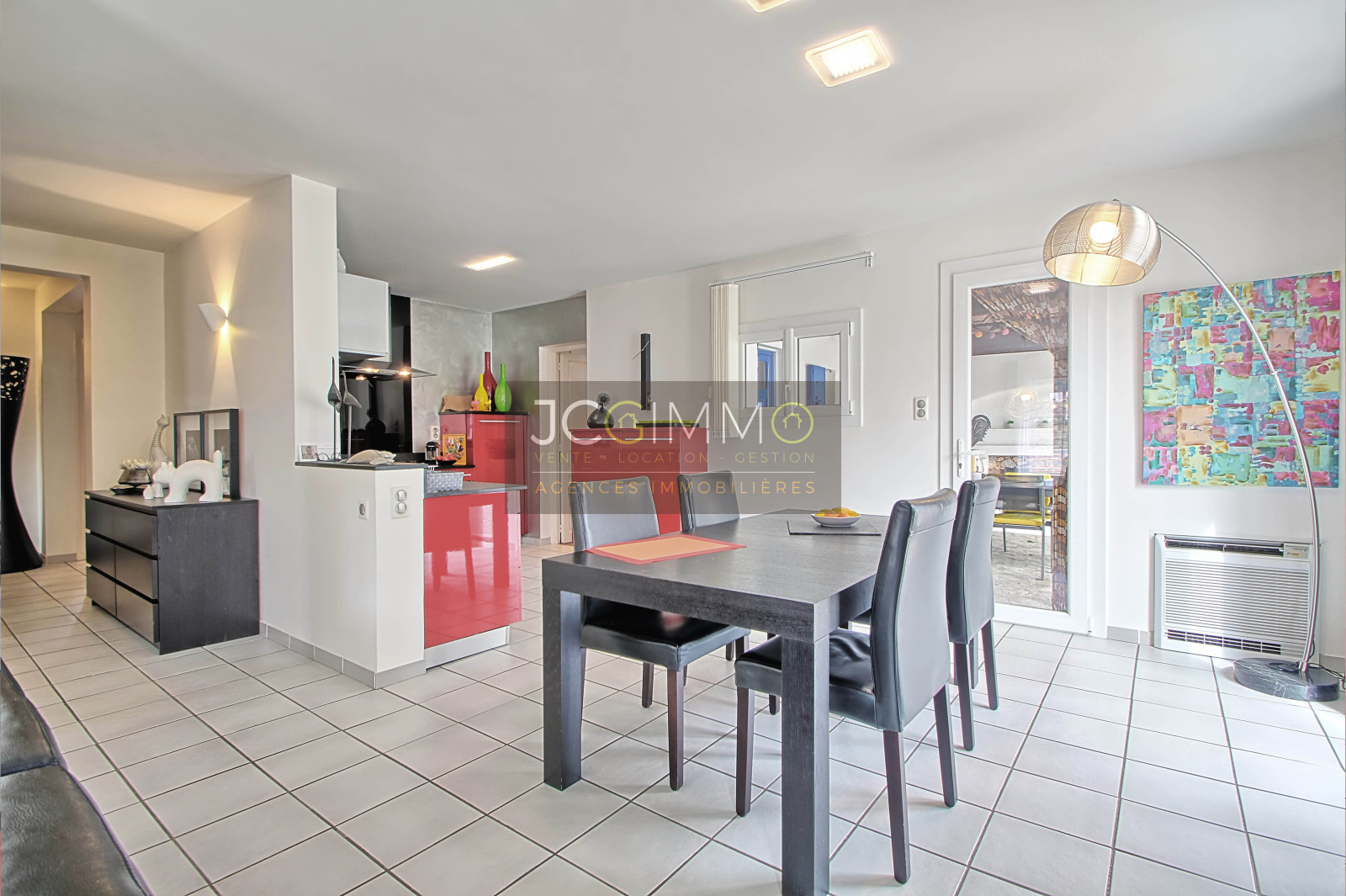 Côté jardin vous trouverez un espace piscine entièrement sécurisé, une jolie terrasse couverte très fonctionnelle avec BBQ intégré et un bel Abri pour 2 voitures.