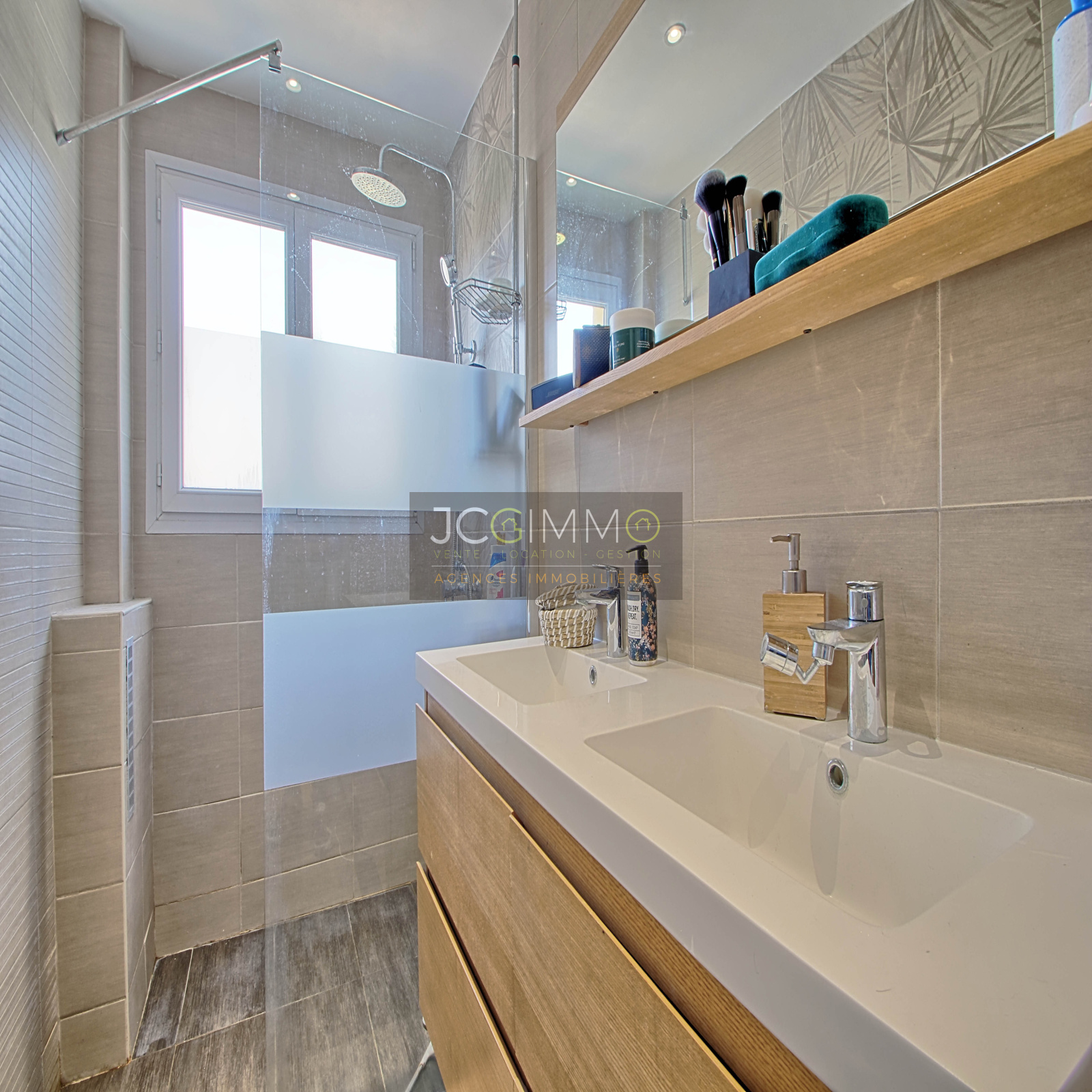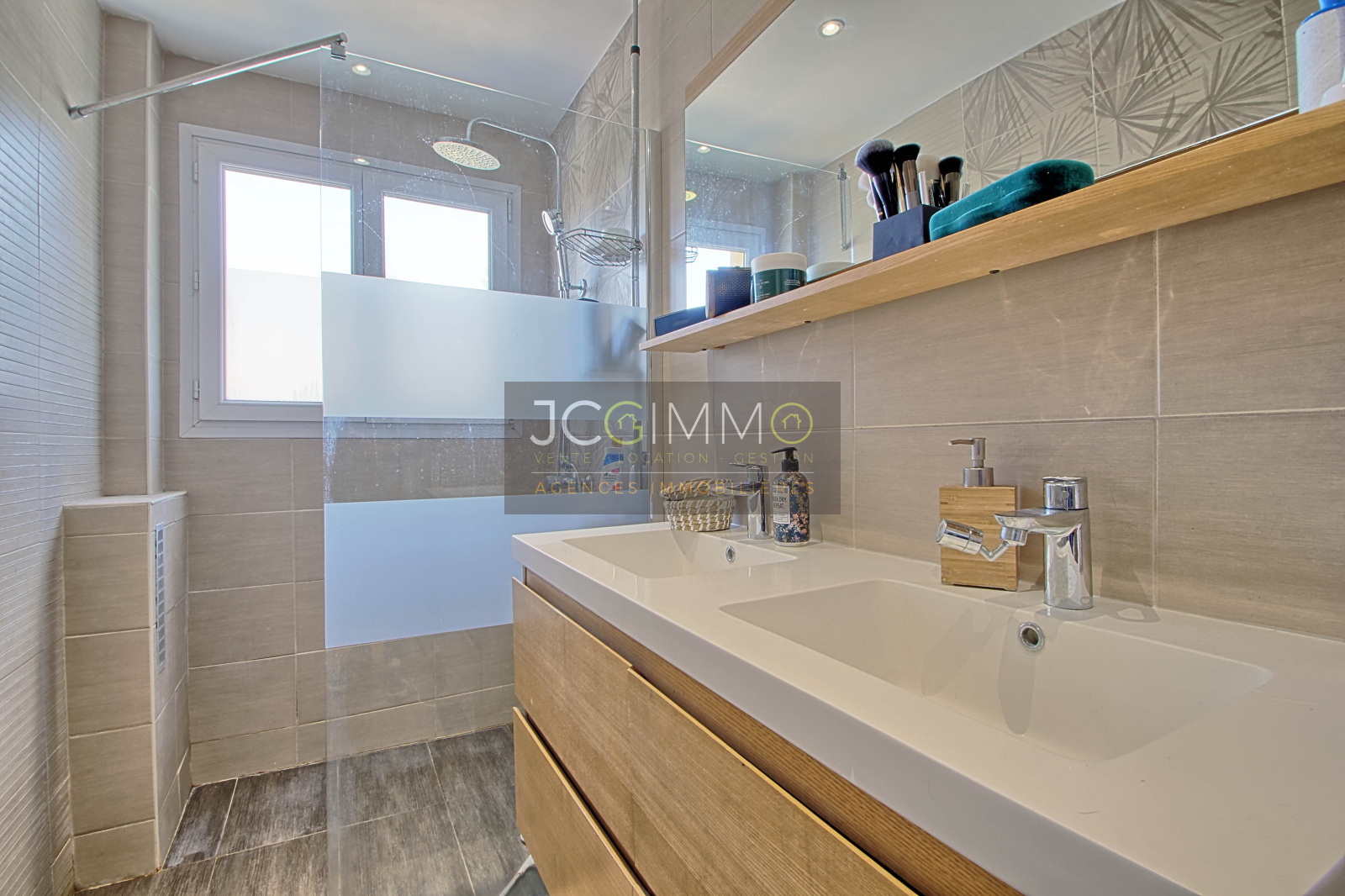 Il se compose d'un agréable salon/séjour climatisé (dans lequel il est possible de recréer une 3ème chambre), une cuisine américaine ouverte vers le salon et équipée, deux chambres de 13 et 9m², une jolie salle d'eau avec douche italienne et double vasque, WC.
