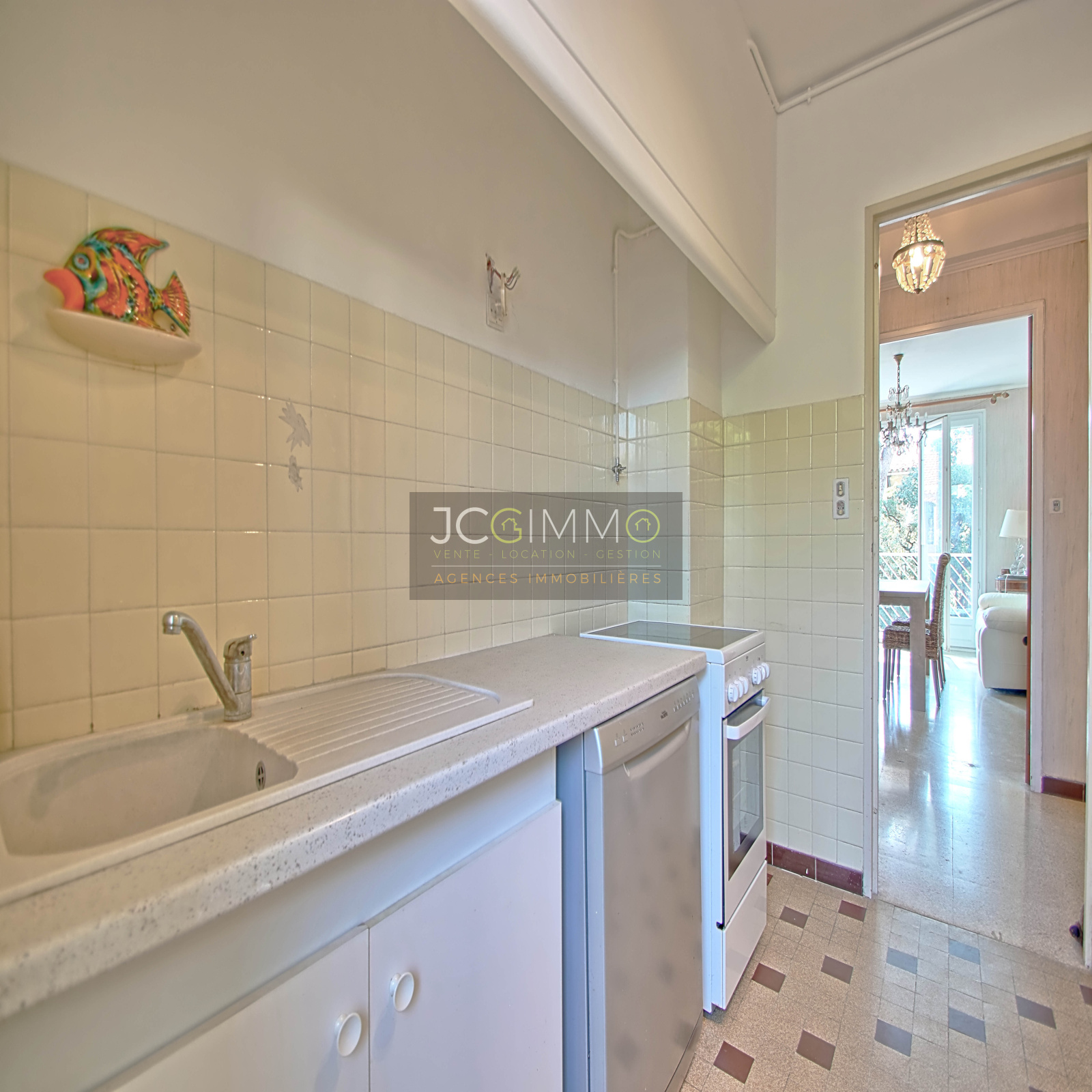 Ce bel appartement dispose coté vie d’un beau séjour en L, ( donnant sur une terrasse au calme), d’une cuisine séparée avec Loggia Attenante ( avec arrivée d’eau pour les machines ). Une entrée et des WC complètent la partie vie.