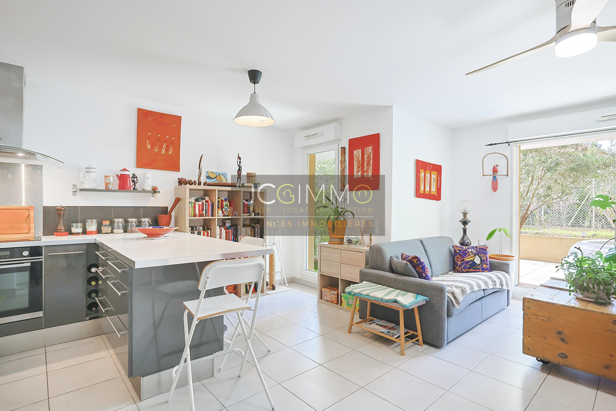 Cet appartement T2 de 56m² situé au rez-de-jardin d'une résidence récente de standing, sécurisée et parfaitement entretenue, offre des espaces très fonctionnels en cœur de ville, dans le secteur Vert Coteau-Loubière-Hauts de Saint Jean.