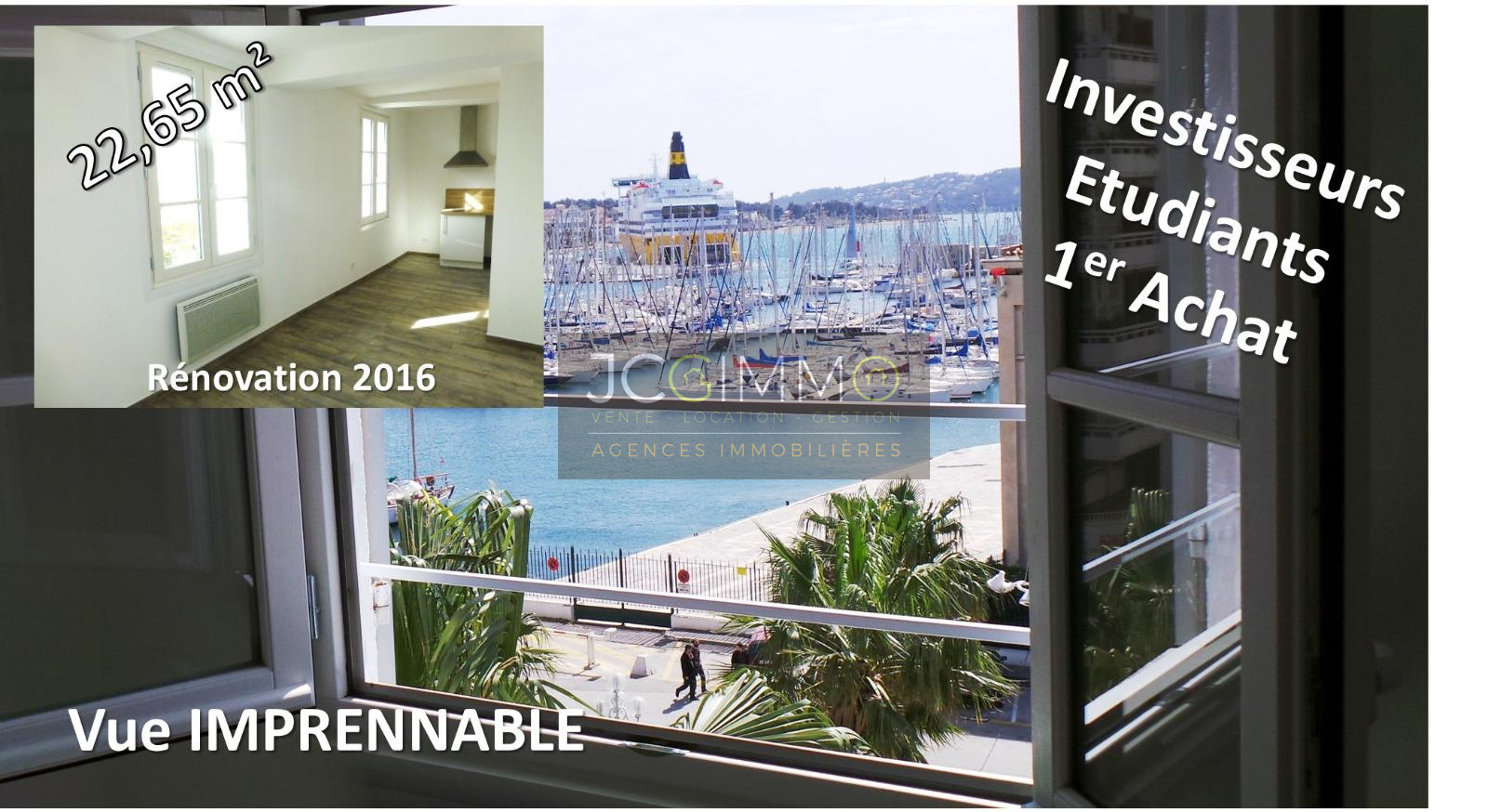 Toulon (port-arsenal): T1 entièrement refait à neuf et équipé de 22,65m². Immeuble de 8 appartements en copropriété INTEGRALEMENT rénové à NEUF et situé proche de toutes les commodités. Vue dégagée mer et Port. Exposé SUD. Prestations et Equipement de Qualité avec Cuisine et Sdb équipées, double vitrage etc..... Idéal investissement locatif (rentabilité à 7%) dans un secteur en plein essor. SANS AUCUN VIS A VIS. A VOIR RAPIDEMENT !!!!!!!!