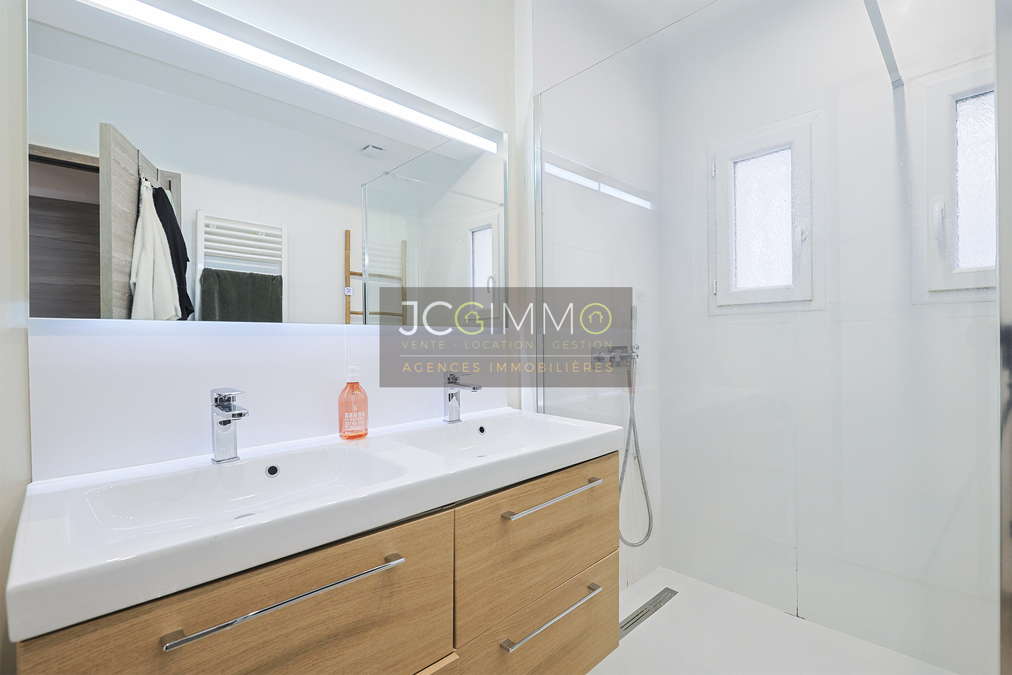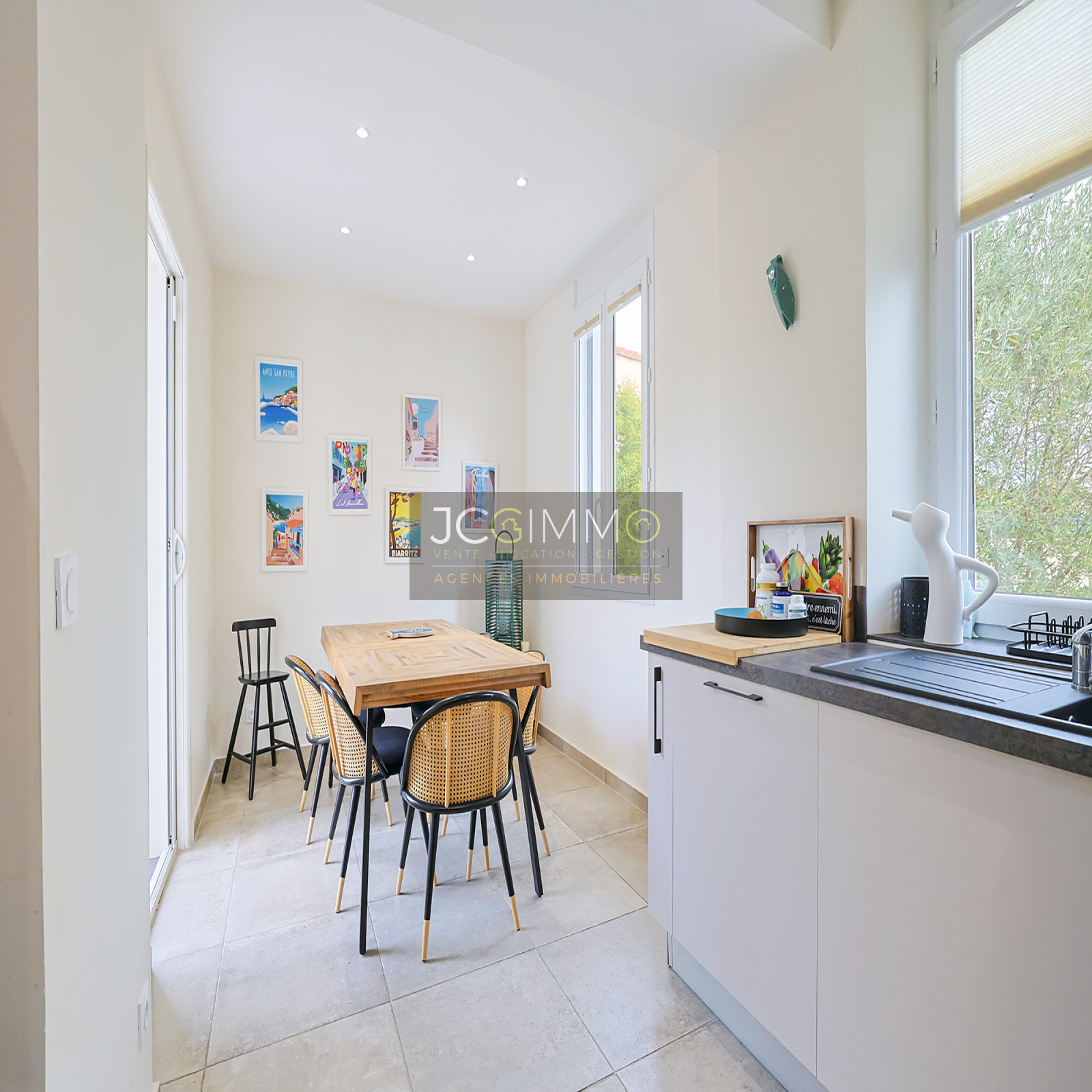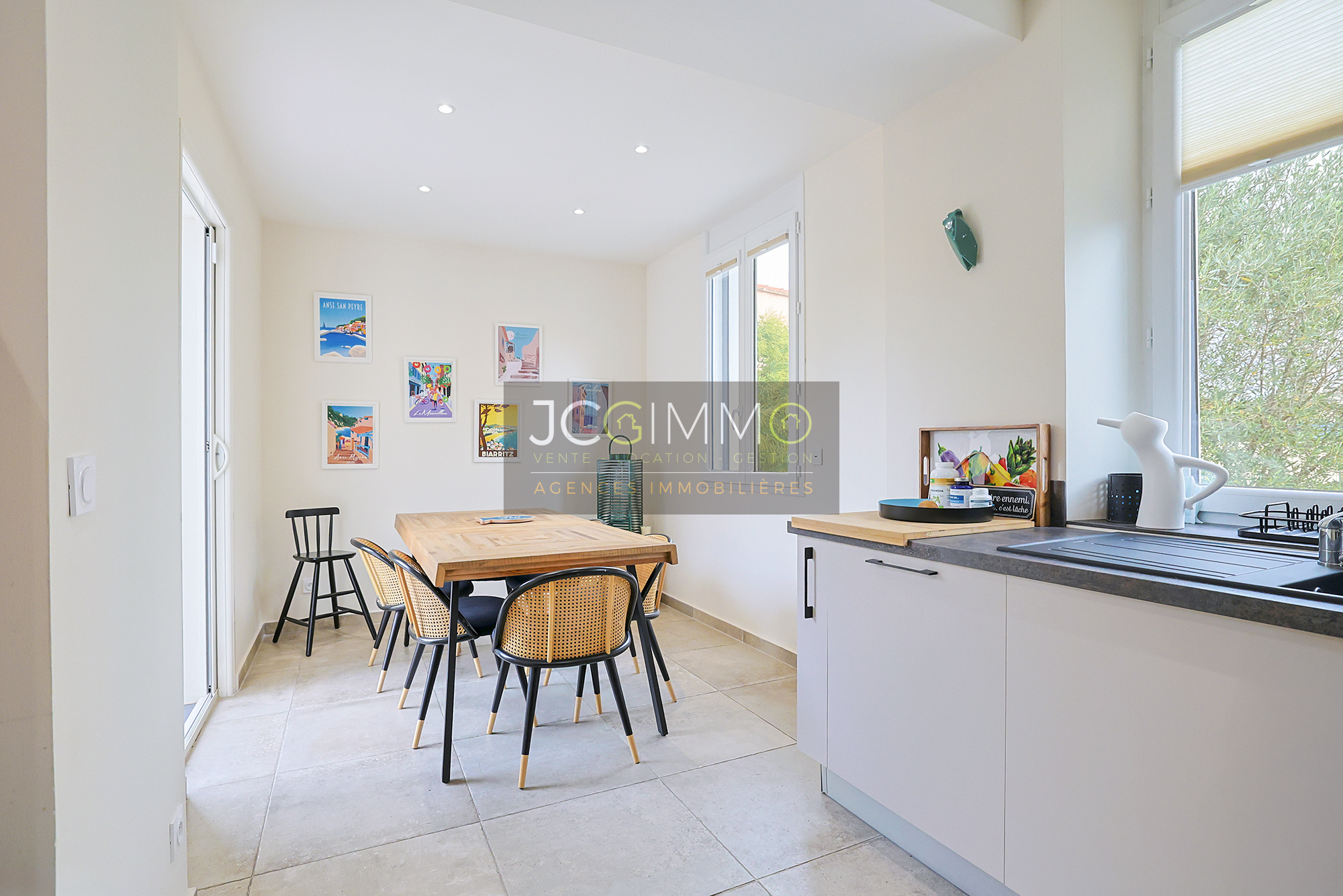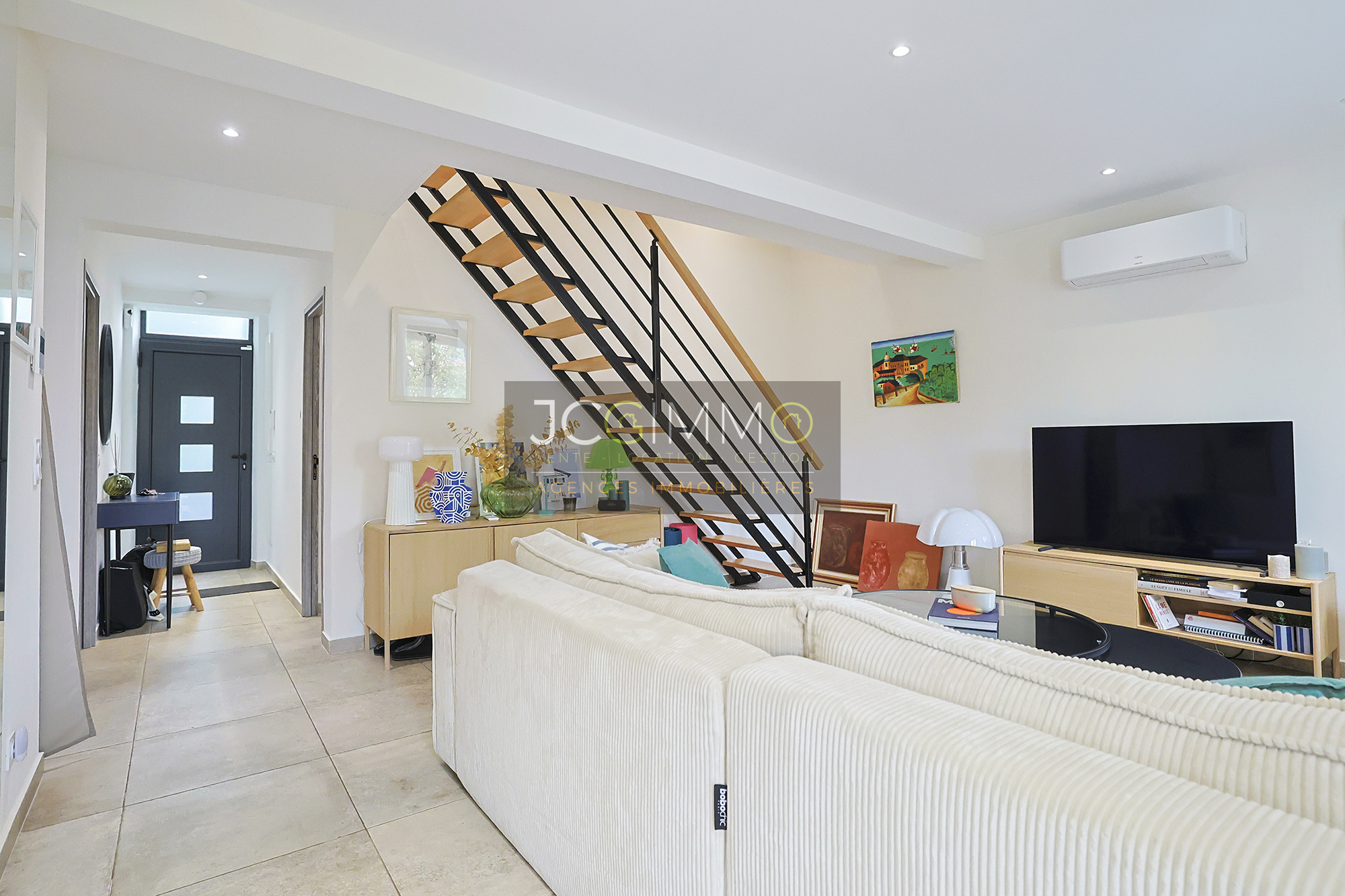 Nous vous présentons cette belle maison individuelle T5 (4 chambres) de 140m², entièrement rénovée avec des prestations haut de gamme dont la climatisation dans toutes les pièces, le tout sur un terrain cloturé de 368m².