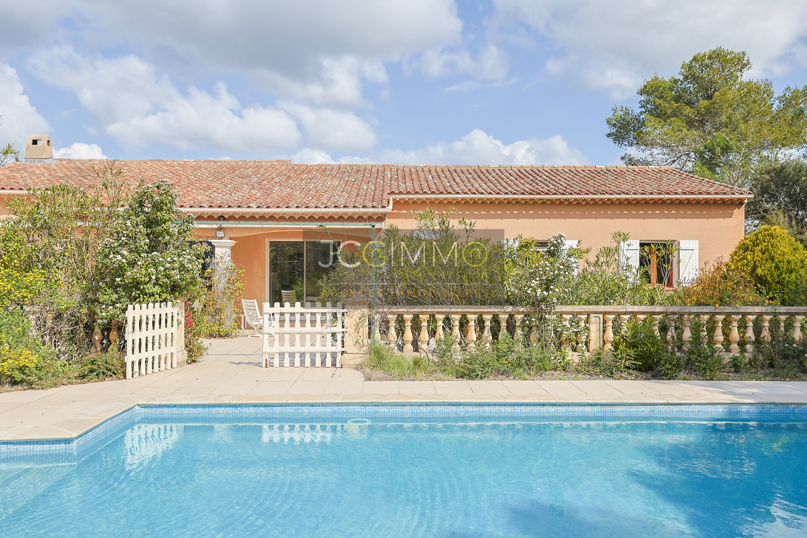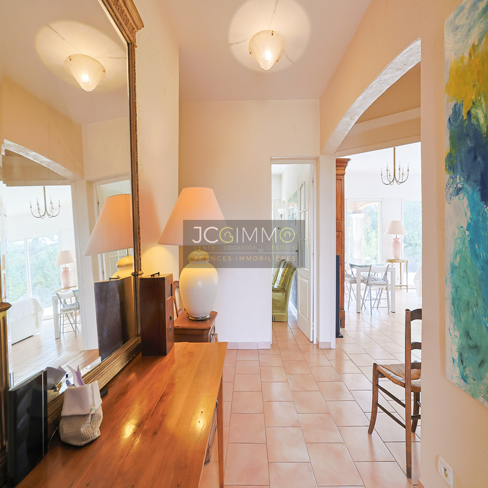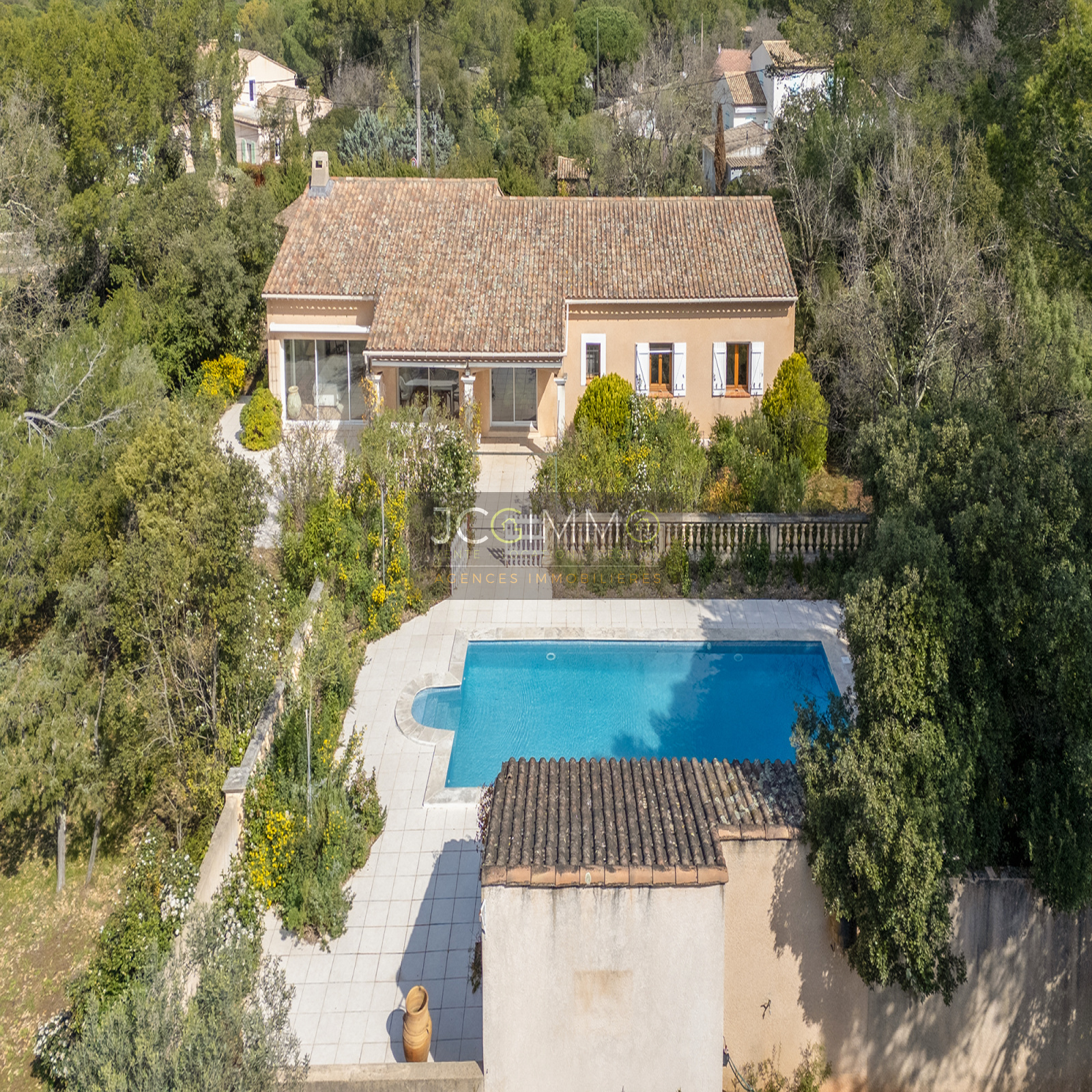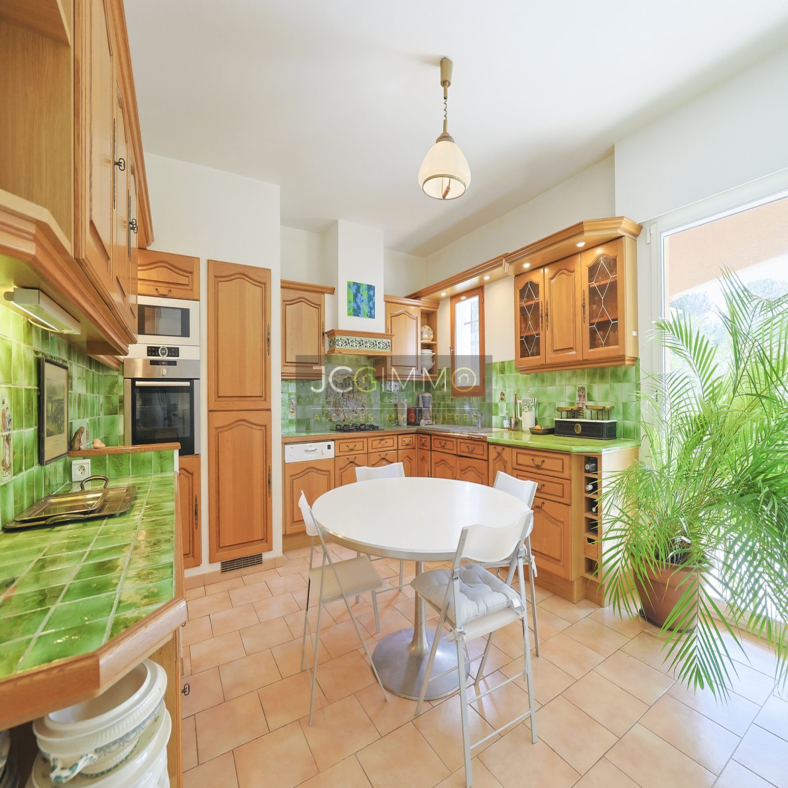 JCG Immobilier vous présente cette maison de maçon de plain pied, Elle est édifiée sur une parcelle arborée de 2642 m2 entièrement clôturée, sans aucun vis à vis. Une fois passé le portail électrique, vous accédez au Nord de la propriété sur une place entièrement goudronnée pouvant accueillir une dizaine de véhicules, dont 2 sous carport.Vous y trouvez également un grand garage d'environ 30 m2 avec 3,3 m de hauteur sous plafond, possédant 2 portes indépendantes ainsi qu'un accès à la maison.Le parfait agencement de cette maison permet d'accéder à toutes les pièces ainsi qu'au garage directement de l'entrée. Le vaste salon-séjour est baigné de lumière grâce à ses 3 baies vitrées et possède une cheminée fonctionnelle avec insert. La cuisine indépendante de 21 m2 dessert la terrasse via une baie vitrée.La partie nuit est dotée de quatre chambres avec placards intégrés. Elle possède également une salle de bain avec douche et baignoire.Une grande terrasse orientée plein sud et protégée du soleil par 3 grands stores électriques est accessible de la cuisine et du salon. Dans son prolongement, vous arrivez sur la partie piscine. Celle-ci est composée d'une belle piscine traditionnelle entièrement sécurisée ainsi qu'un pool house.Cette maison très bien entretenue concentre tous les critères d'une maison familiale. Un rafraichissement lui permettrait d'être remise aux gouts du jour.