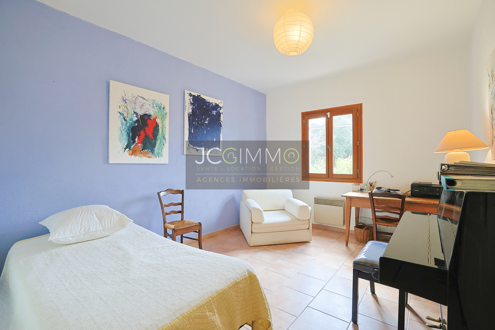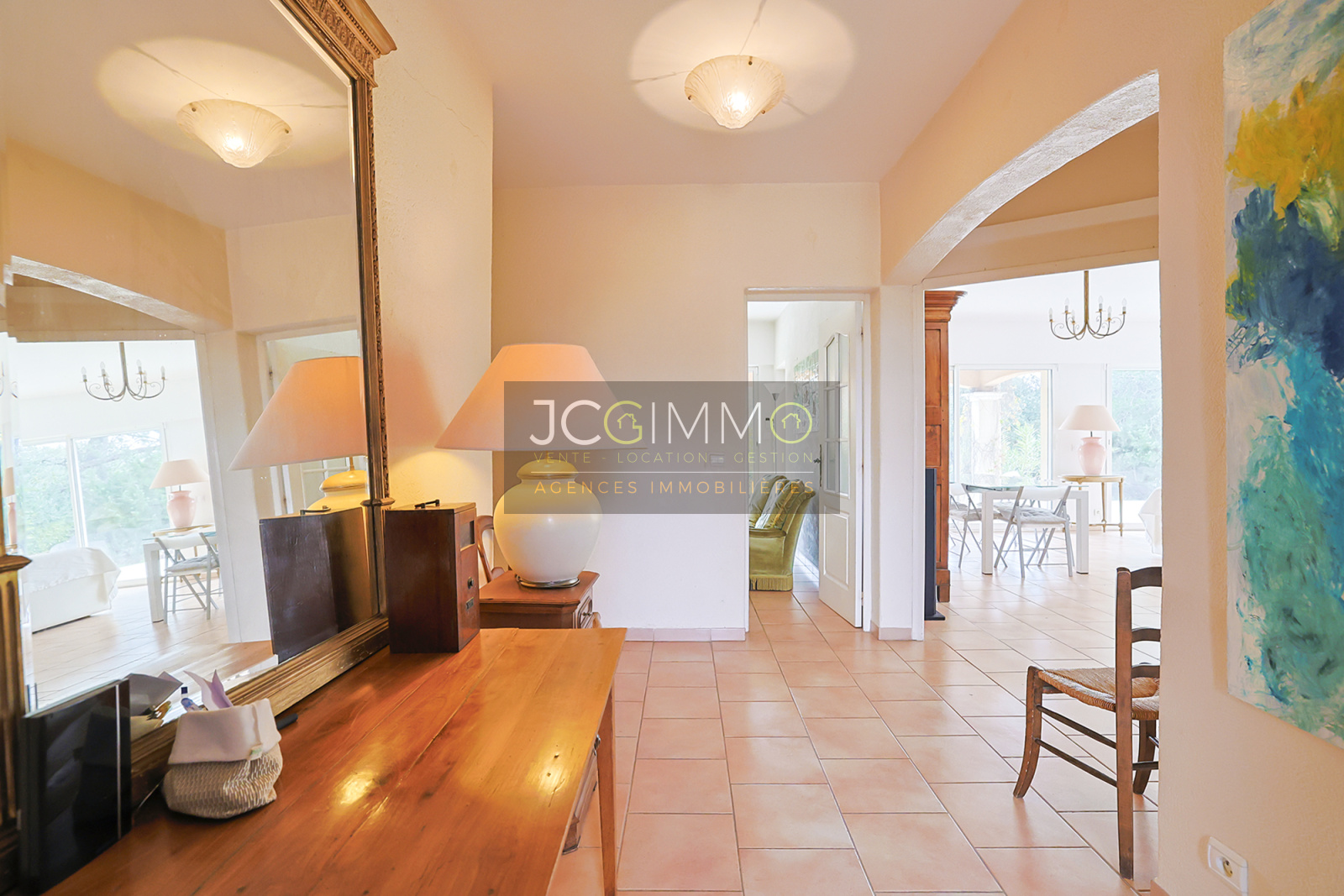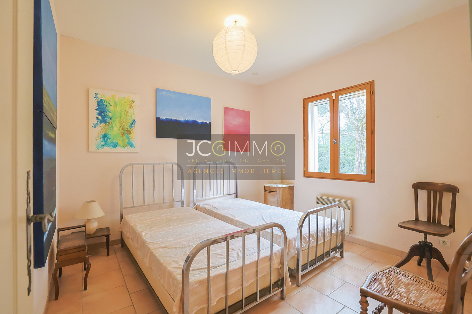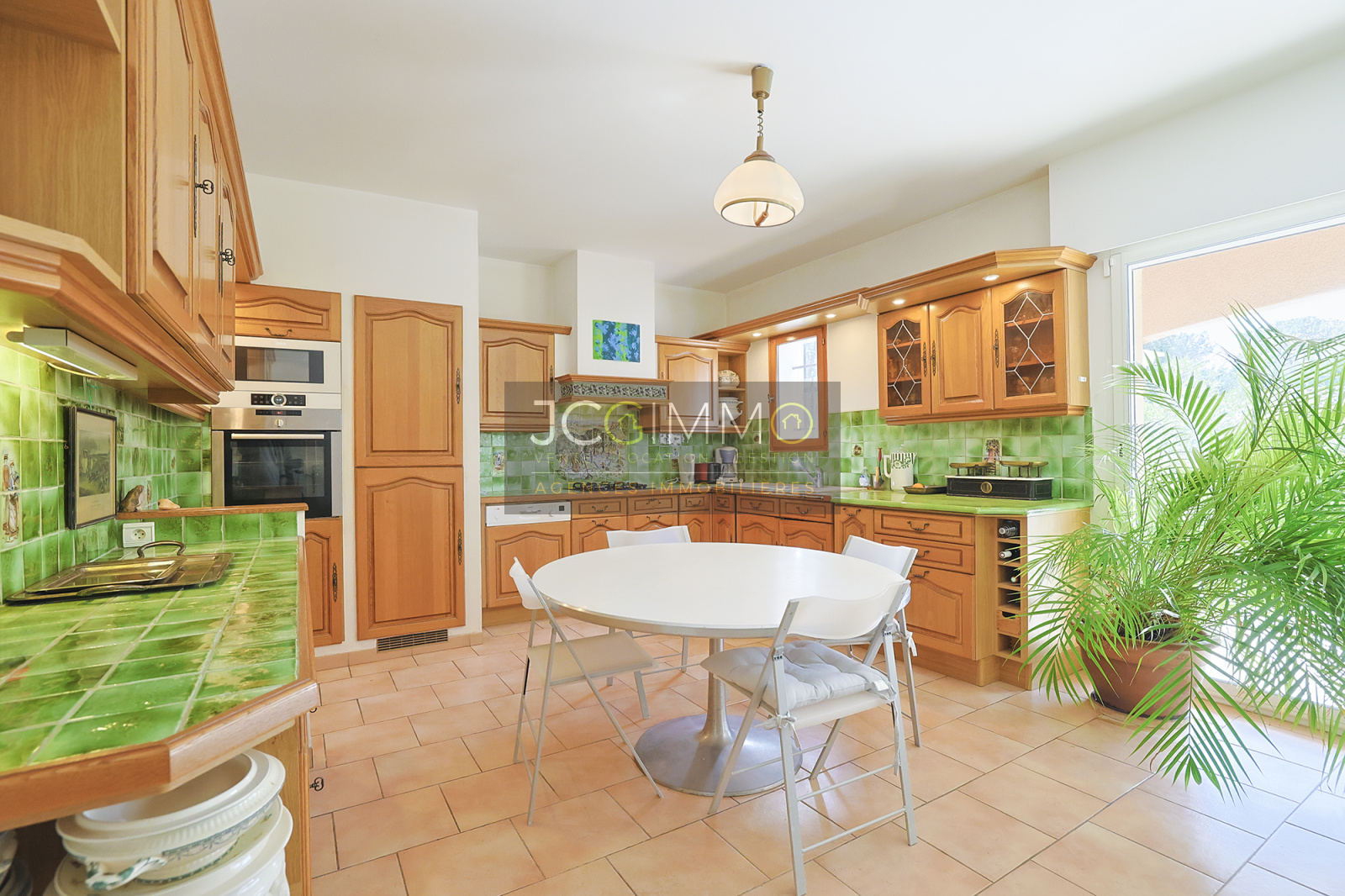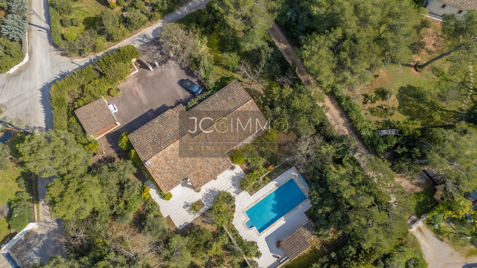 JCG Immobilier vous présente cette maison de maçon de plain pied, Elle est édifiée sur une parcelle arborée de 2642 m2 entièrement clôturée, sans aucun vis à vis. Une fois passé le portail électrique, vous accédez au Nord de la propriété sur une place entièrement goudronnée pouvant accueillir une dizaine de véhicules, dont 2 sous carport.Vous y trouvez également un grand garage d'environ 30 m2 avec 3,3 m de hauteur sous plafond, possédant 2 portes indépendantes ainsi qu'un accès à la maison.Le parfait agencement de cette maison permet d'accéder à toutes les pièces ainsi qu'au garage directement de l'entrée. Le vaste salon-séjour est baigné de lumière grâce à ses 3 baies vitrées et possède une cheminée fonctionnelle avec insert. La cuisine indépendante de 21 m2 dessert la terrasse via une baie vitrée.La partie nuit est dotée de quatre chambres avec placards intégrés. Elle possède également une salle de bain avec douche et baignoire.Une grande terrasse orientée plein sud et protégée du soleil par 3 grands stores électriques est accessible de la cuisine et du salon. Dans son prolongement, vous arrivez sur la partie piscine. Celle-ci est composée d'une belle piscine traditionnelle entièrement sécurisée ainsi qu'un pool house.Cette maison très bien entretenue concentre tous les critères d'une maison familiale. Un rafraichissement lui permettrait d'être remise aux gouts du jour.