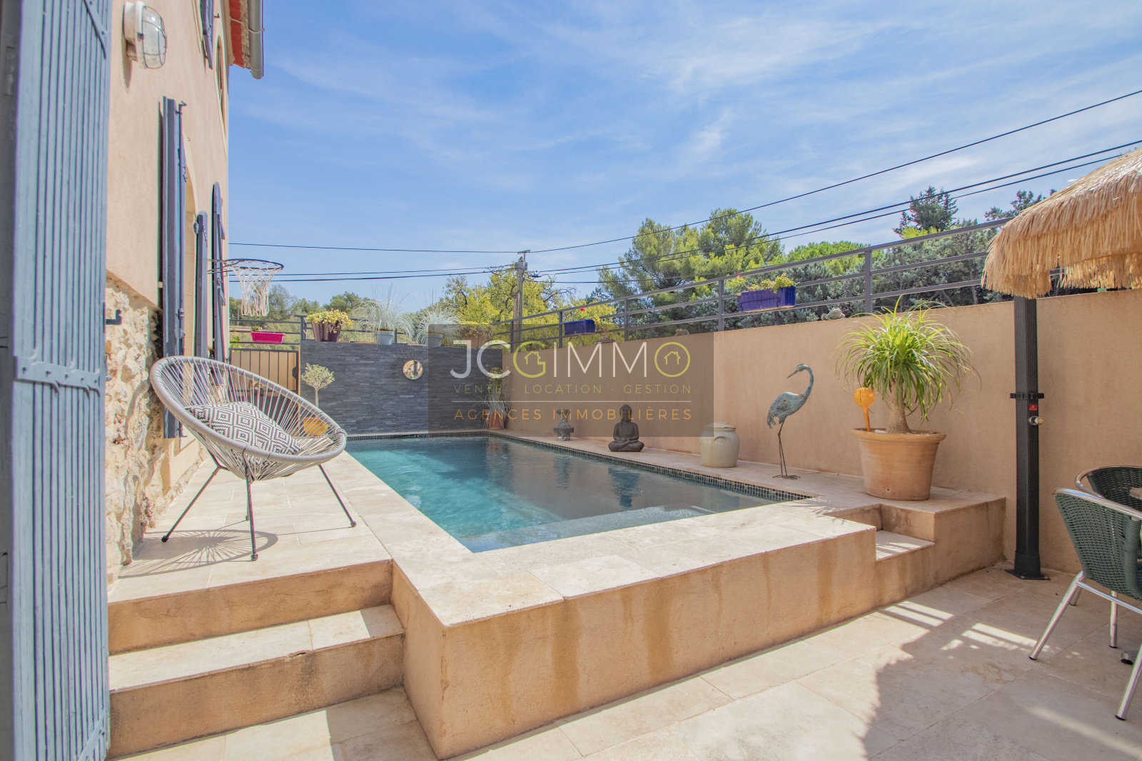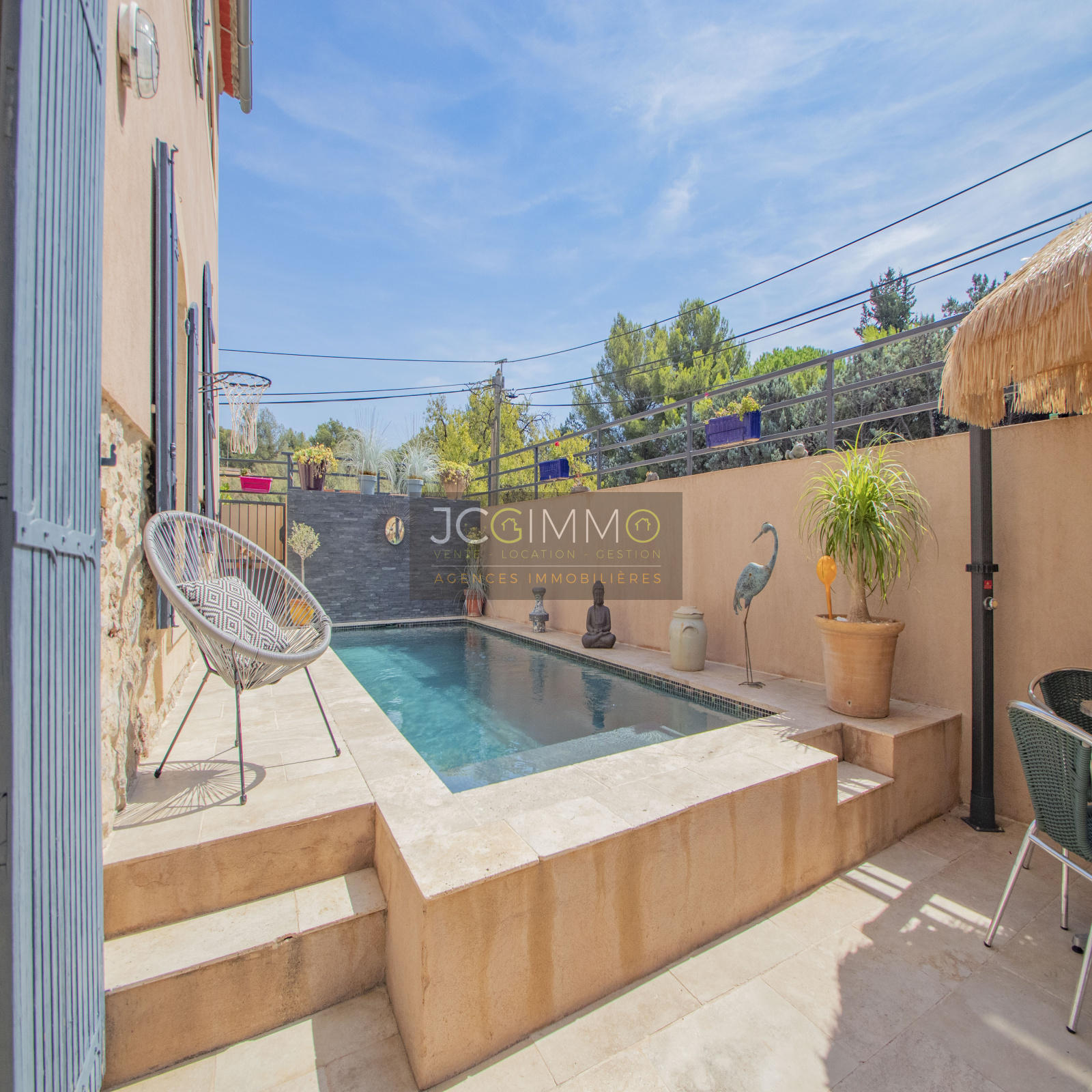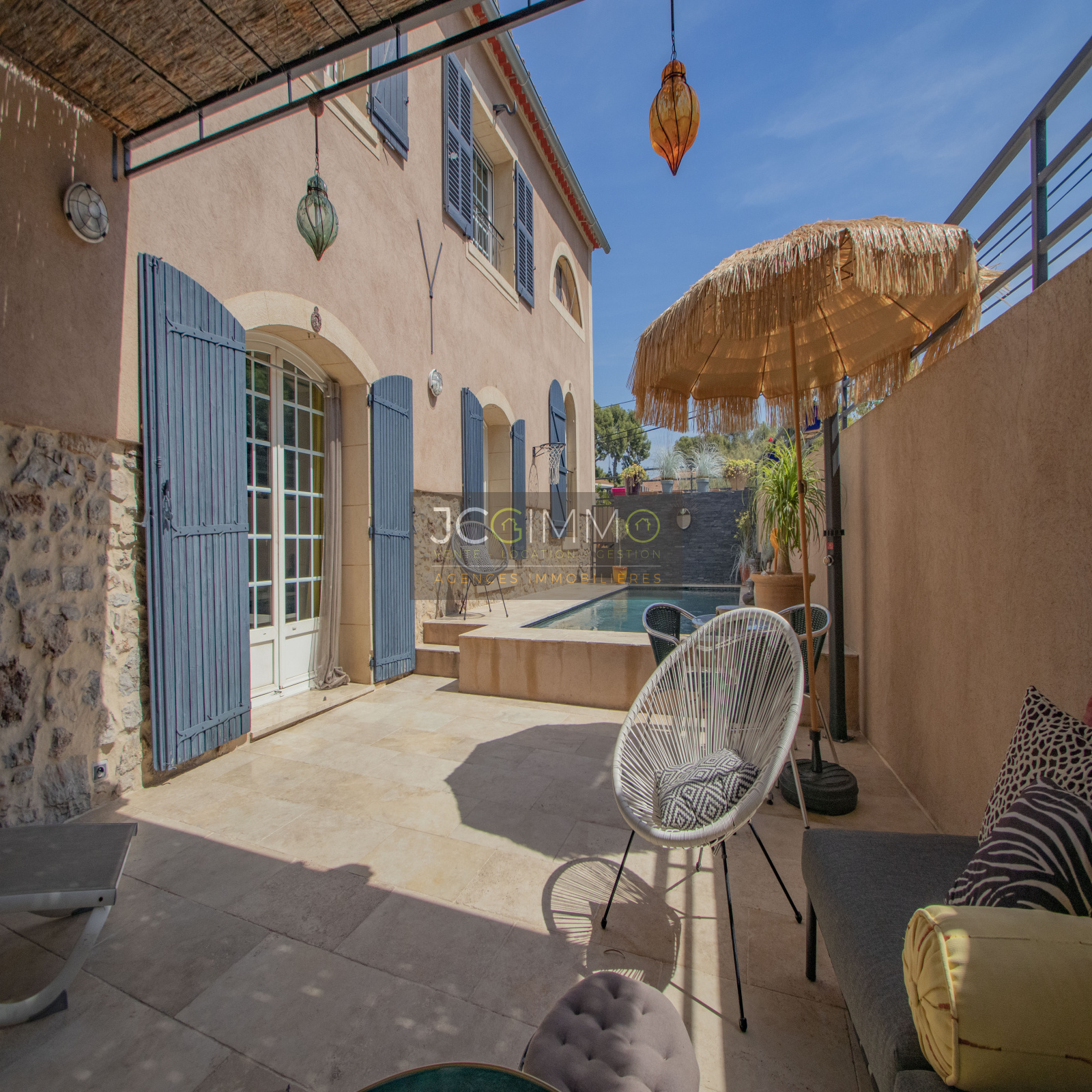 OLLIOULES : JCG IMMO vous propose cette bastide rénovée de 1800 pleine de charme possédant 4 chambres, une piscine, une cuisine d'été, le tout sur une parcelle de 410m².