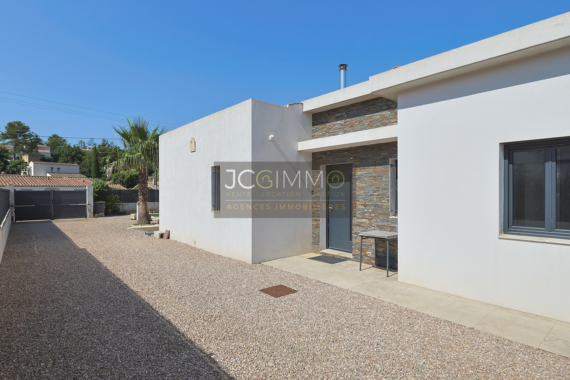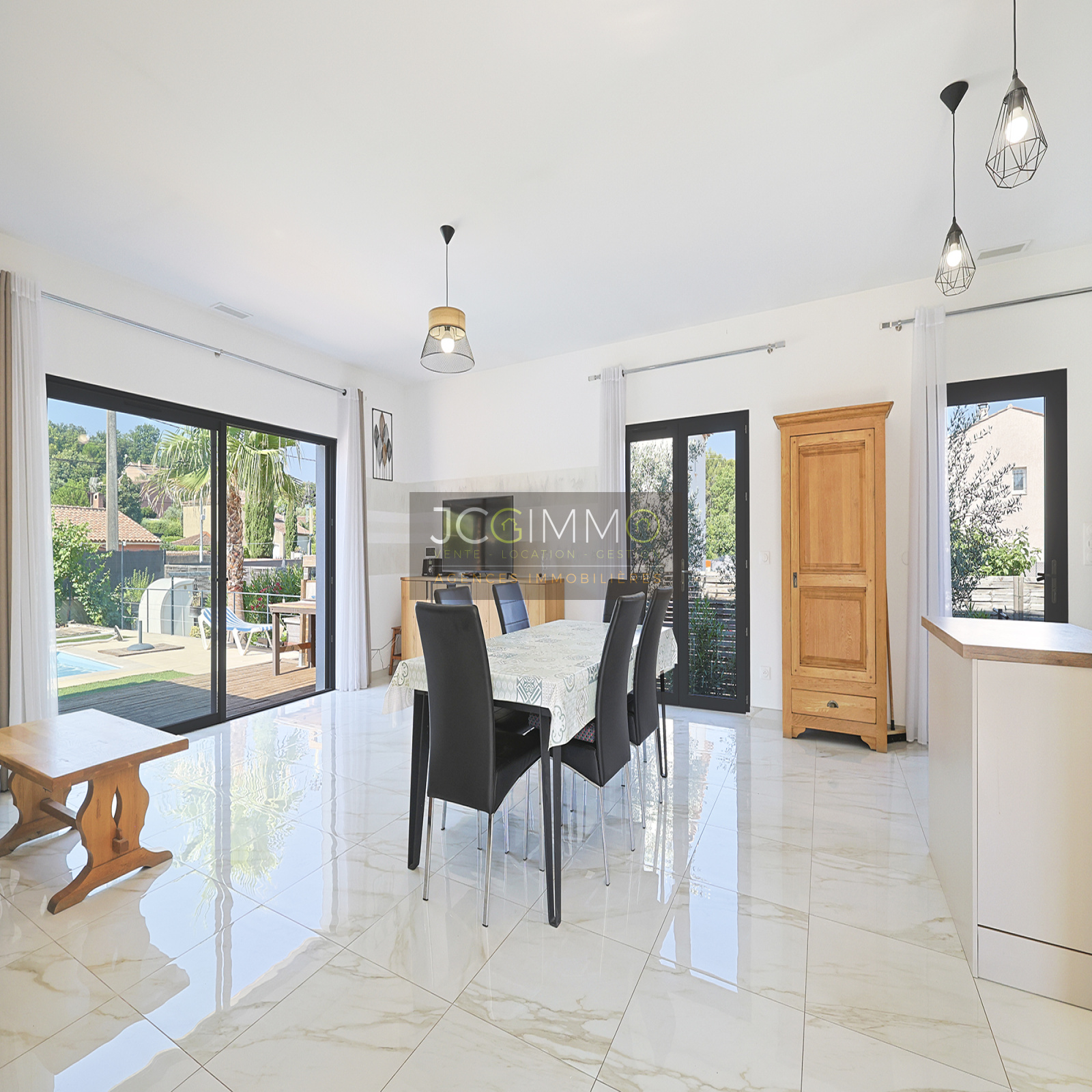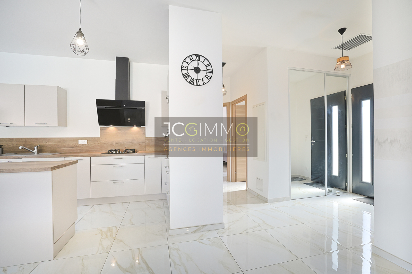 Retrouvez cette villa indépendante construite en 2020, bénéficiant de prestations haut de gamme, habitable entièrement de plain-pied pour une surface de 110 m² T4 avec terrain de 719 m², sous-sol aménageable de 110m², piscine, pergola bioclimatique et 2 carports.