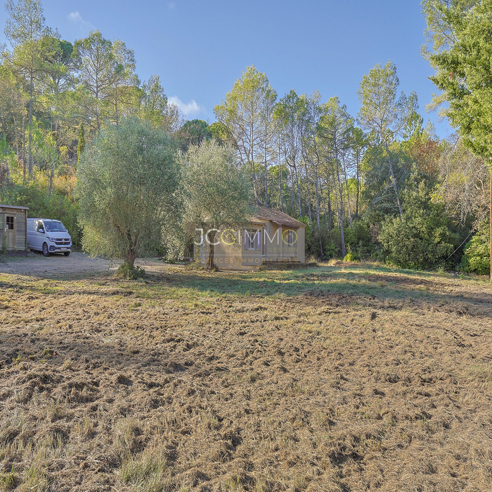 EXCLUSIVITÉ JCG IMMO : située route de Barjols, dans la campagne de l'agréable commune du Val, retrouvez cette villa individuelle T4 de 87m² habitables entièrement de plain-pied, édifiée en 1983 sur un terrain plat, clos et arboré de 4 002m².